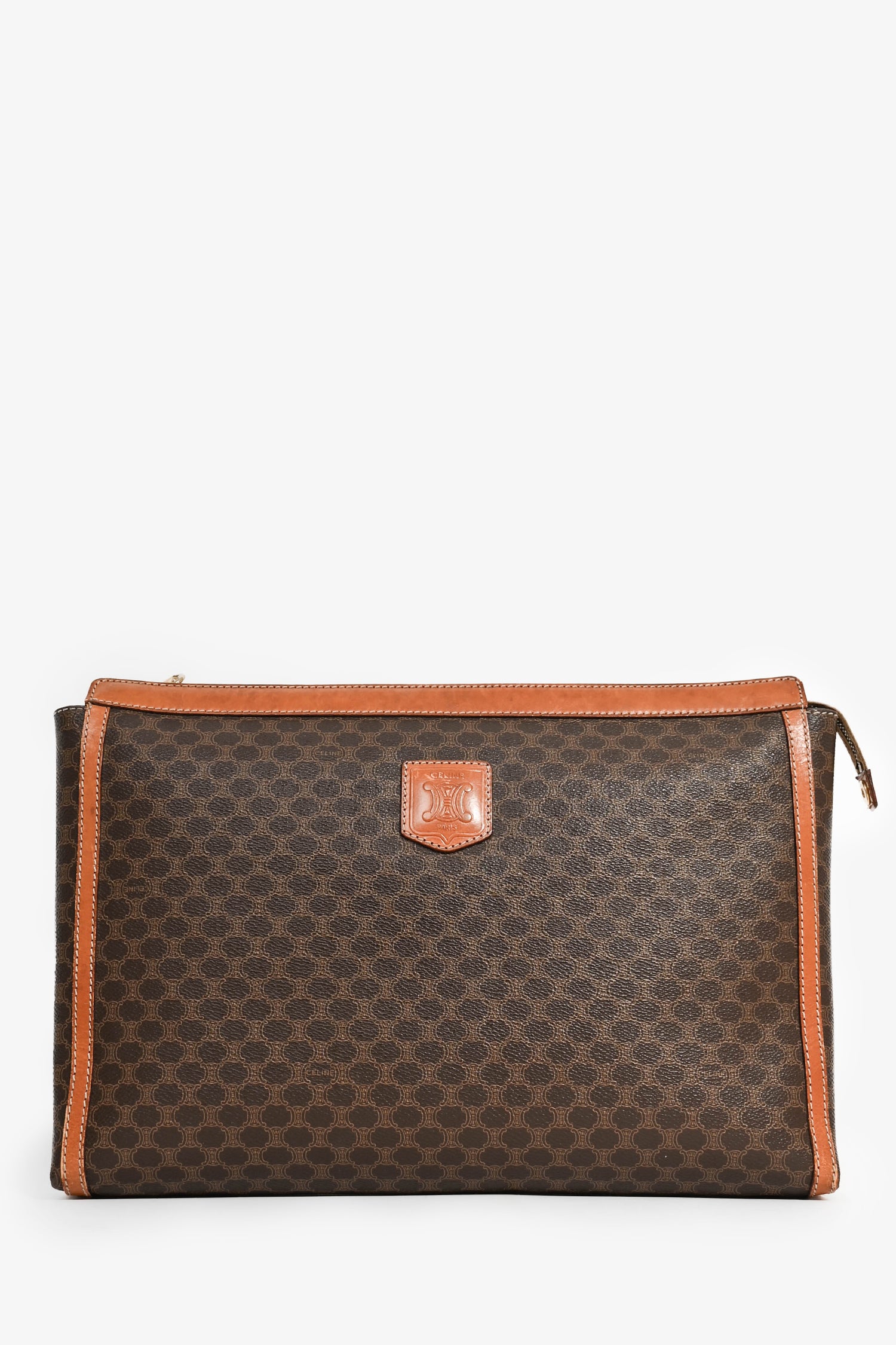 Refresh availabilityCeline Vintage Brown Triomphe Logo Pouch. Leather trimming. Gold-tone hardware. Zipped interior. Monogram motif. Tonal stitching.