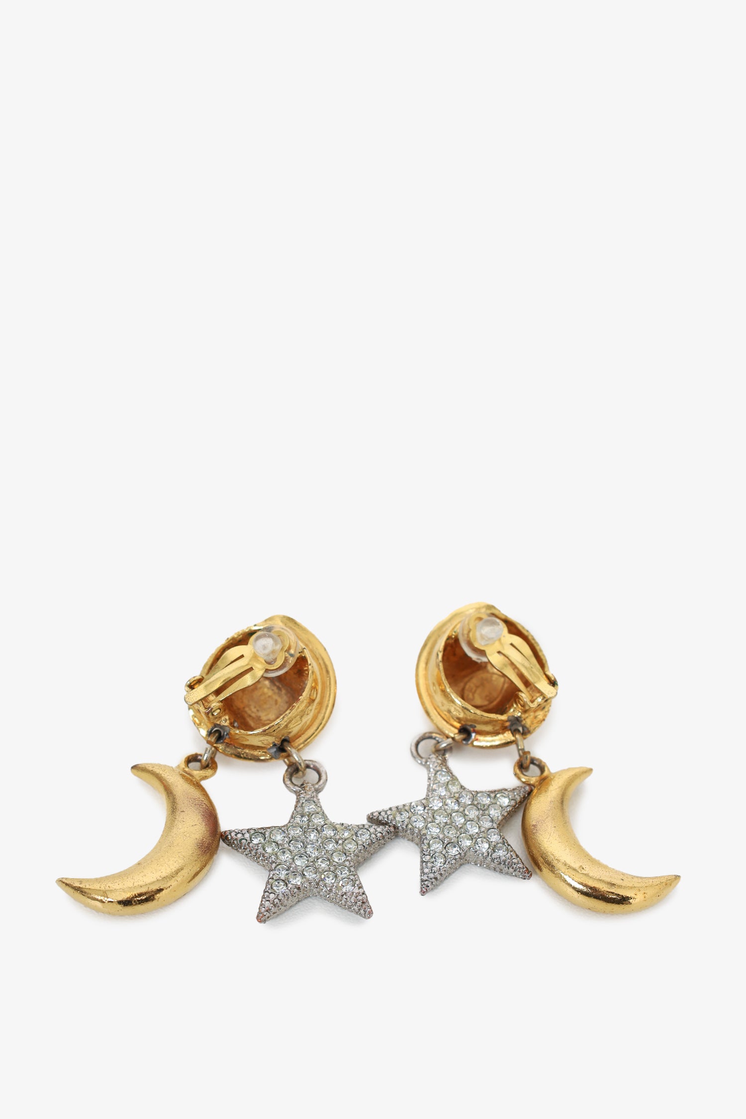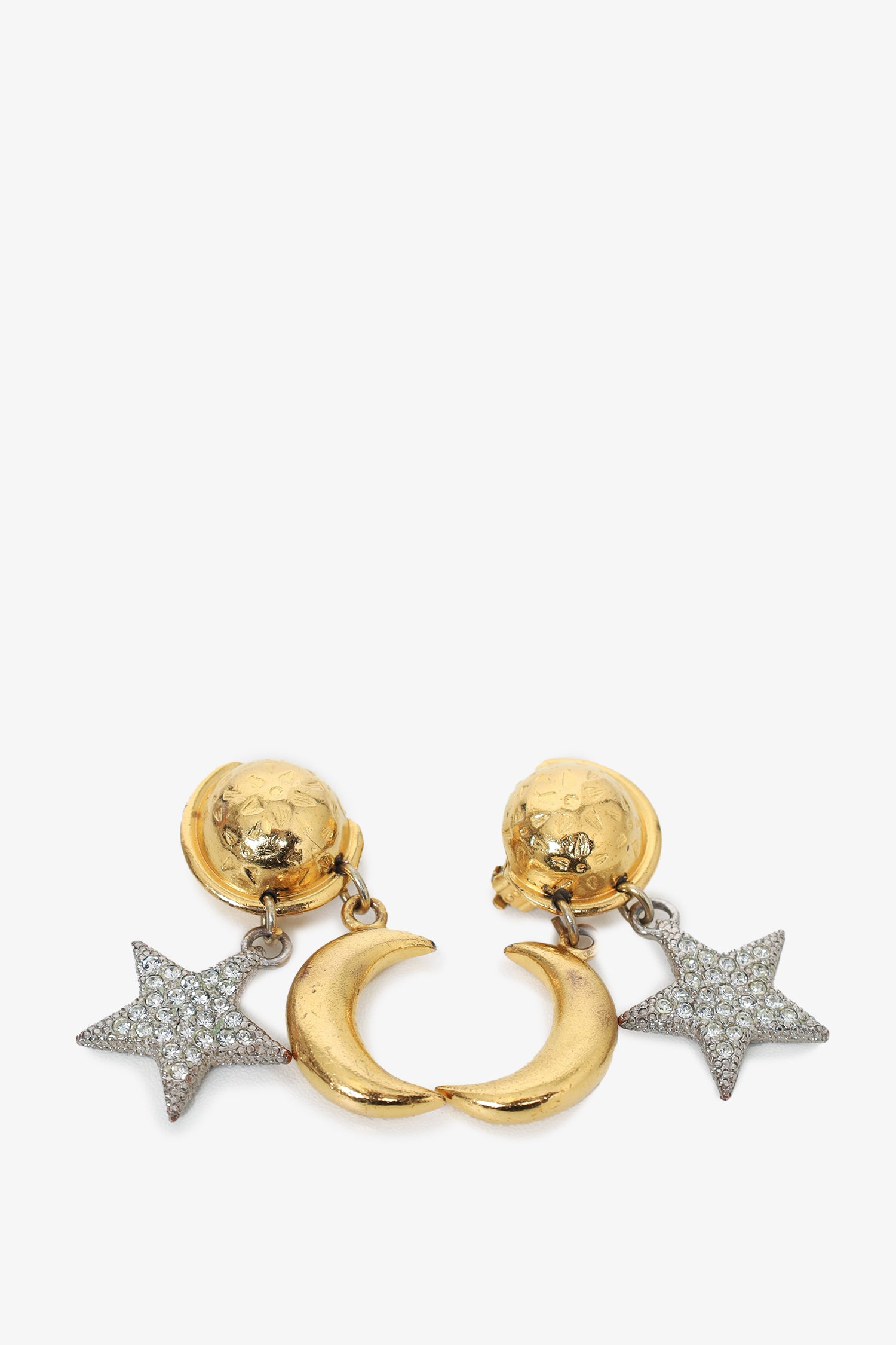 Refresh availabilityCeline Vintage Gold Tone Moon & Crystal Star Dangle Earrings