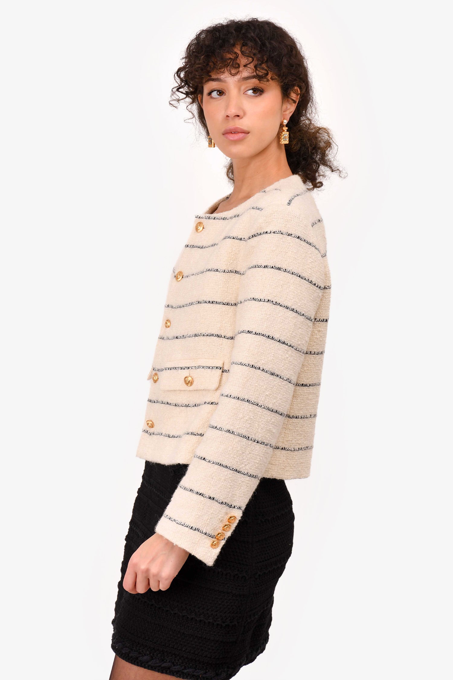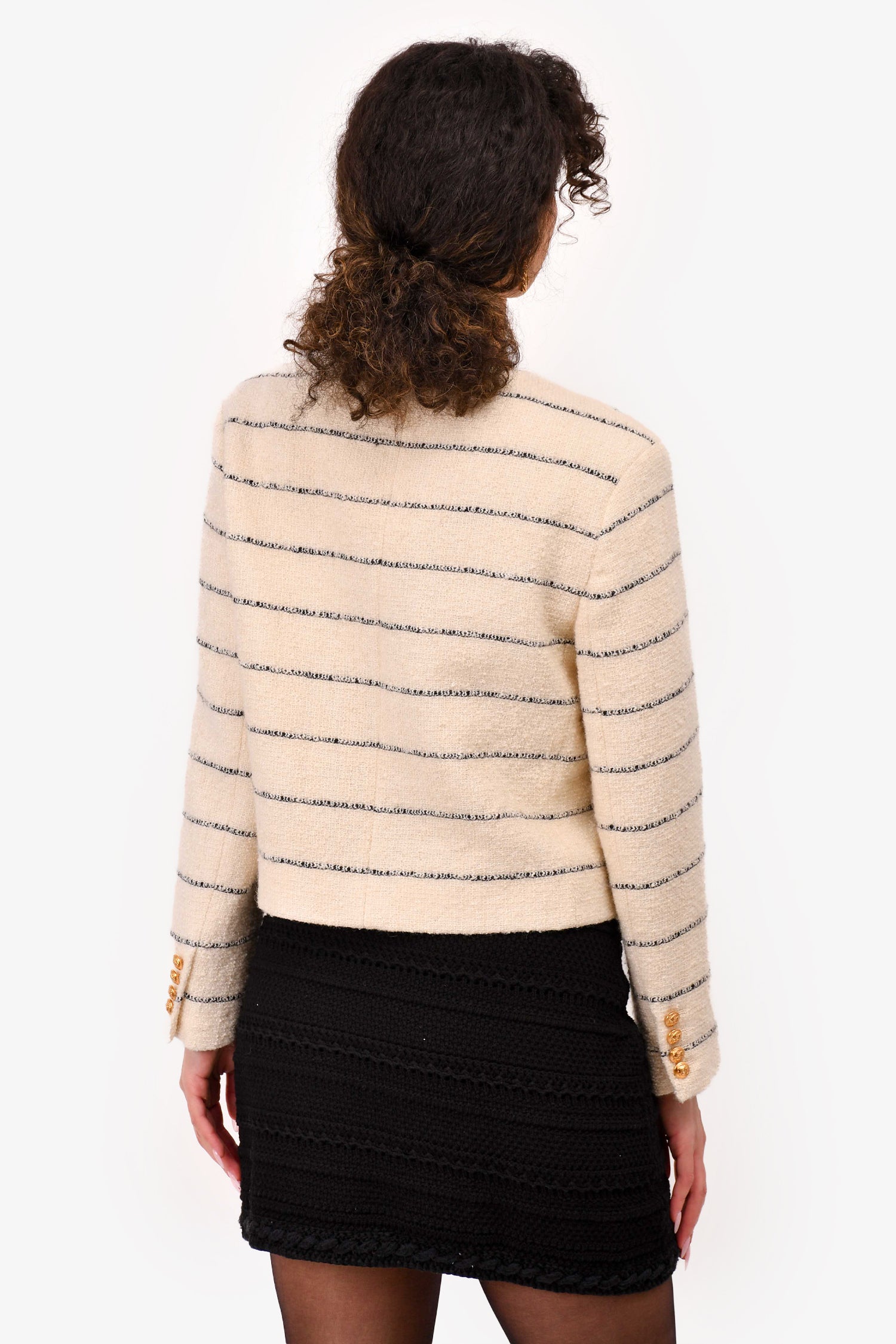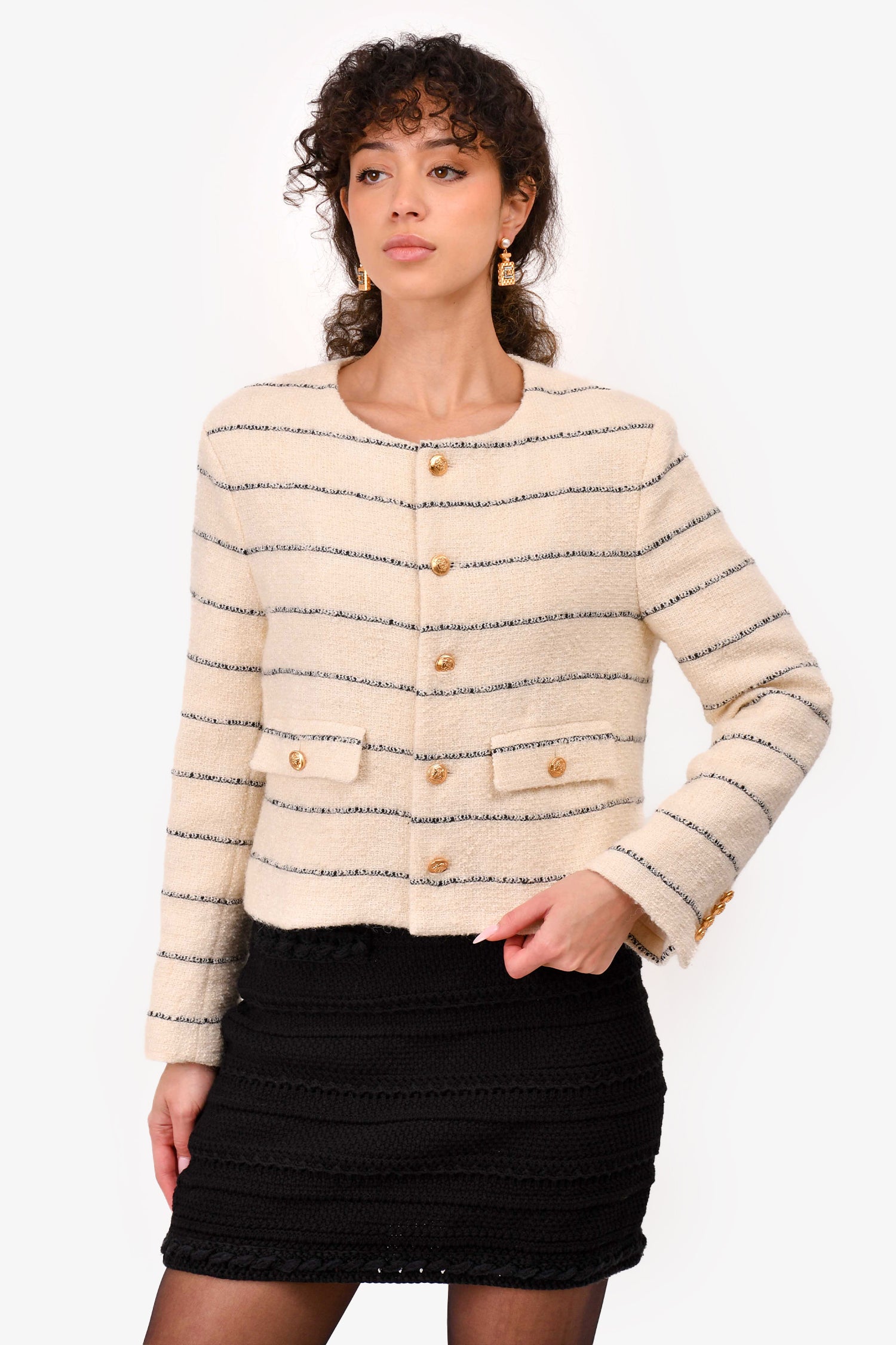 Celine White/Black Striped Wool/Silk Gold Buttoned Jacket Size 36