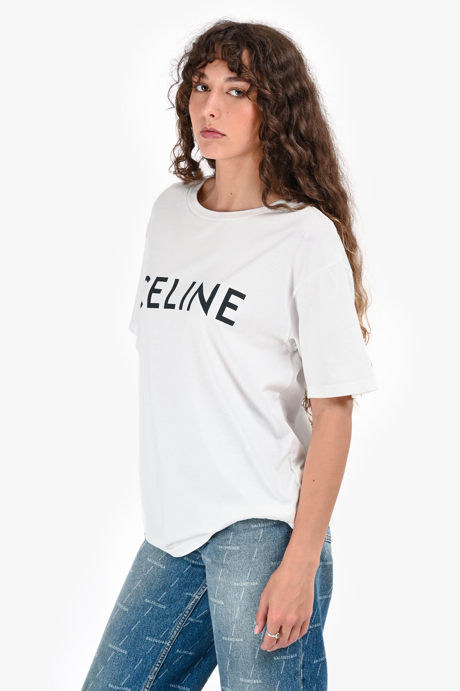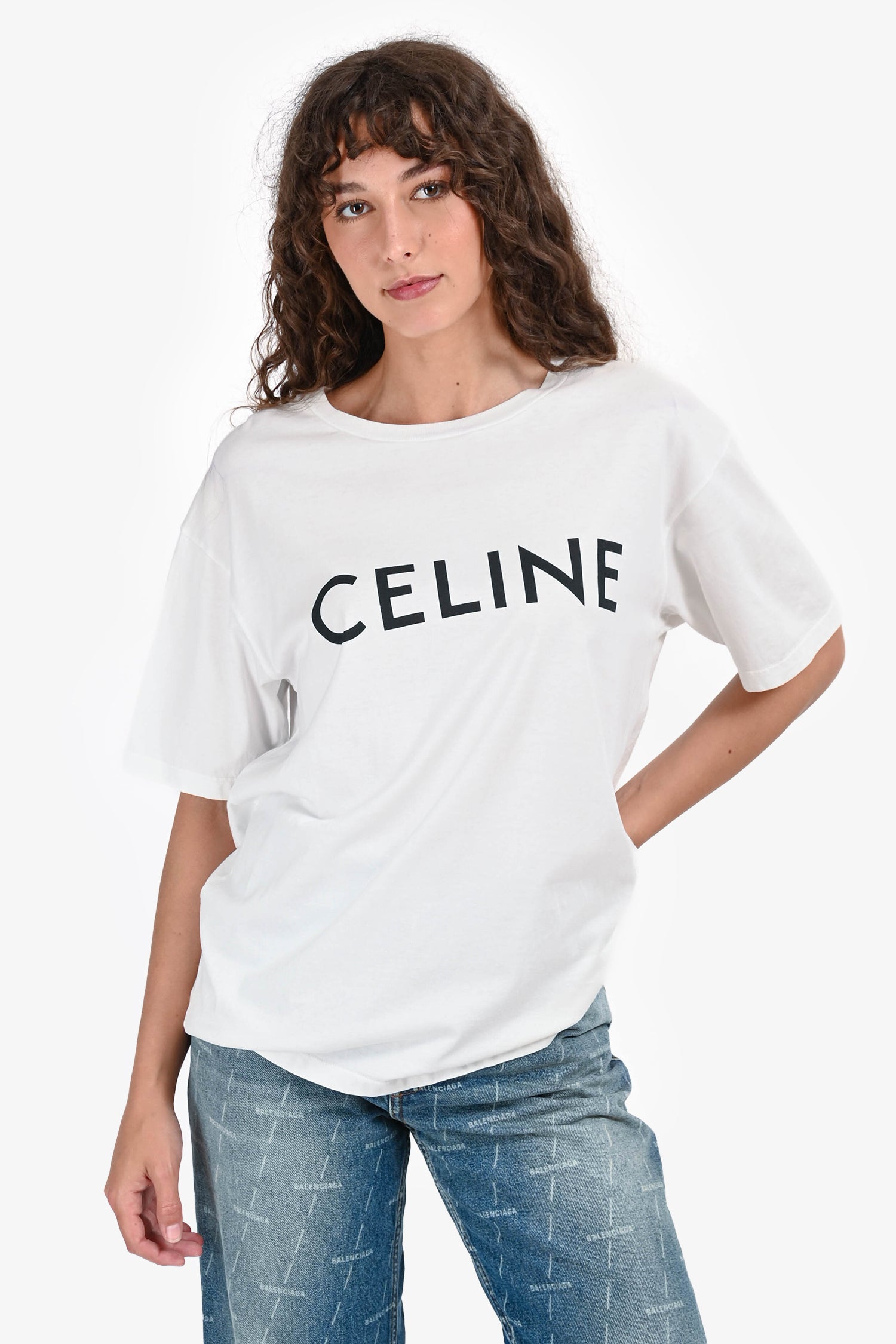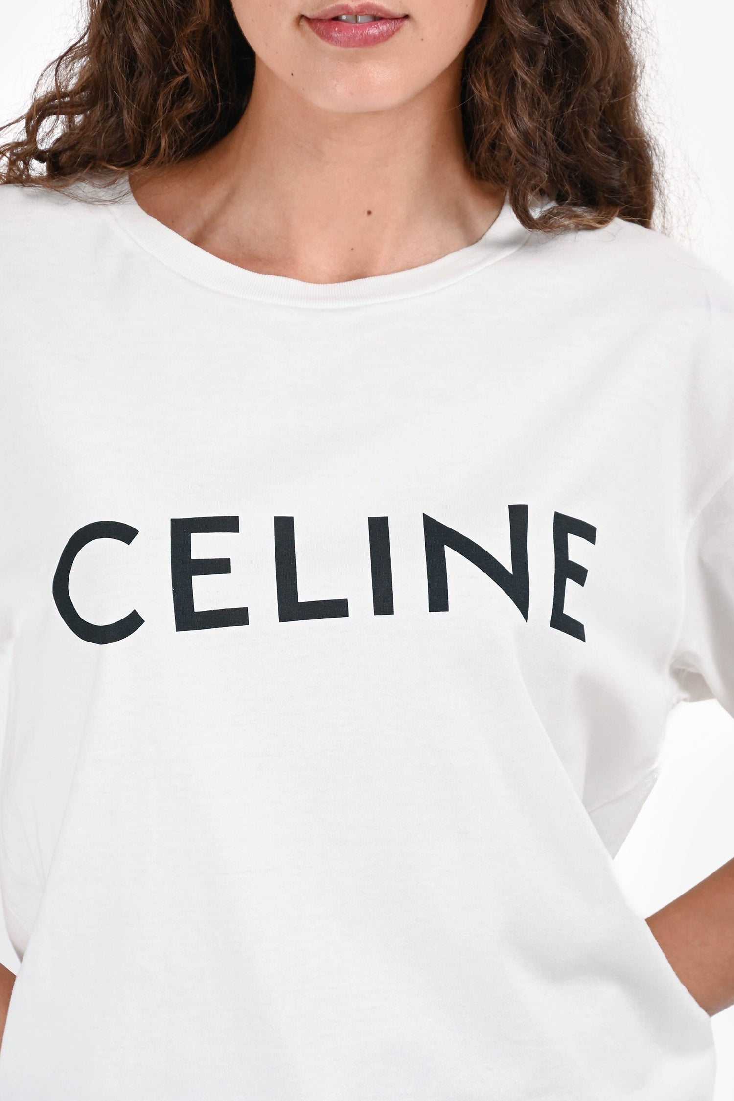 Refresh availabilityCeline White Cotton Logo T-Shirt. Crew neckline. Short sleeves. Tonal stitching.