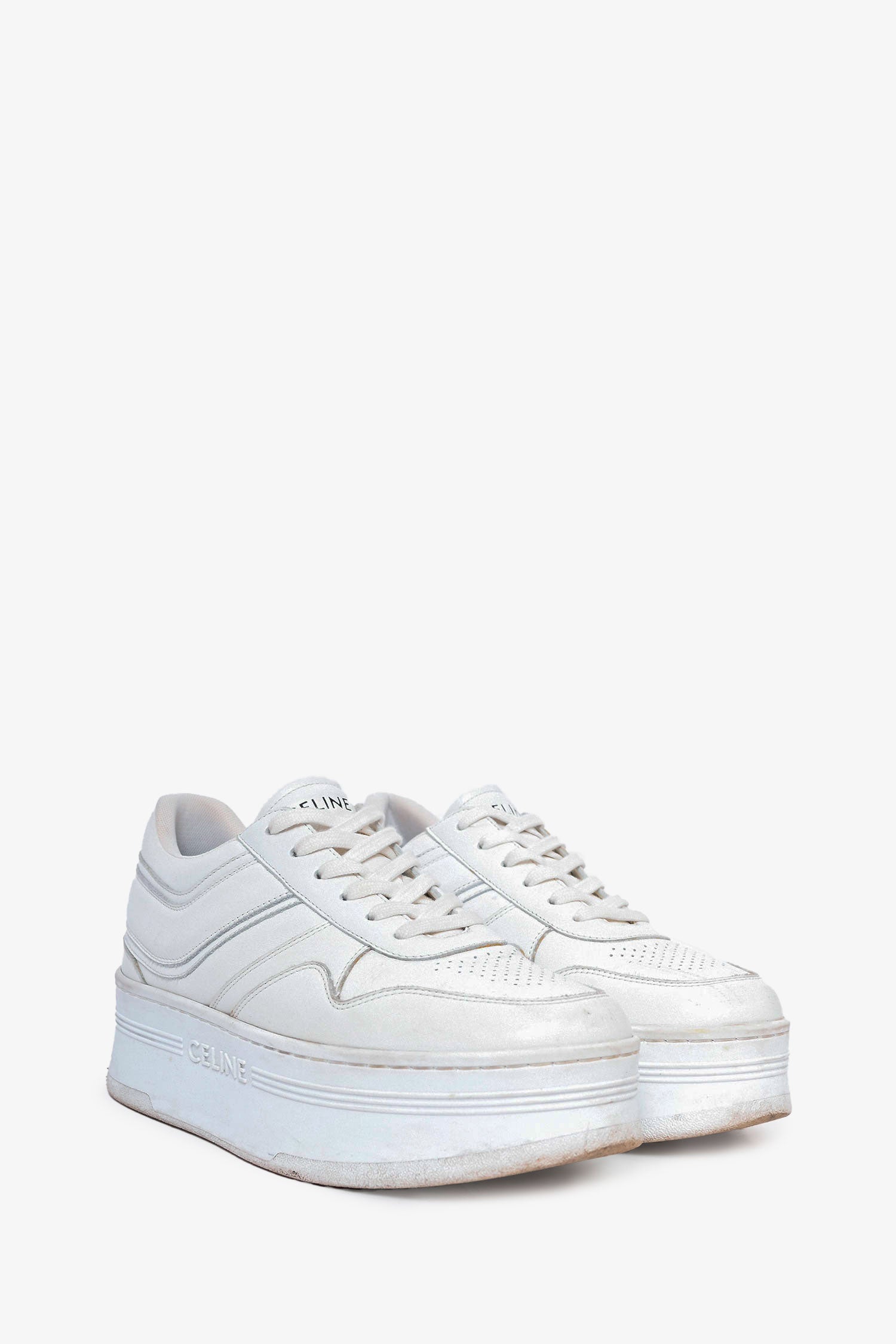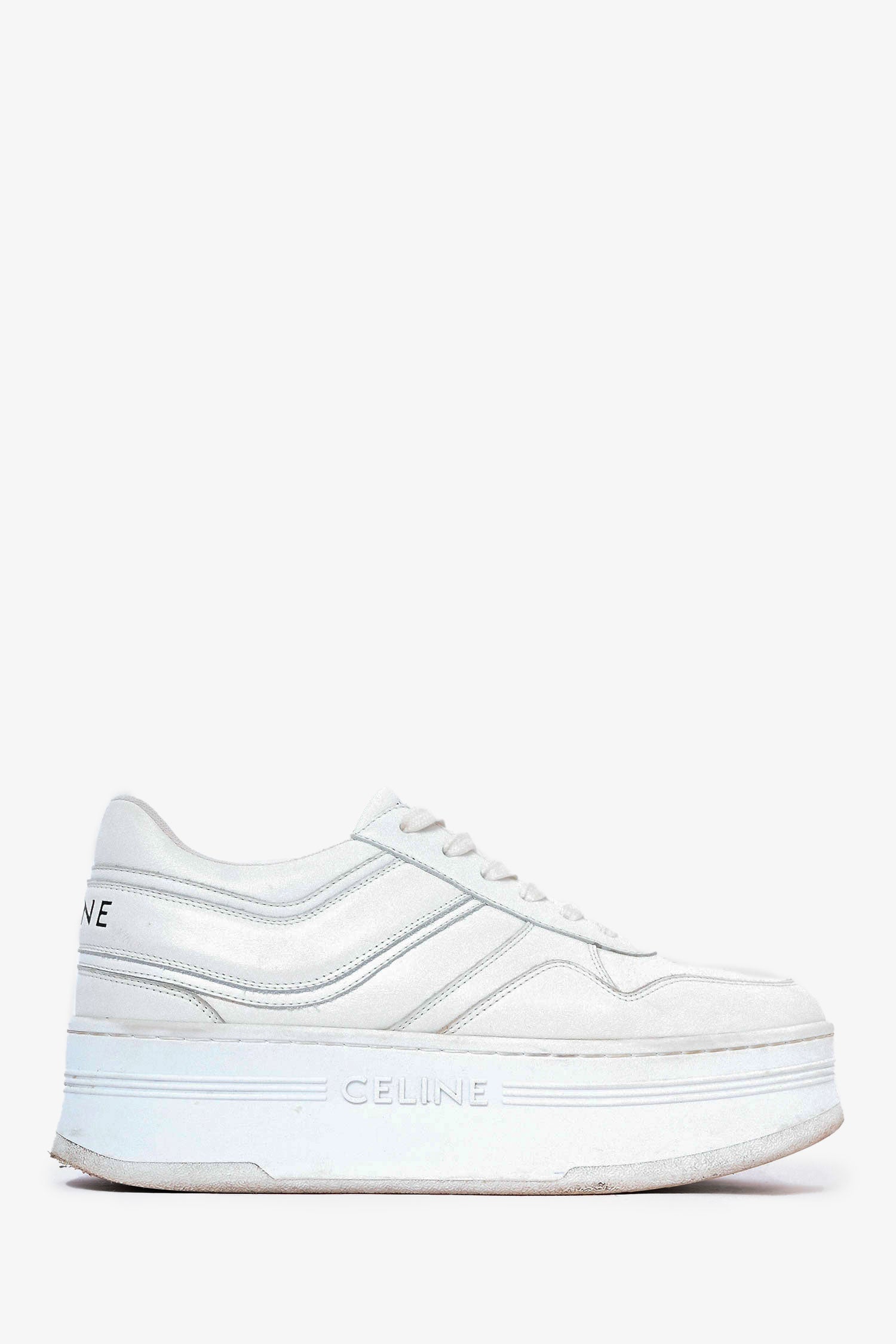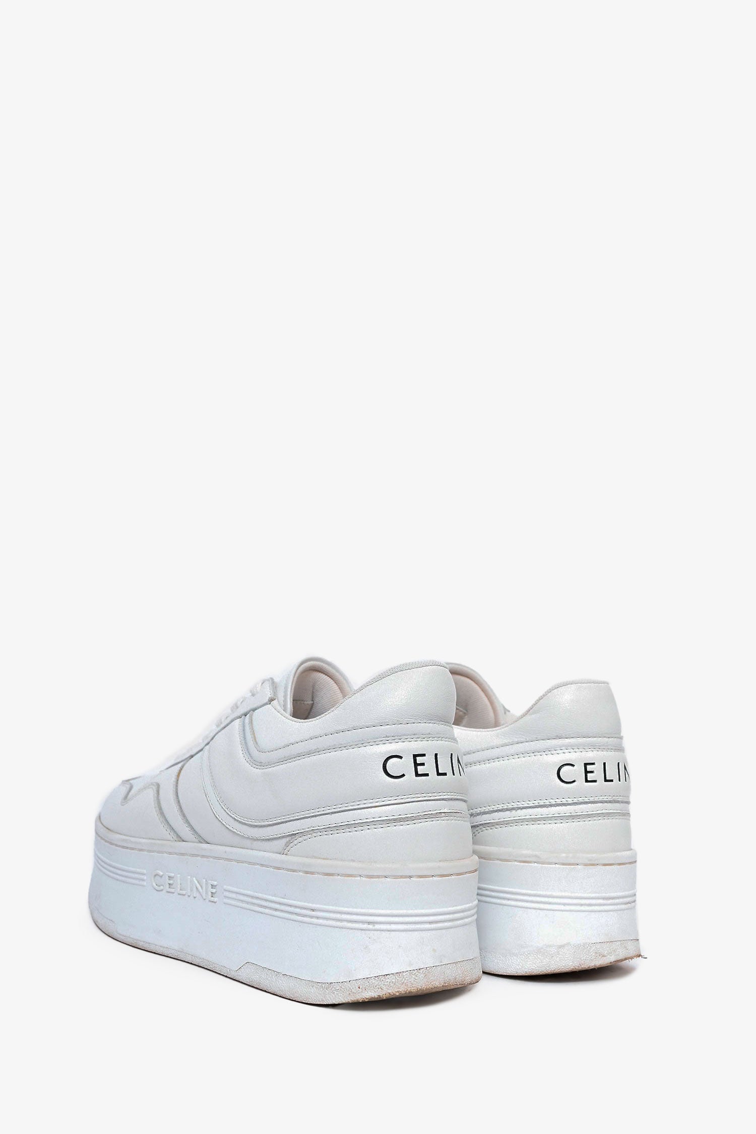 Refresh availabilityCeline White Leather Block Wedge Sneakers. Round toe. Lace-up closure. Brand name at the rear.