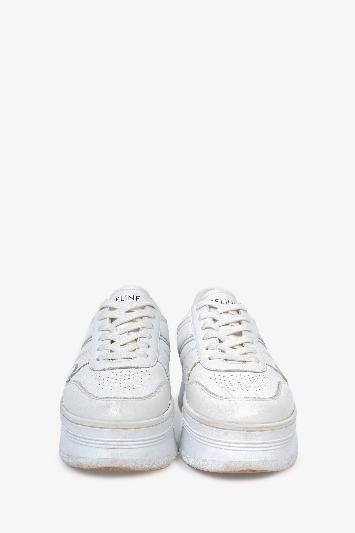 Celine White Leather Block Wedge Sneakers Size 40 (As Is)