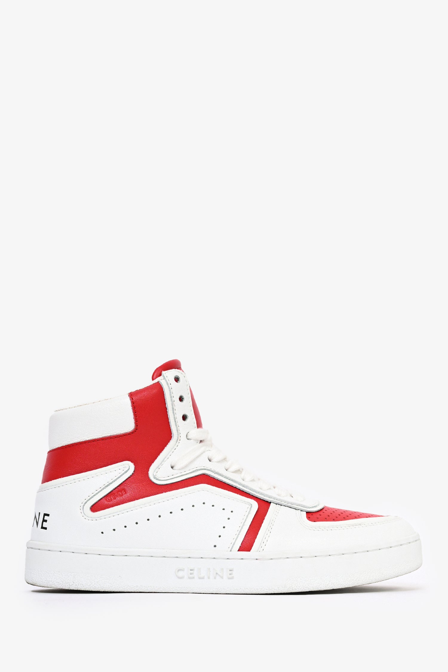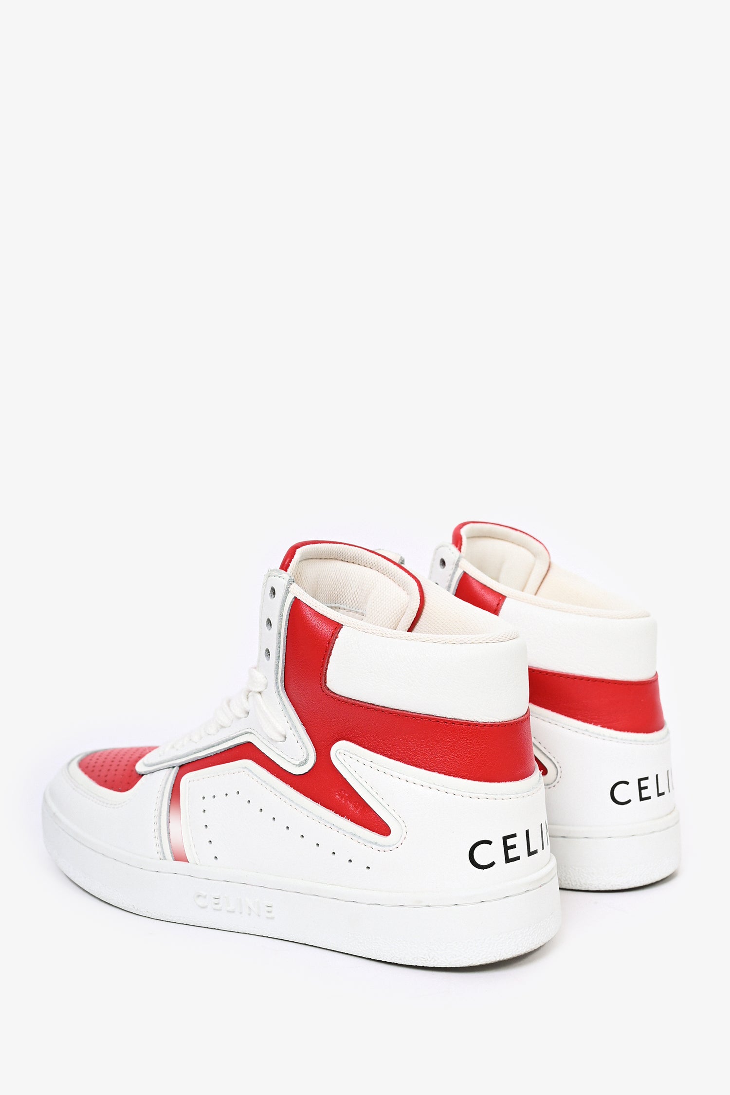 Celine White/Red Leather Logo High Top Sneakers Size 36