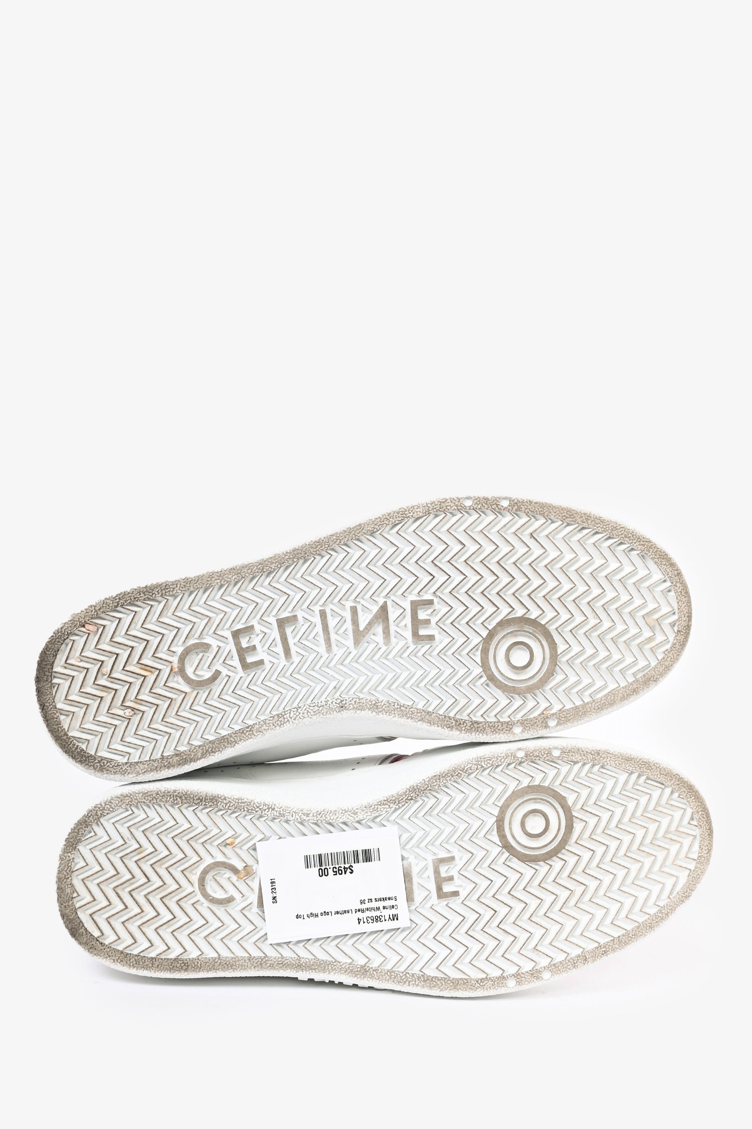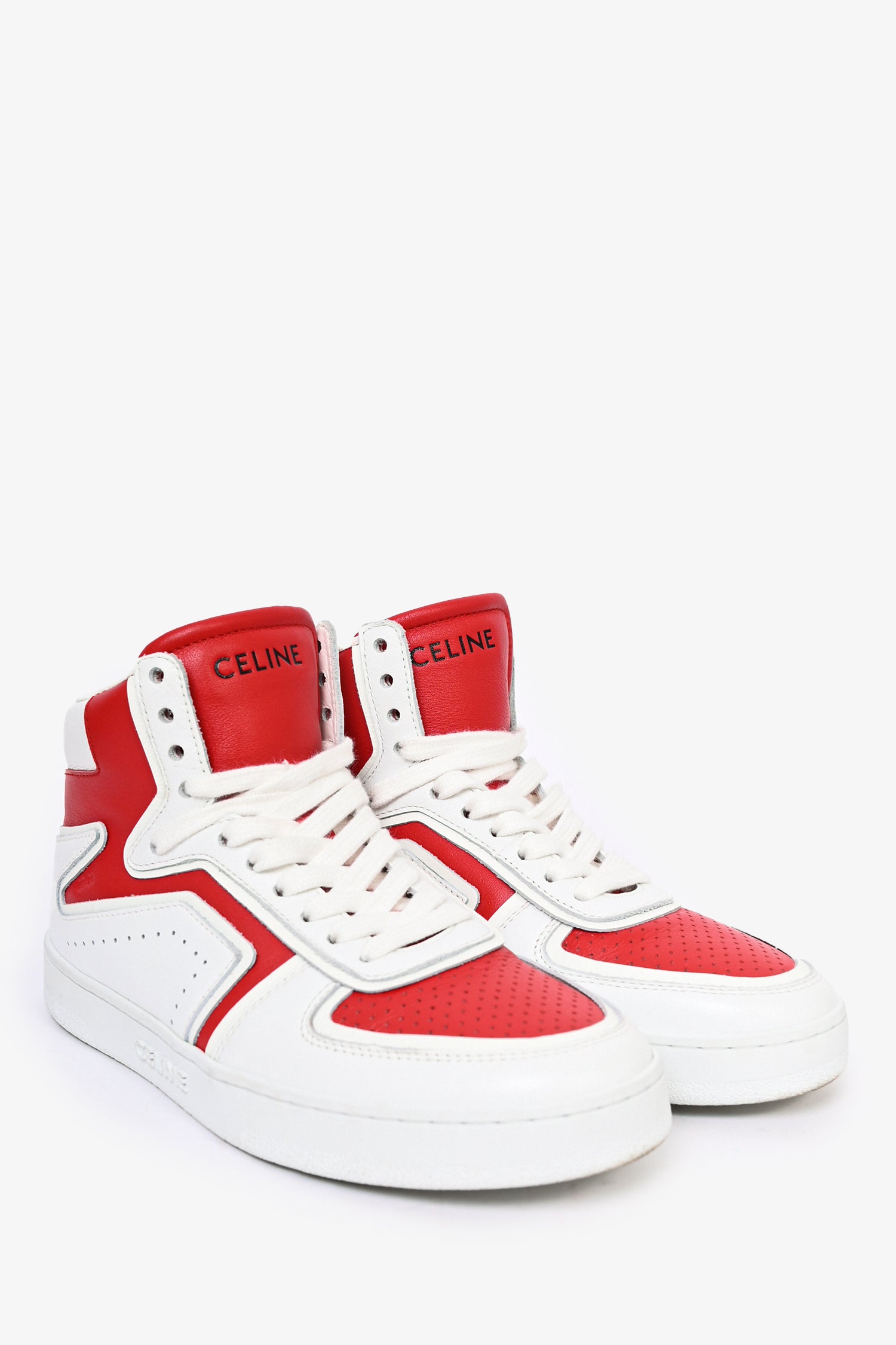 Refresh availabilityCeline White/Red Leather Logo High Top Sneakers. Lace-up front. Round toe.