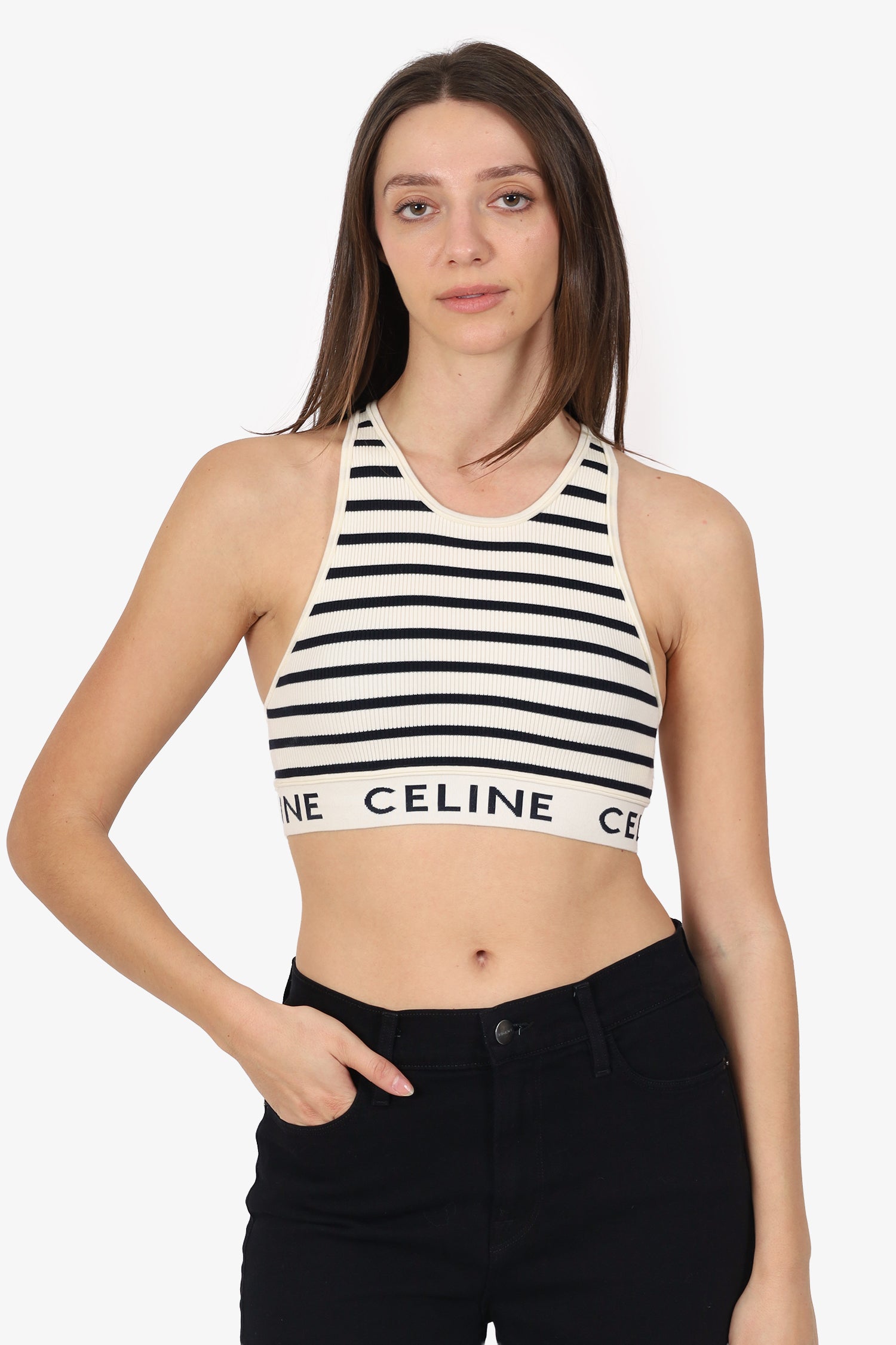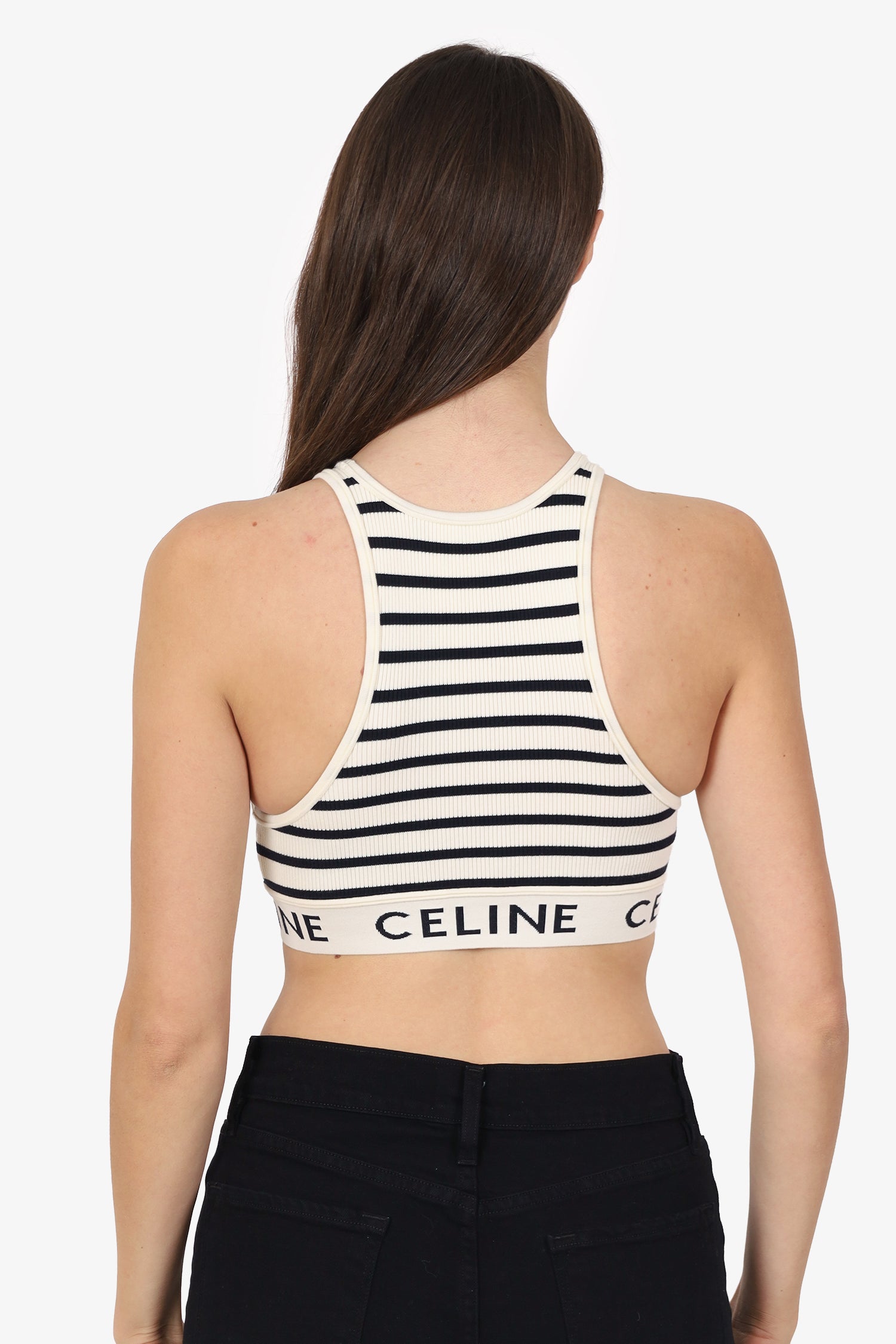 Refresh availabilityCeline White Striped Rib Knit Sports Bra. Pull-on. Round neckline. Racerback. Tonal stitching.