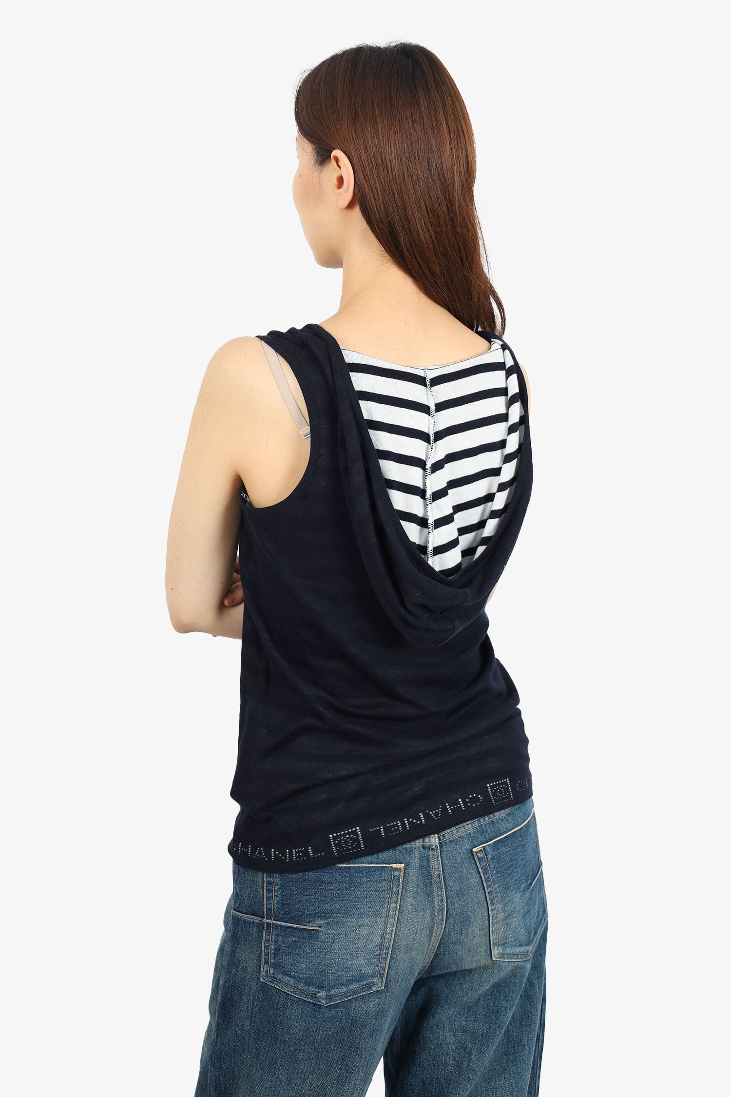 Pre-Loved Chanel™ 09P Navy Striped Striped Sleeveless Hoodie Size 34