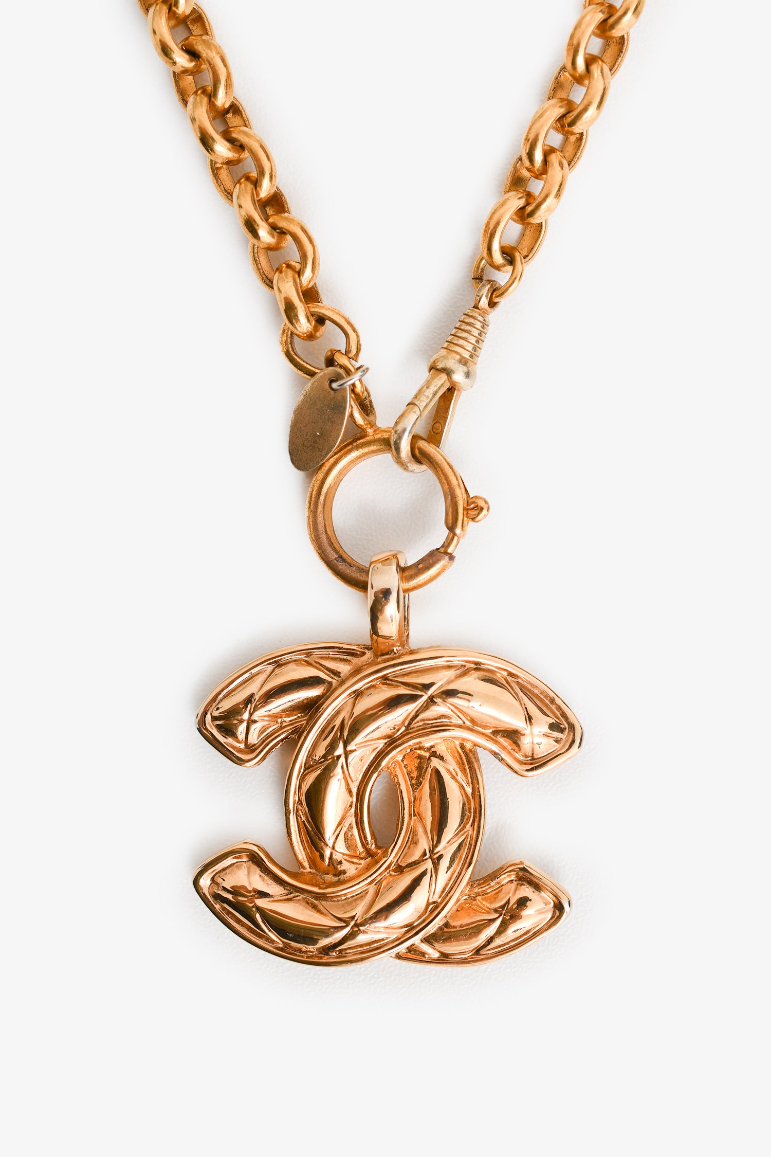 Refresh availabilityPre-Loved Chanel™ Gold Toned Quilted CC Toggle Necklace.