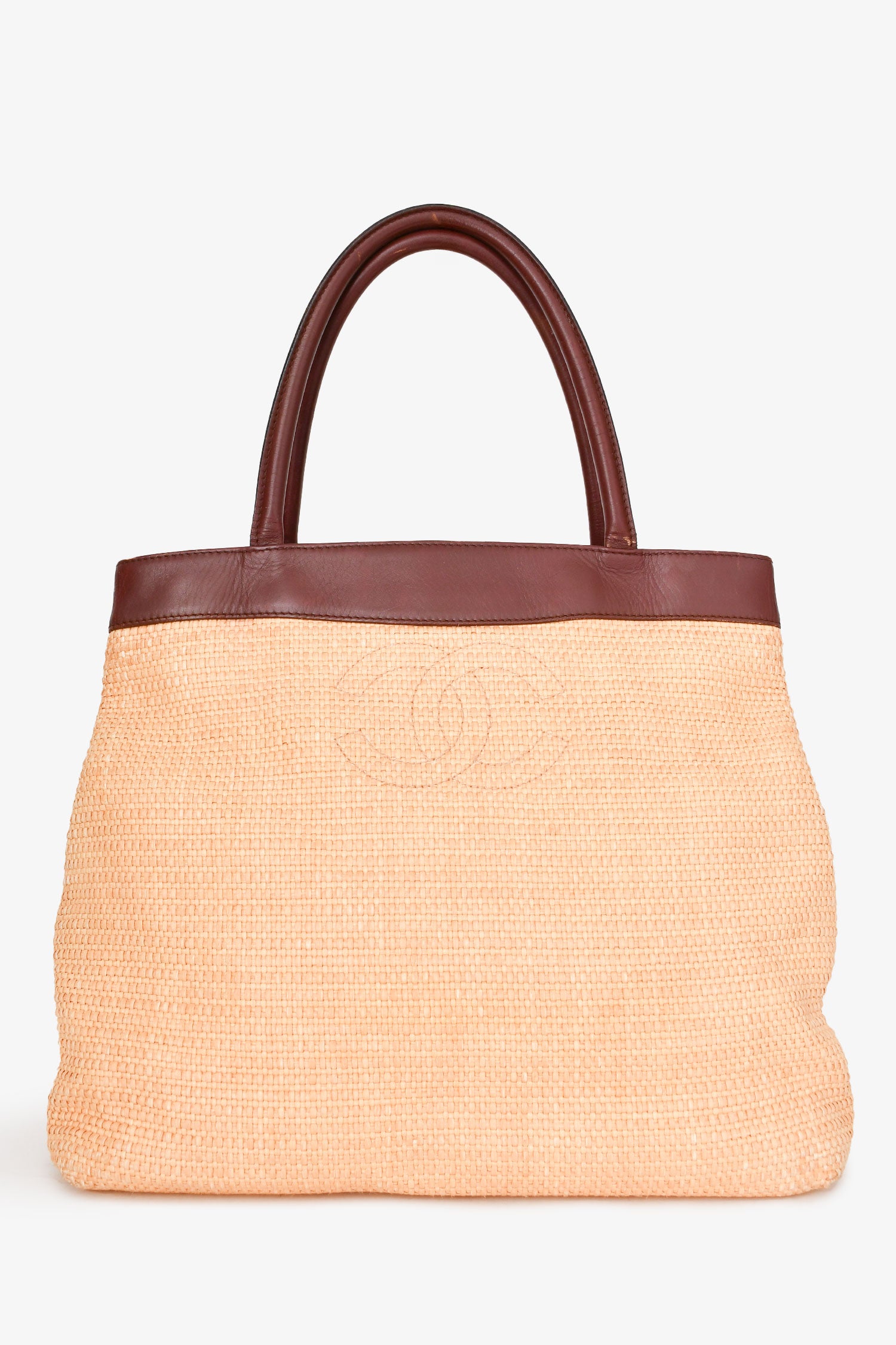 Refresh availabilityPre-Loved Chanel™ 1997-99 Beige/Brown Straw/Leather CC Tote. Dual handle. Top magnetic closure. Single compartment with two wall zip pocket. Tonal textile lining. Gold-tone hardware. Tonal stitching.