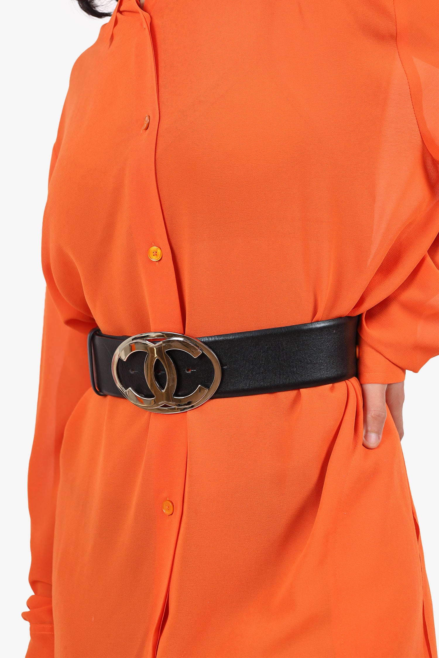 Refresh availabilityPre-Loved Chanel™ 2000 Black Leather CC Buckle Belt. Adjustable pull-through push-pin closure. Tonal stitching. Silver-tone hardware.