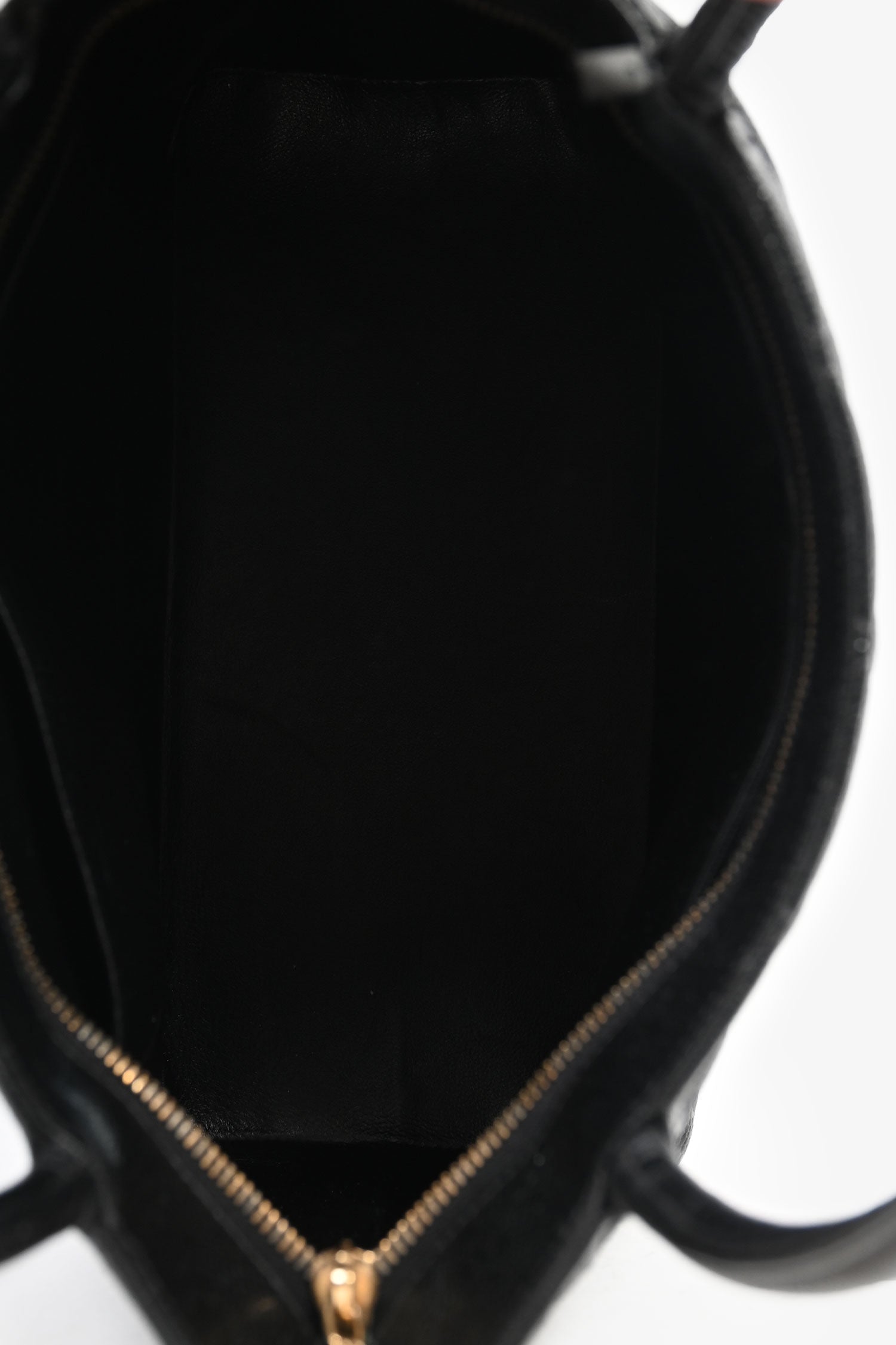 Pre-Loved Chanel™ 2002-03 Black Caviar Medallion Tote. Dual handle. Top zipper closure. Exterior slip pocket. Single compartment with a wall zip pocket and a wall slip pocket. Tonal textile lining. Gold-tone hardware. Tonal stitching.