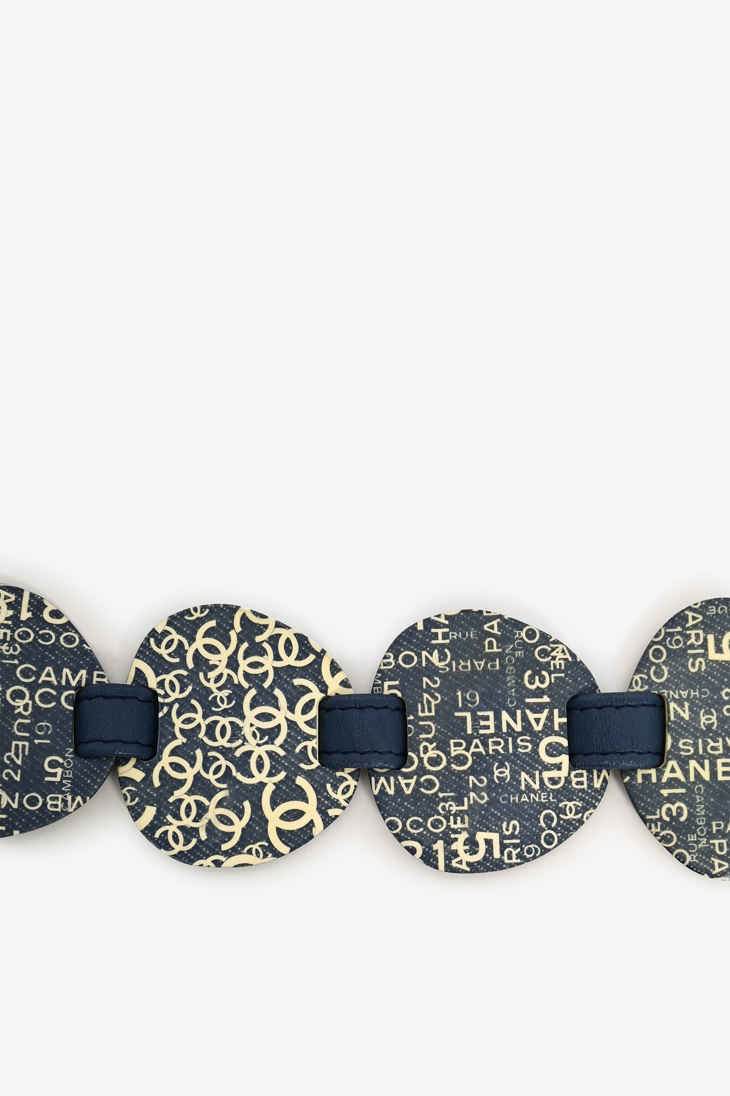 Refresh availabilityPre-Loved Chanel™ 2002 Blue CC Logo Medallion Bow Detail Belt. Leather strap with tonal stitching.