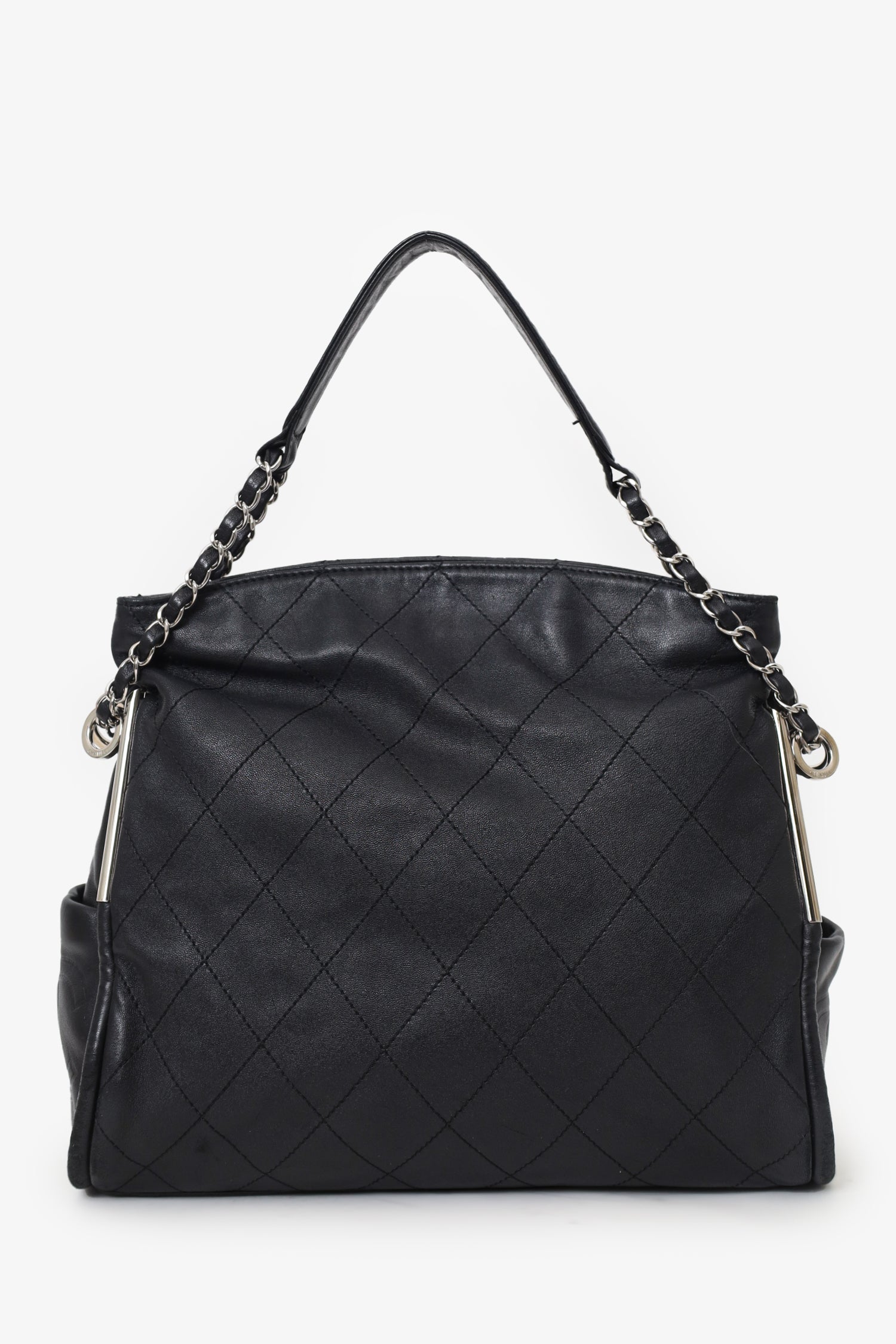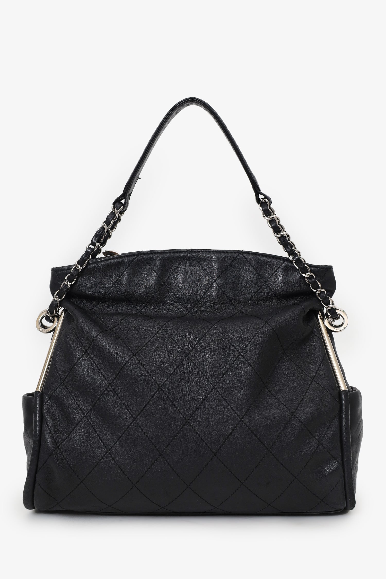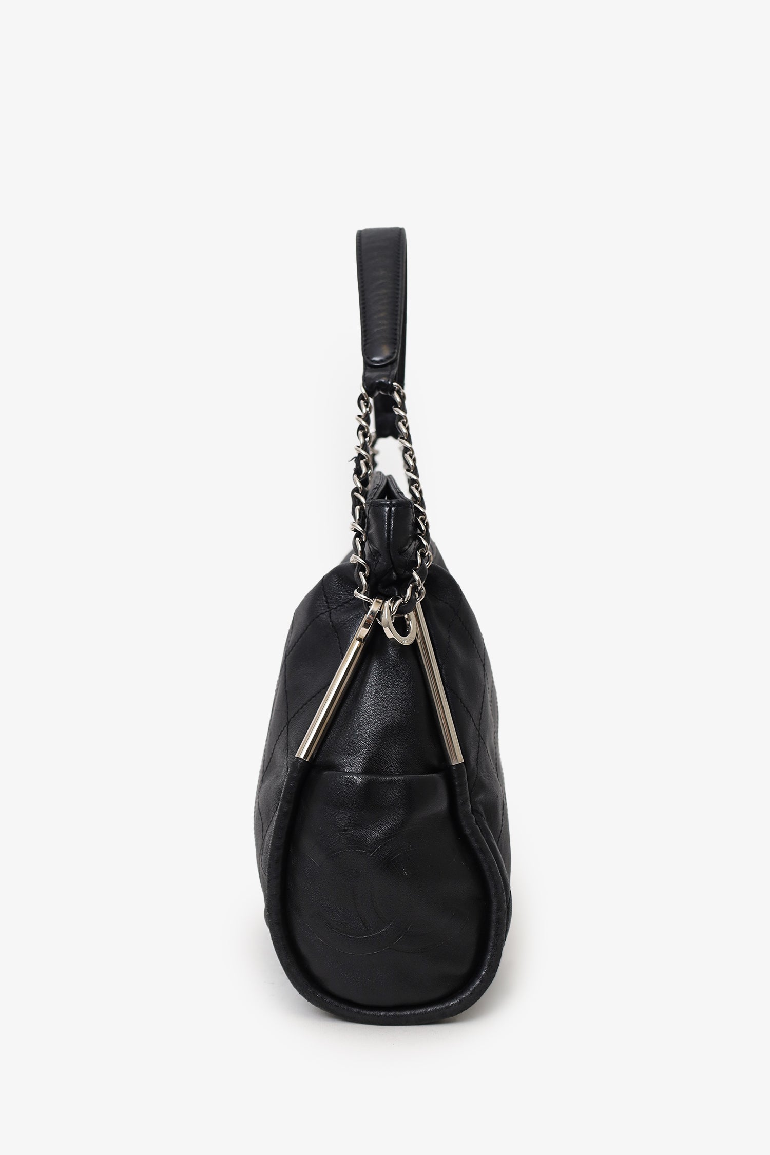 Refresh availabilityPre-Loved Chanel™ 2005-06 Black Quilted Ultimate Soft Hobo Bag. Top-zip closure. Single chain-link shoulder strap. Fabric-lined interior. Single rear-wall zip pocket. Silver-tone hardware. Tonal stitching.