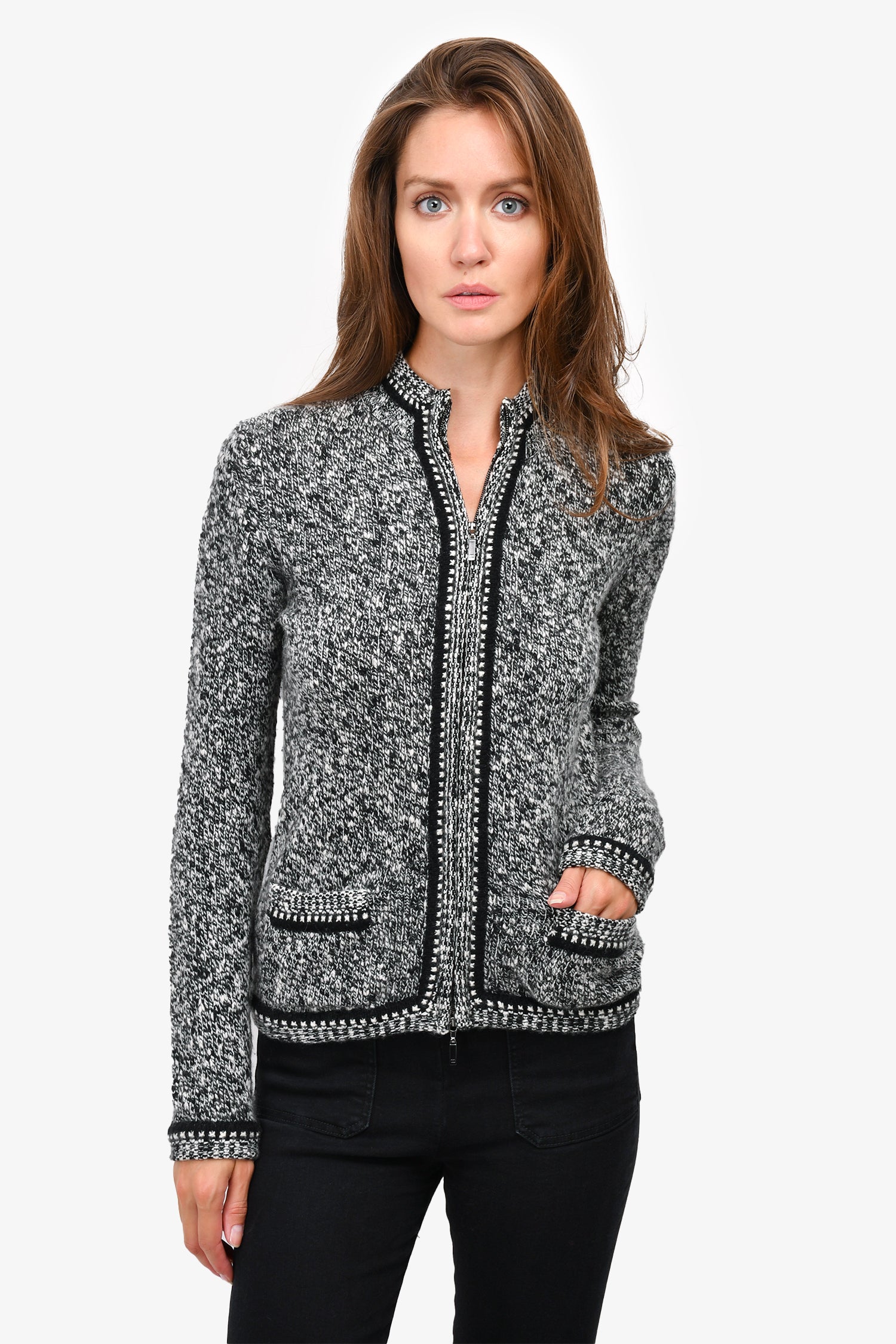 Refresh availabilityPre-Loved Chanel™ 2005 Black/White Cashmere Zip Sweater. Tonal stitching.