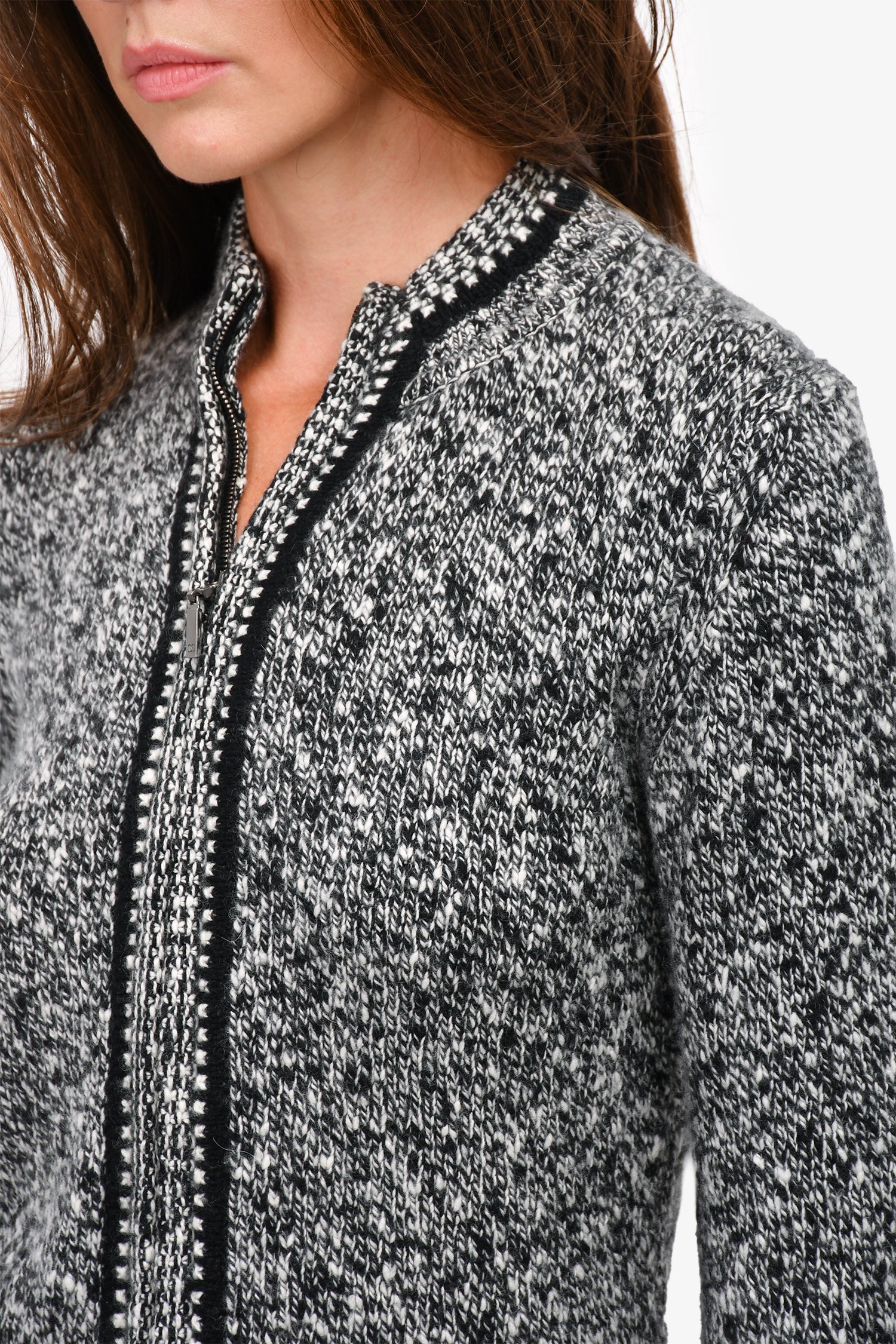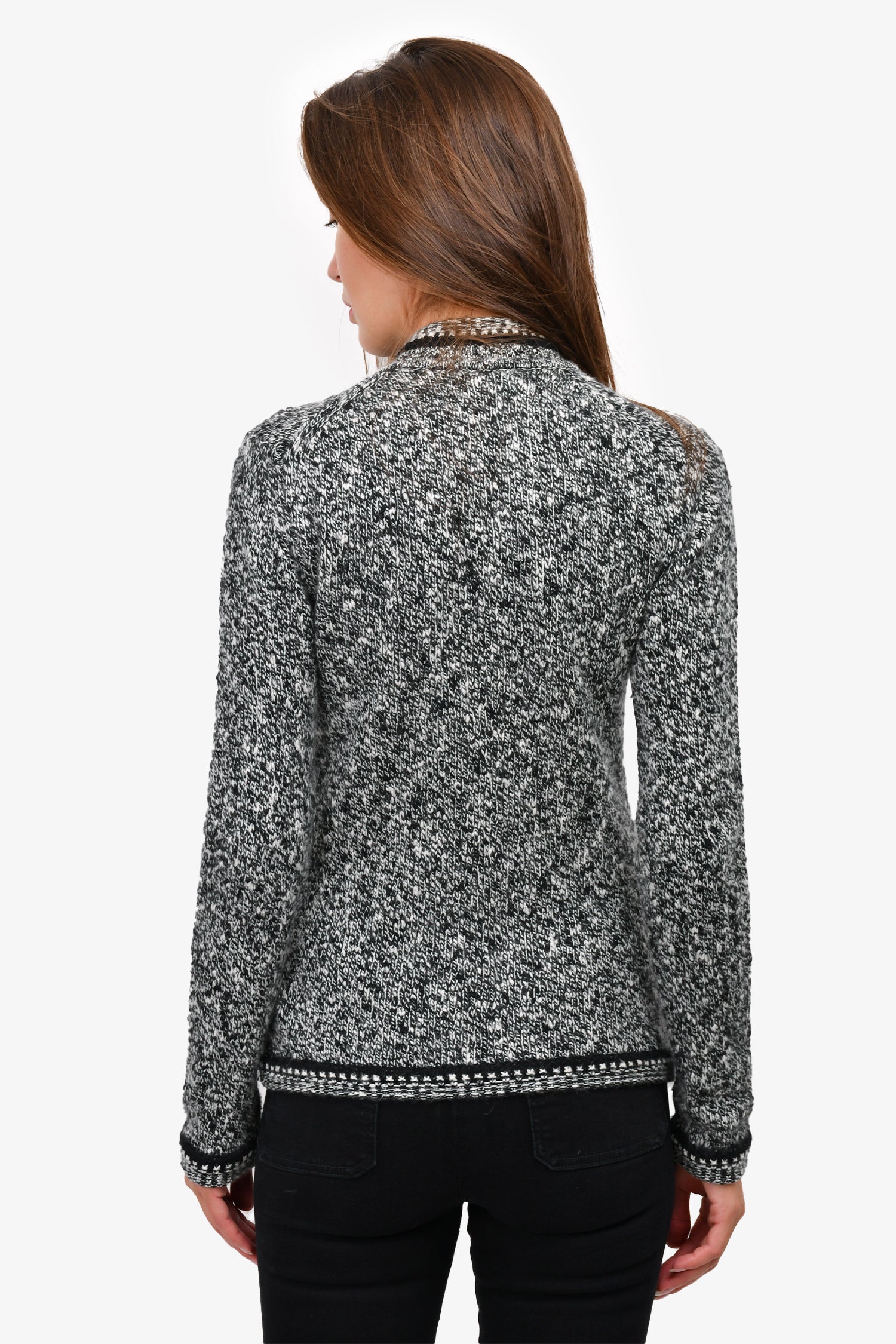 Pre-Loved Chanel™ 2005 Black/White Cashmere Zip Sweater Size 38