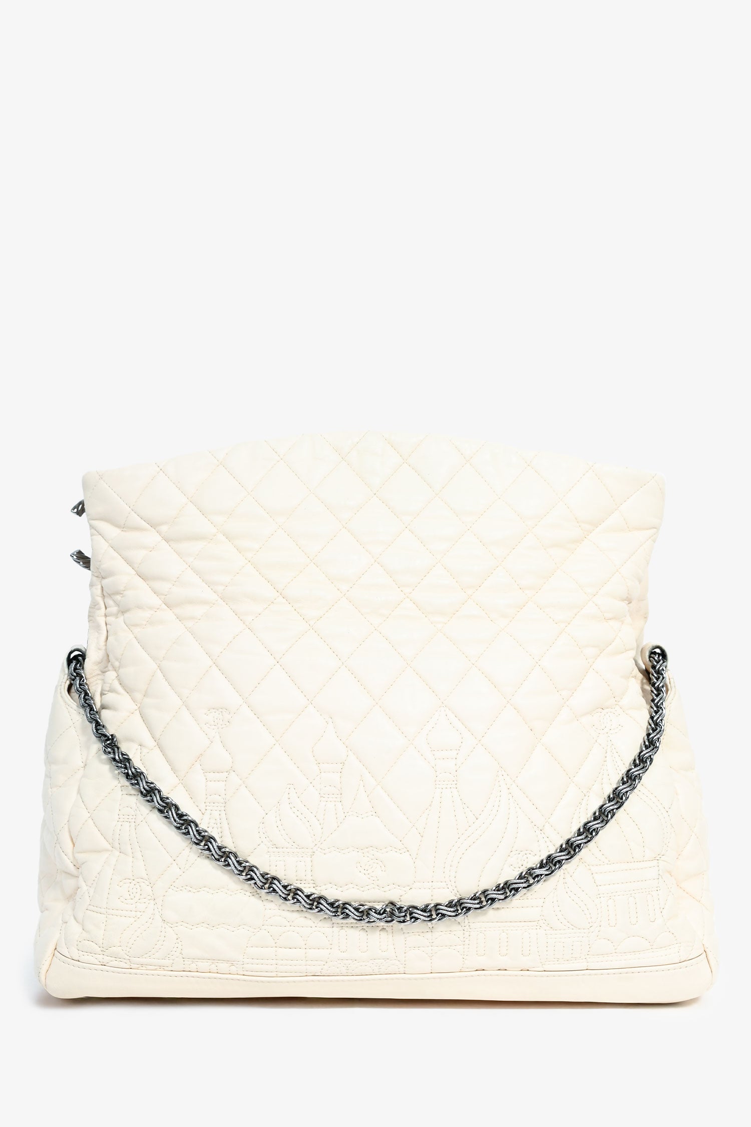 Pre-Loved Chanel™ 2008-09 White Lambskin Quilted Paris-Moscou Red Square Kremlin Tote