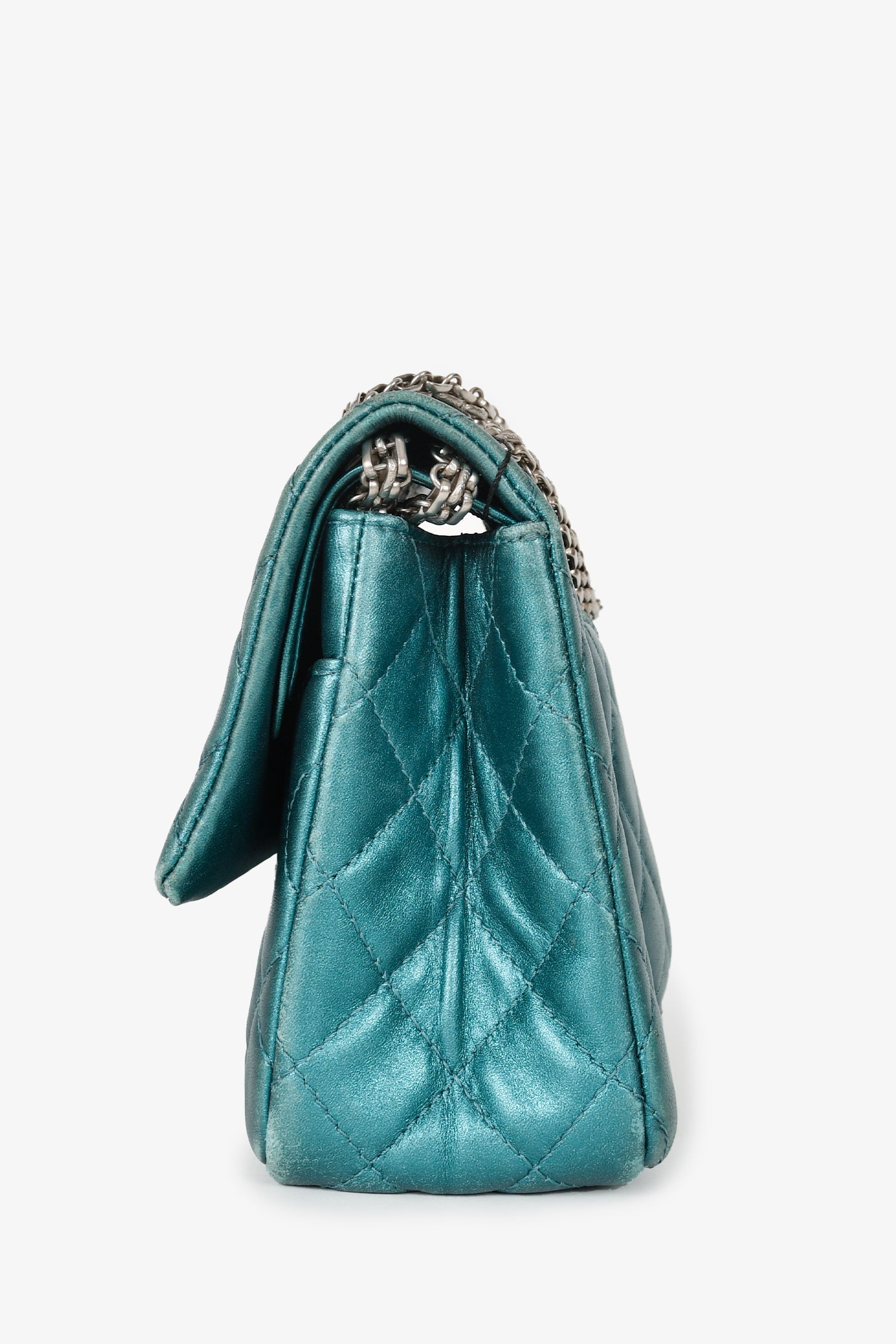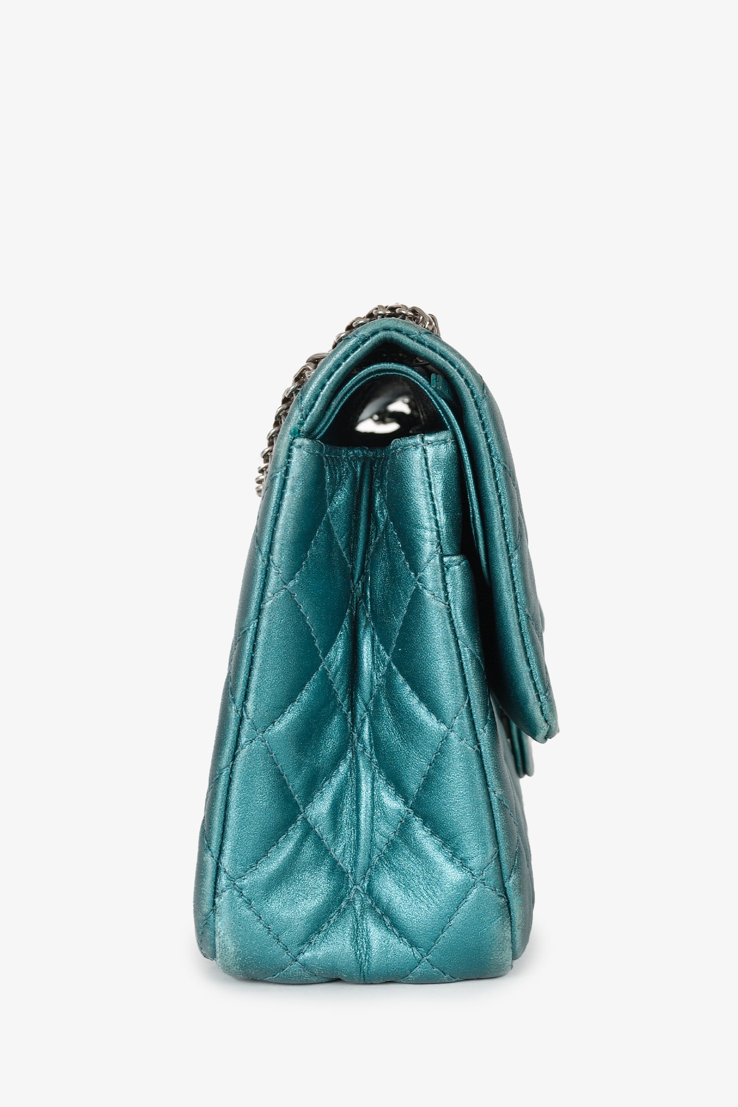 Pre-Loved Chanel™ 2008/9 Teal Metallic Quilted Leather 2.55 Reissue 226 Double Flap Bag