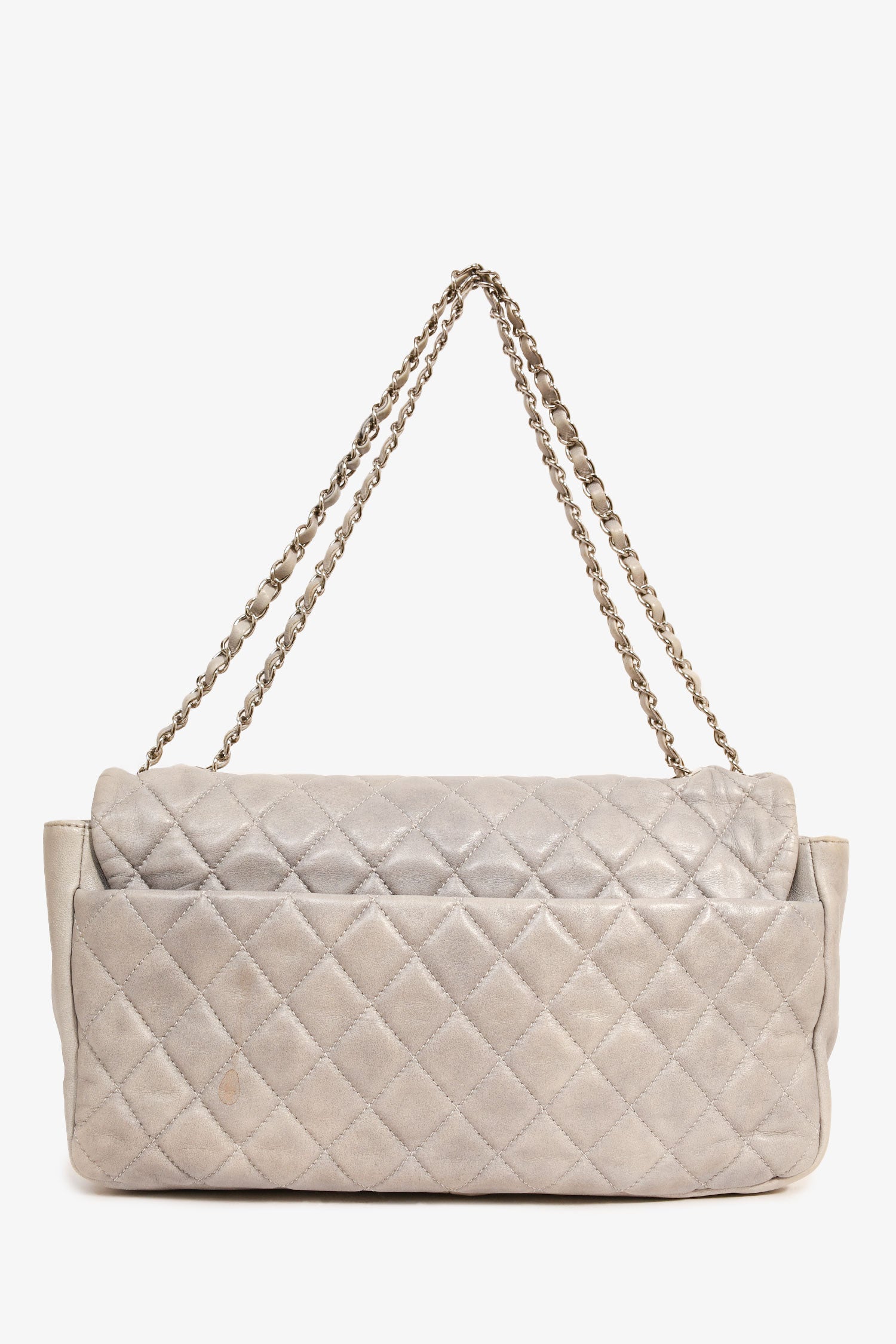 Refresh availabilityPre-Loved Chanel™ 2009-10 Grey Lambskin 'Coco Rain' Flap Bag. Fold-over flap with a turn-lock closure. Silver-tone hardware. Satin-lined interior with a zipped compartment. Chain-link and leather shoulder strap. Tonal stitching.