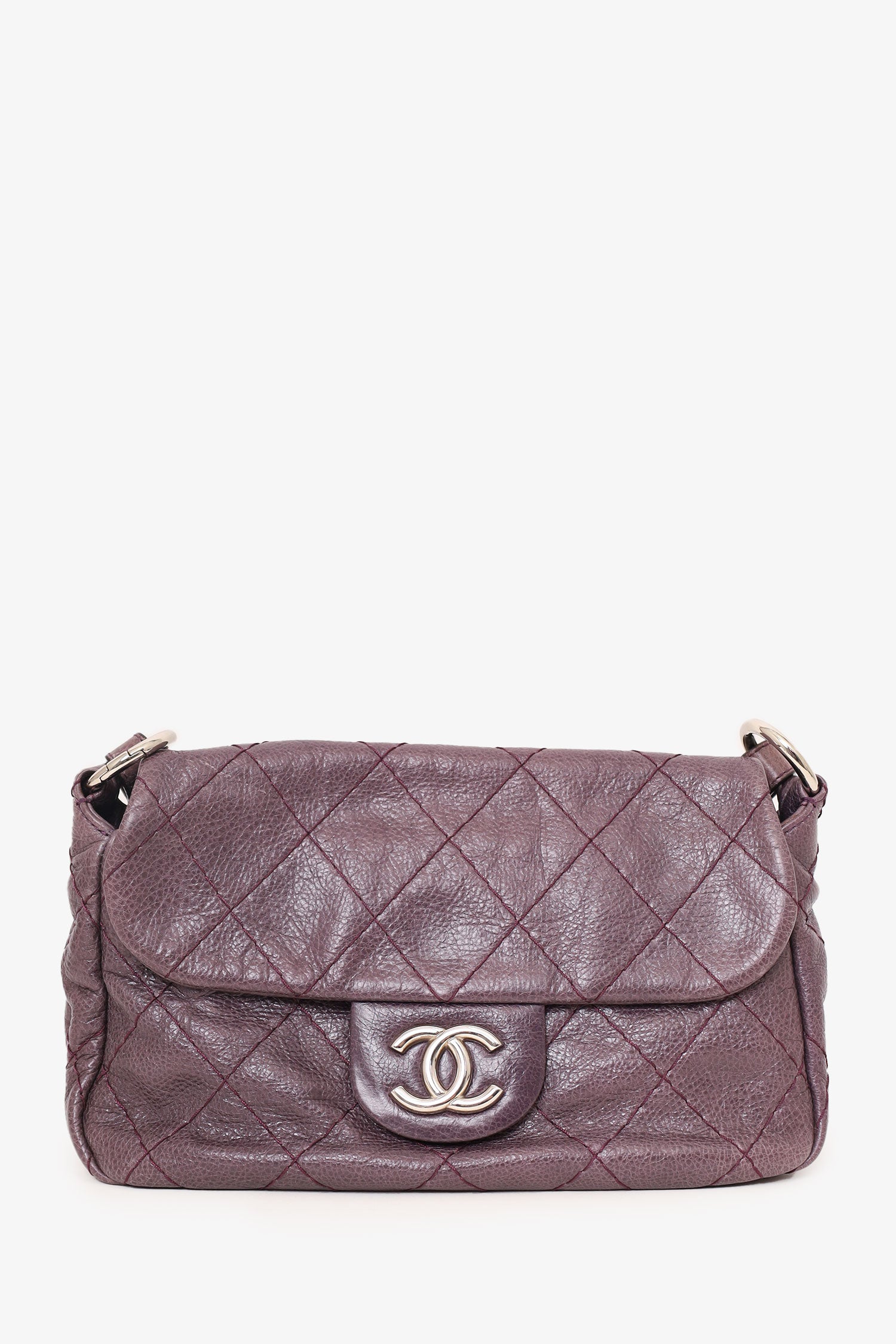 Pre-Loved Chanel™ 2009-10 Purple Glazed Calfskin Stitched On The Road Flap Bag