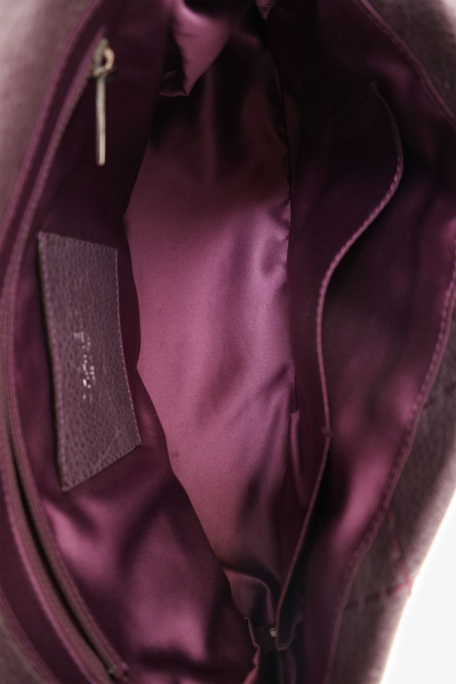 Refresh availabilityPre-Loved Chanel™ 2009-10 Purple Glazed Calfskin Stitched On The Road Flap Bag. Front fold-over flap with snap button closure. Shoulder strap. Open interior with 2 wall slip pockets and 1 wall zip closure pocket. Silver-tone hardware. Tonal stitching.