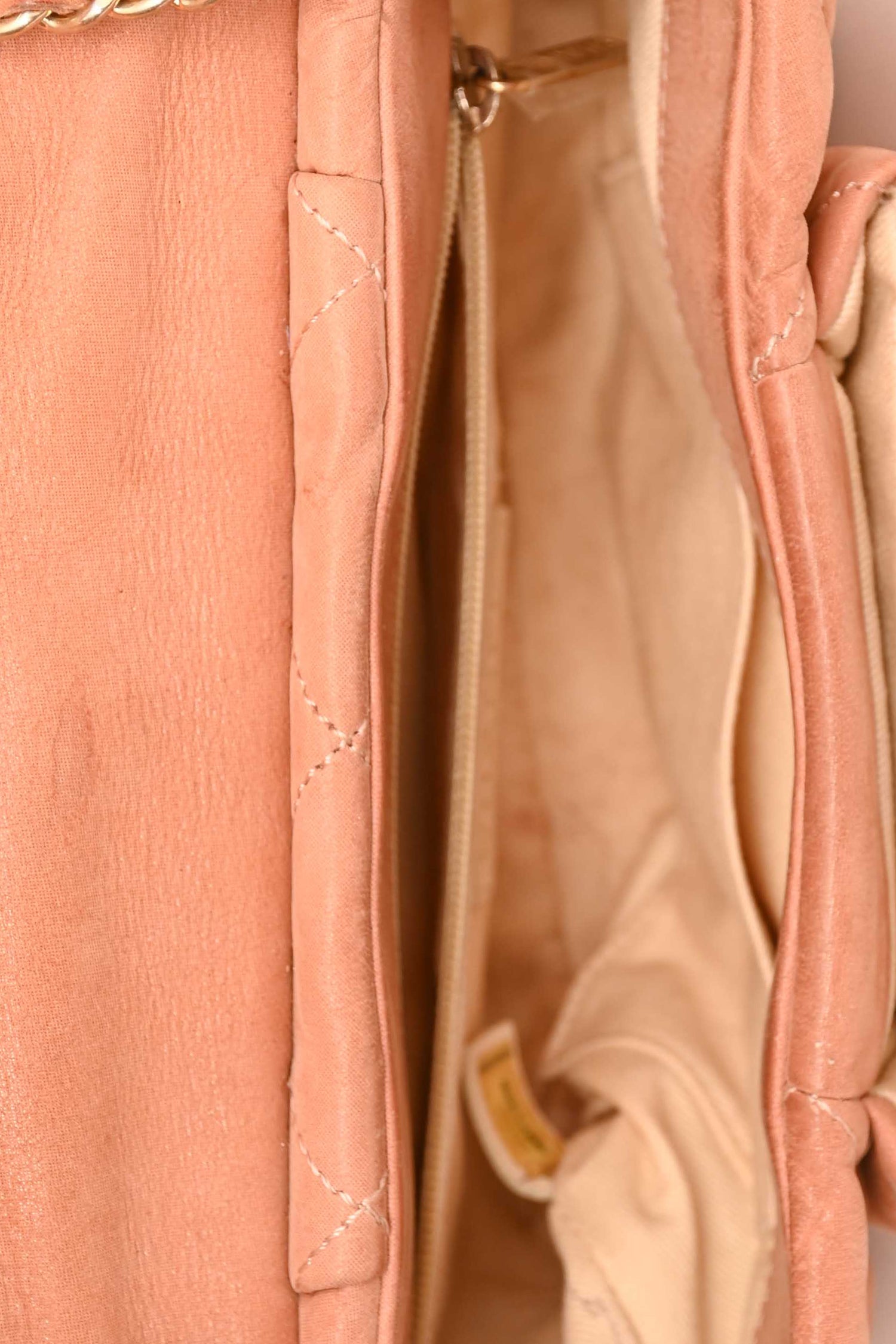 Pre-Loved Chanel™ 2011/12 Pink Leather Chic Quilt Flap Bag. Gold-tone hardware. Fold-over flap with a turn-lock closure. Lined interior with a single slip and zipped compartment.