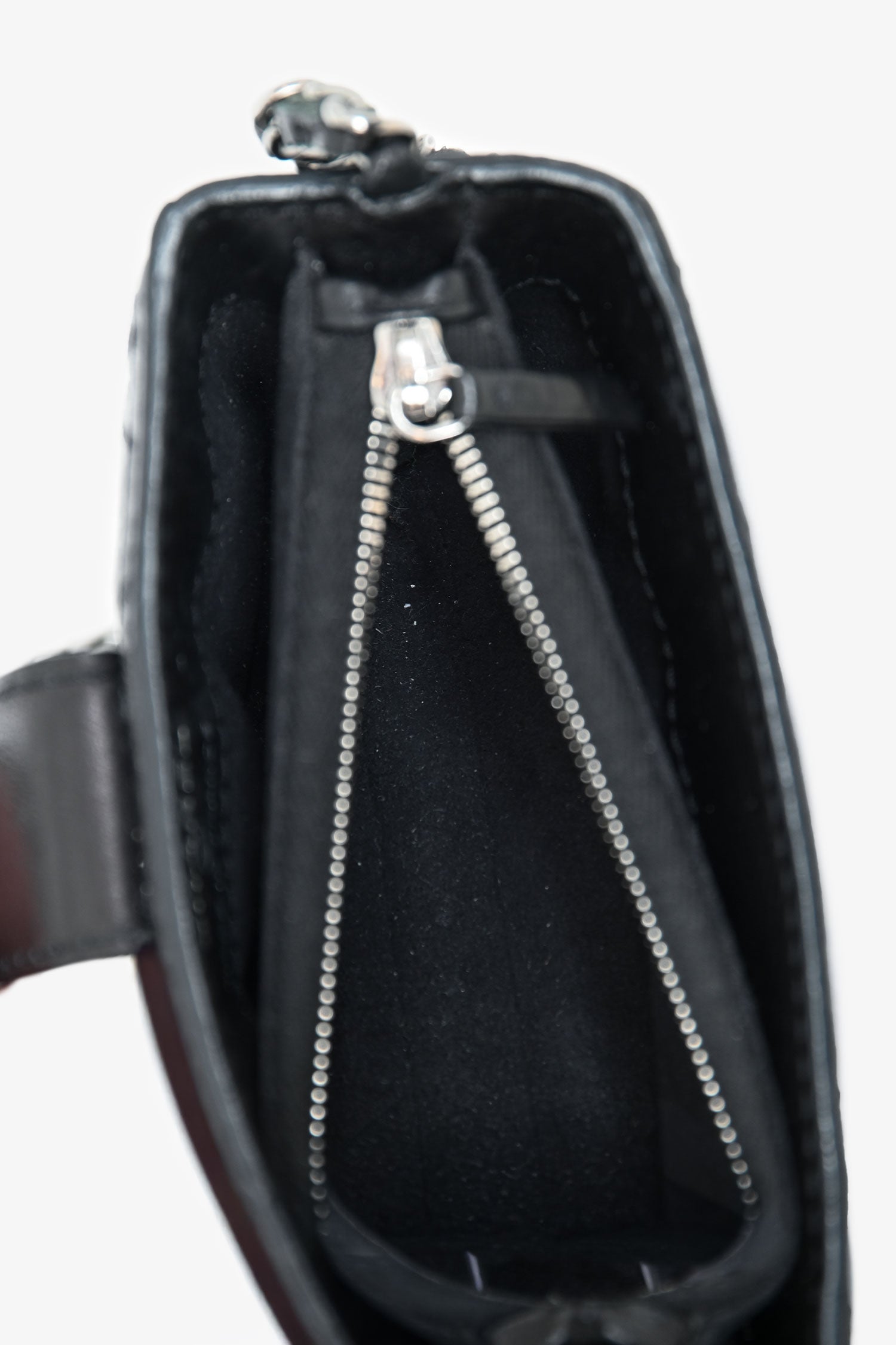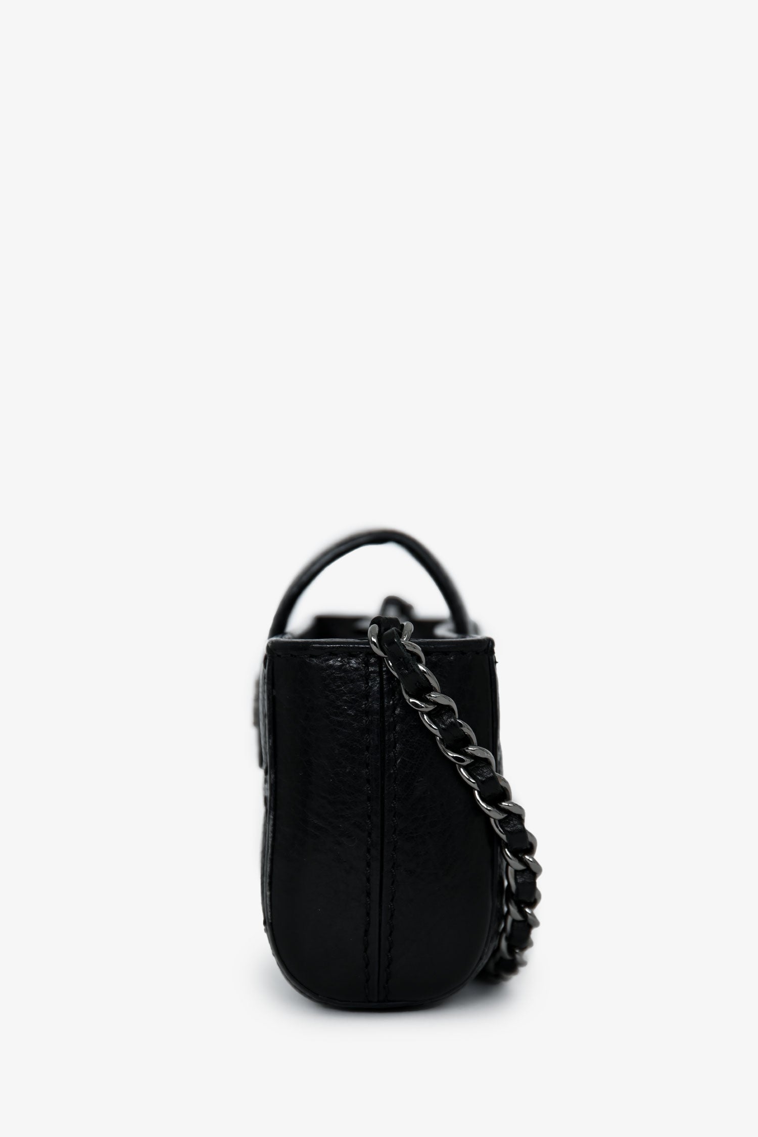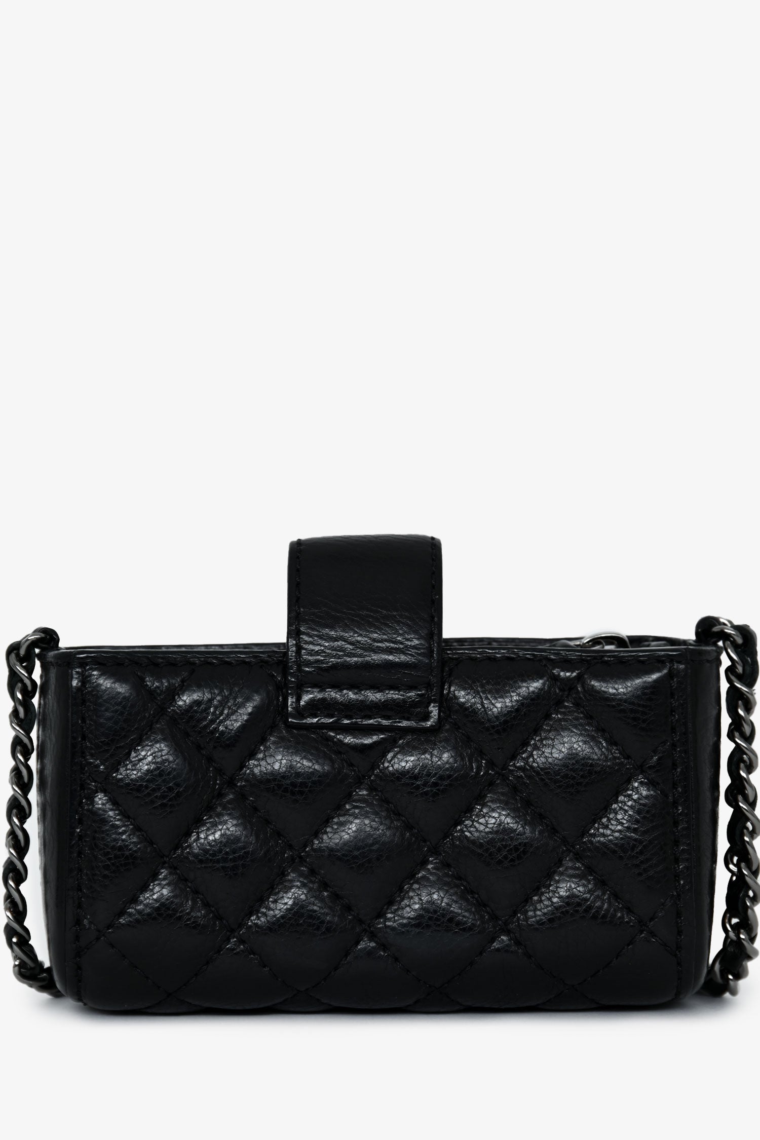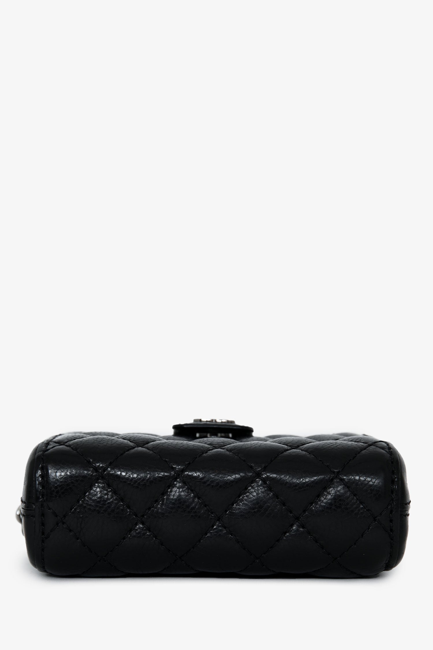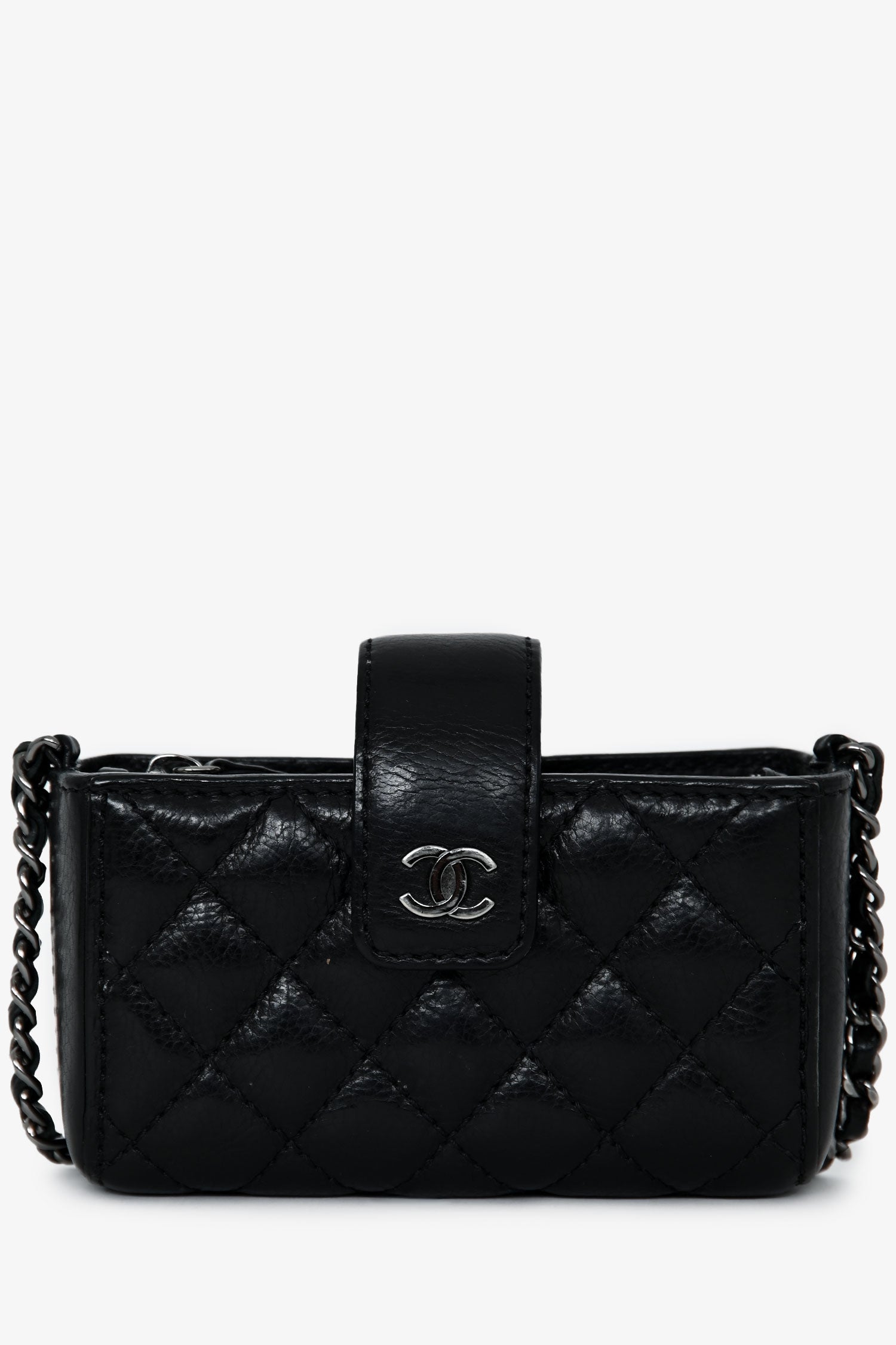 Refresh availabilityPre-Loved Chanel™ 2011 Black Caviar Leather Mini Phone Holder Crossbody. Top concealed zip closure. Top fold-over strap with a snap button closure. Chain-link crossbody strap. Lined interior. Silver-tone hardware. Tonal stitching.