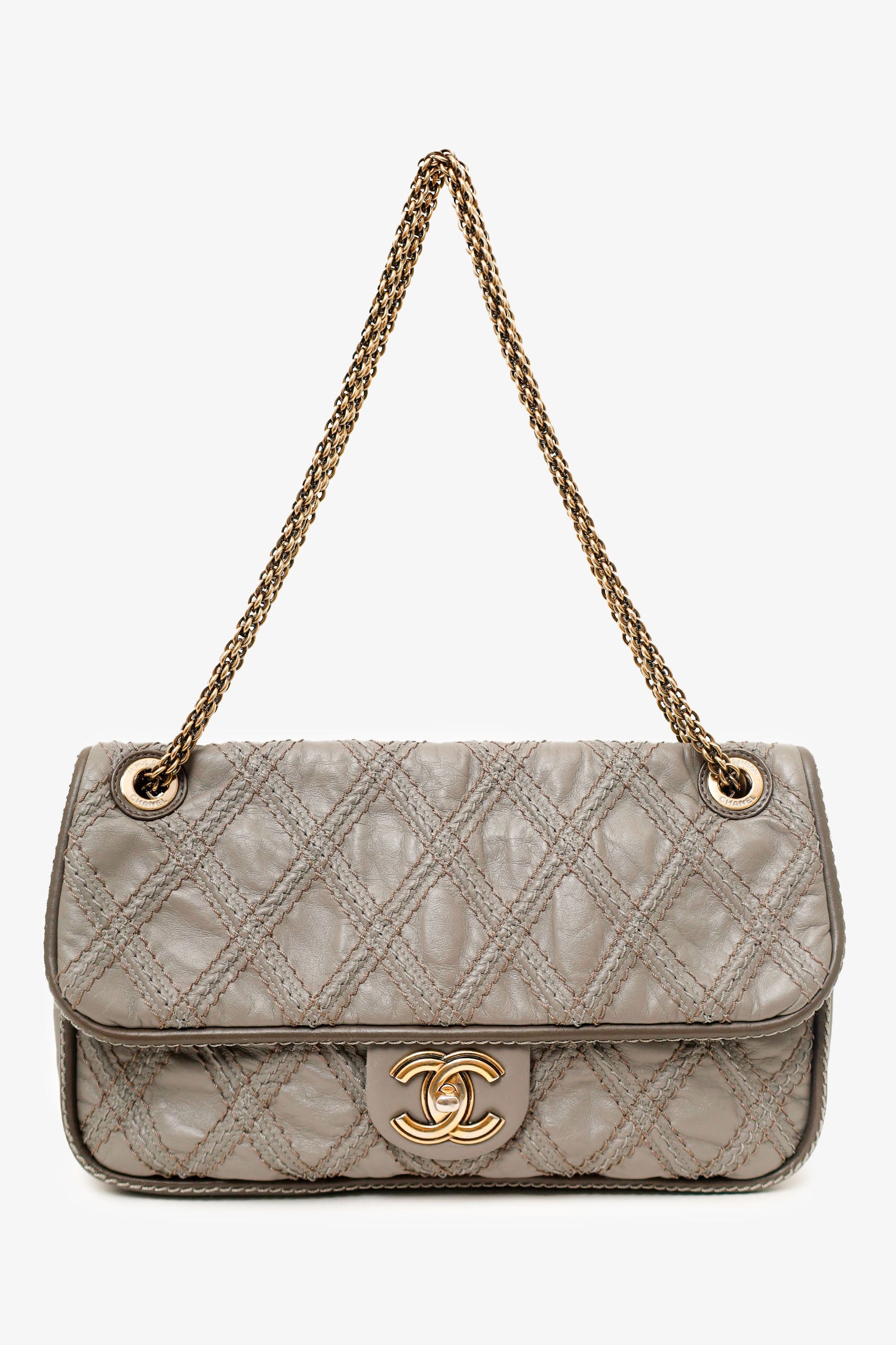 Pre-loved Chanel™ 2011 Grey Quilted Leather Paris-Bombay Triptych Flap Bag