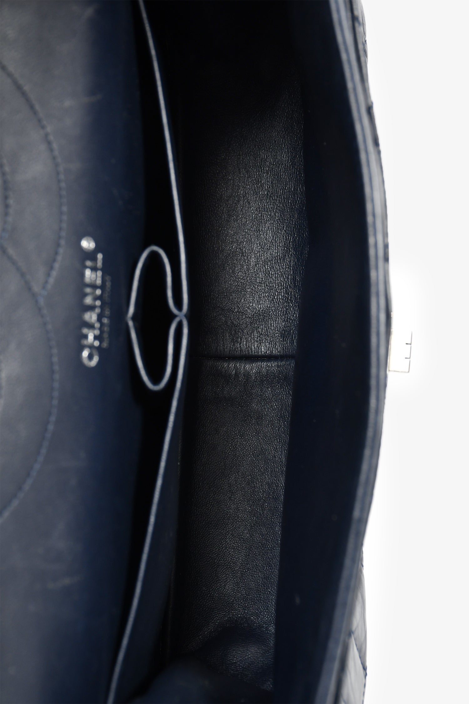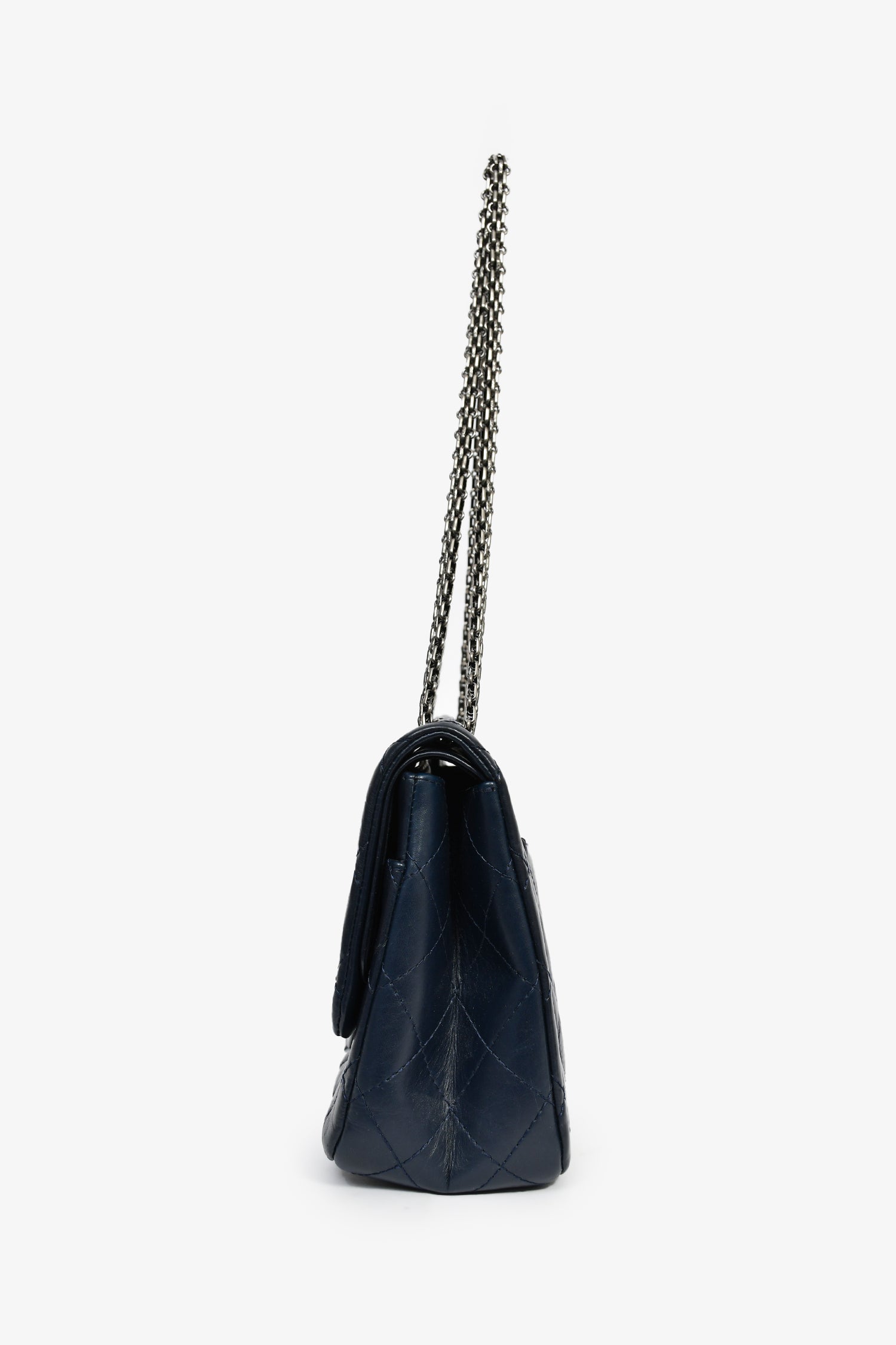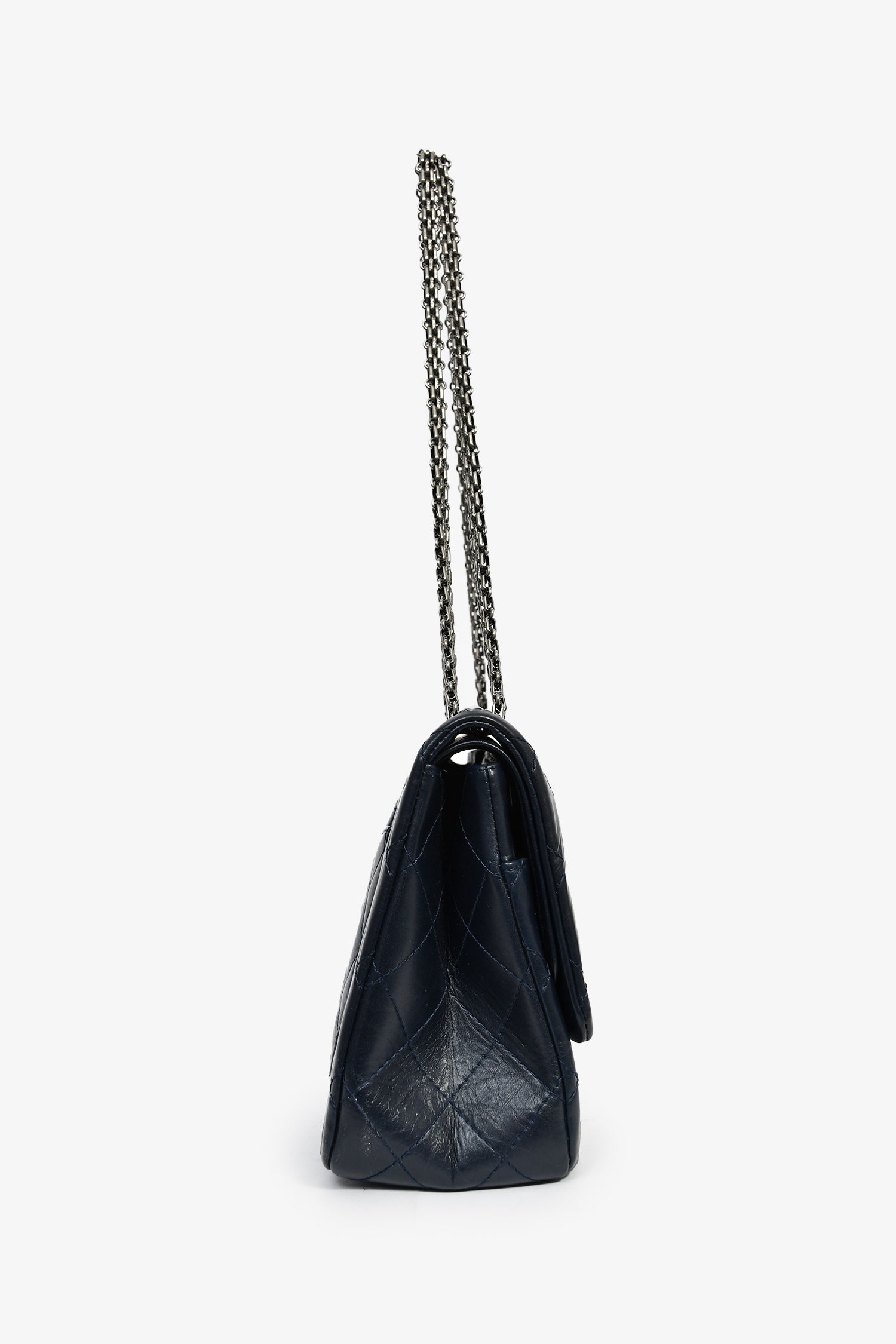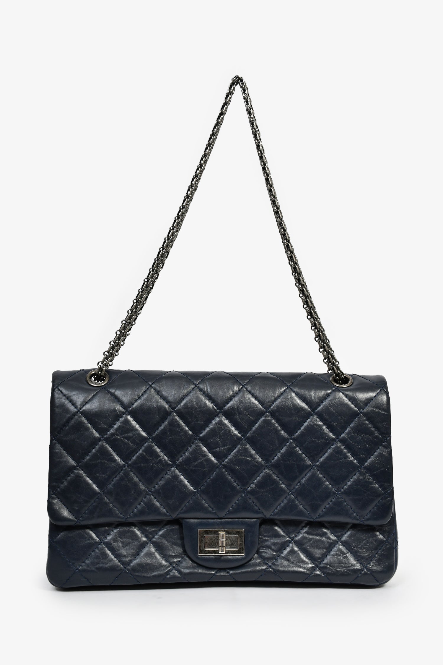 Refresh availabilityPre-Loved Chanel™ 2011-12 Navy Quilted Lambskin 227 Maxi Reissue Flap Shoulder Bag. Dual front fold-over flaps with a turn-lock closure. 2 interior compartments with 2 slip pockets. Chain-link shoulder strap. Gunmetal-tone hardware. Tonal stitching.