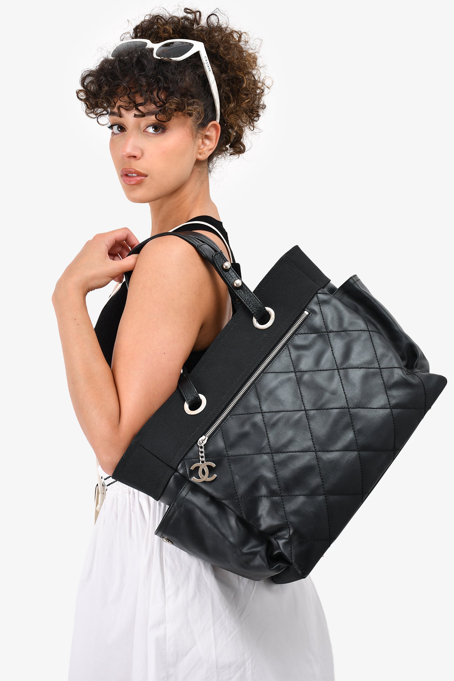 Pre-Loved Chanel™ 2012 Black Leather/Canvas 'Paris Biarritz' Tote Bag