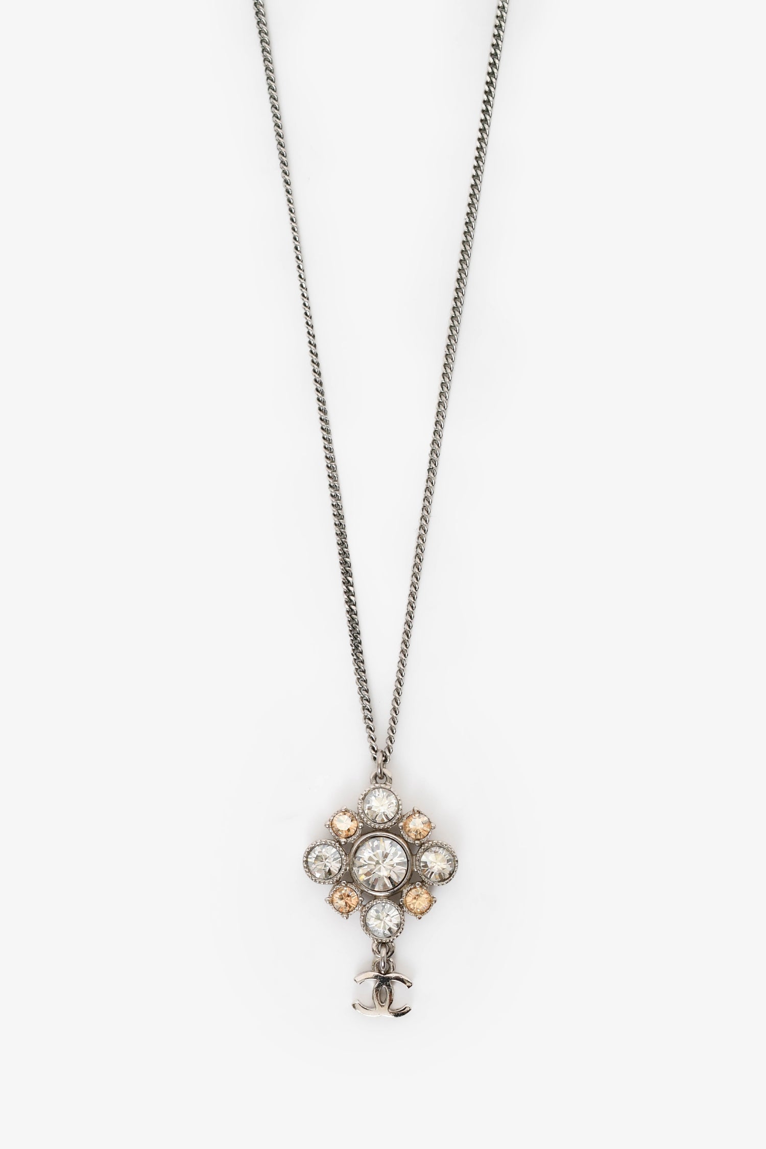 Refresh availabilityPre-Loved Chanel™ 2012 Silver Toned Crystal Drop CC Pendant Necklace. Lobster clasp closure.