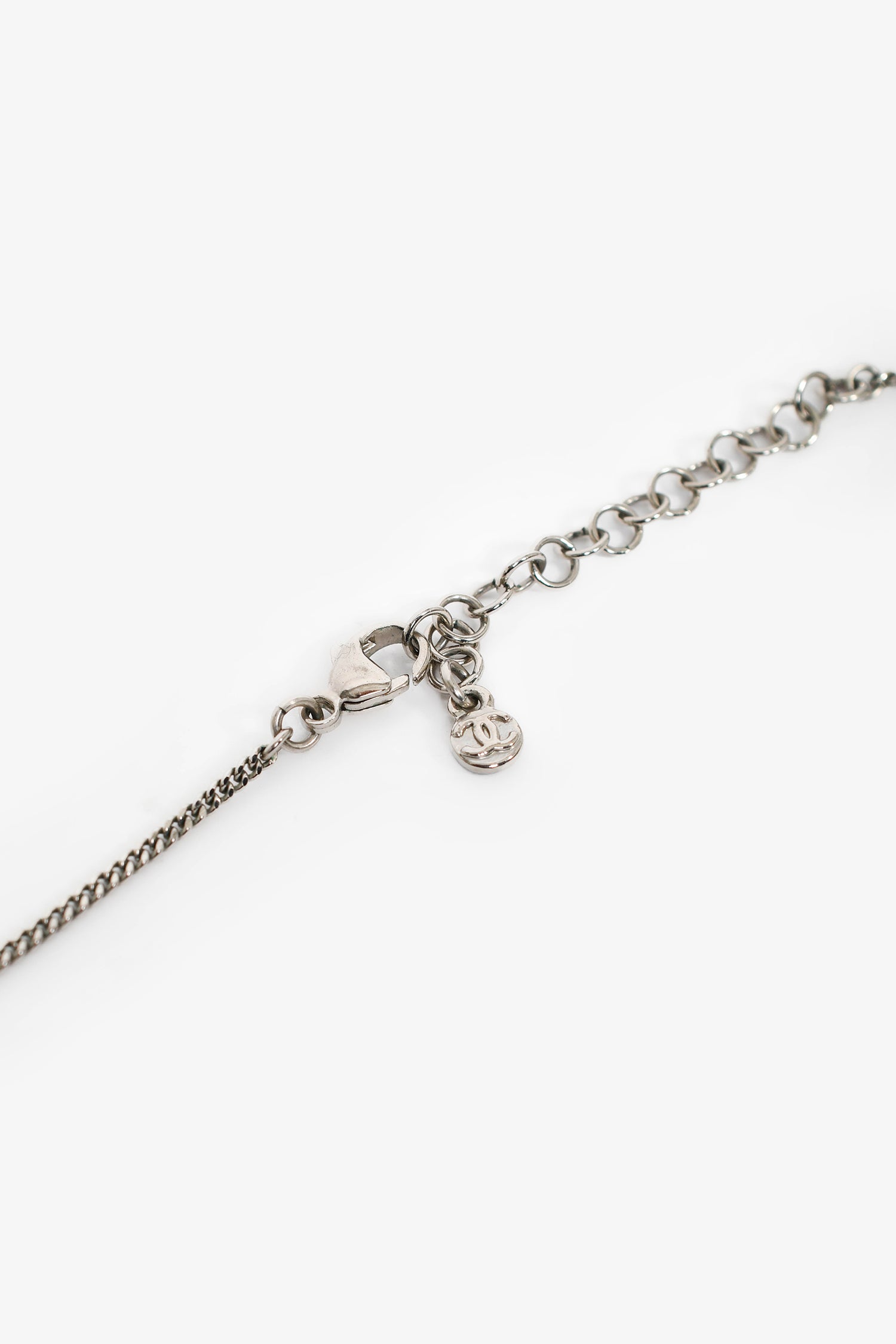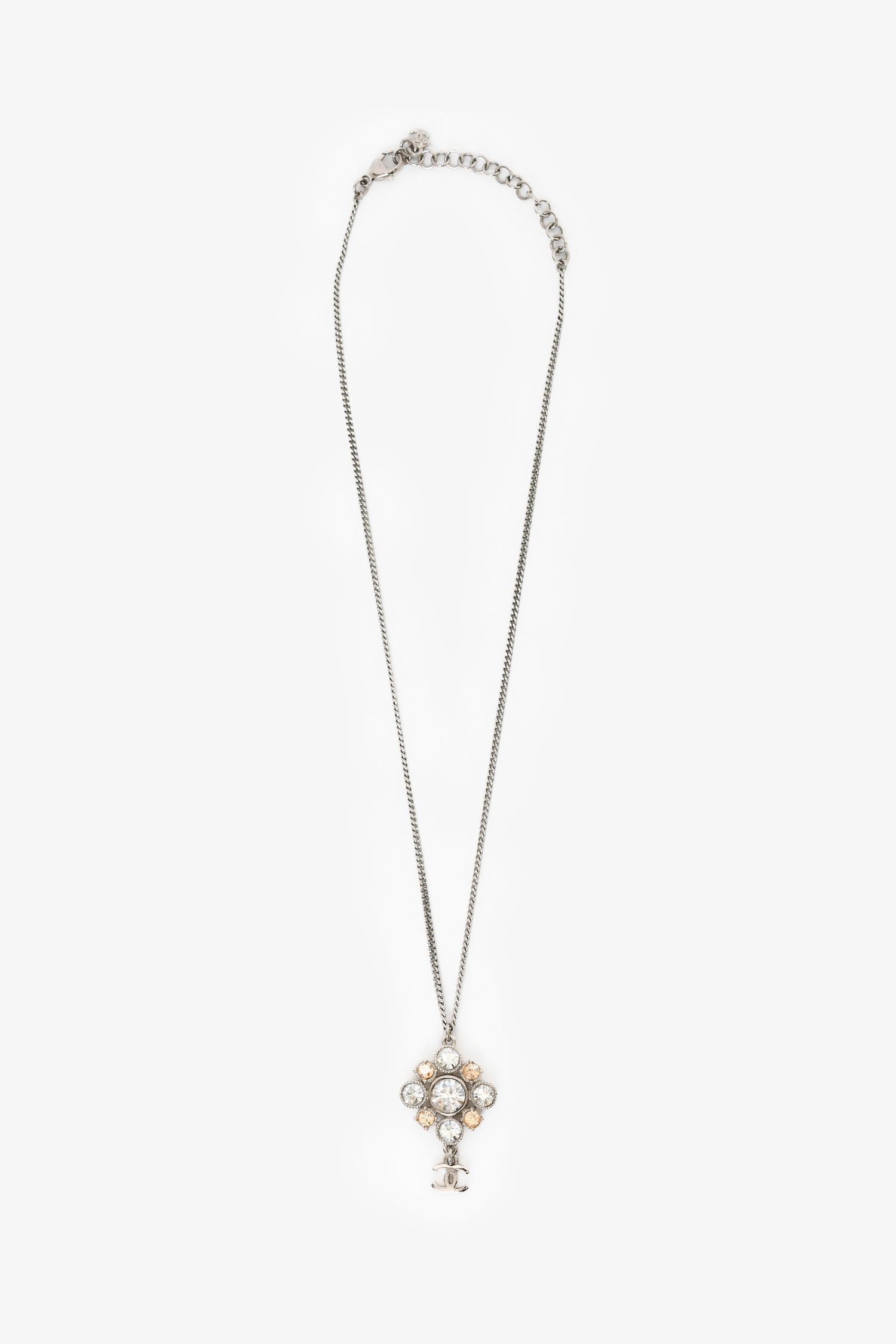 Pre-Loved Chanel™ 2012 Silver Toned Crystal Drop CC Pendant Necklace