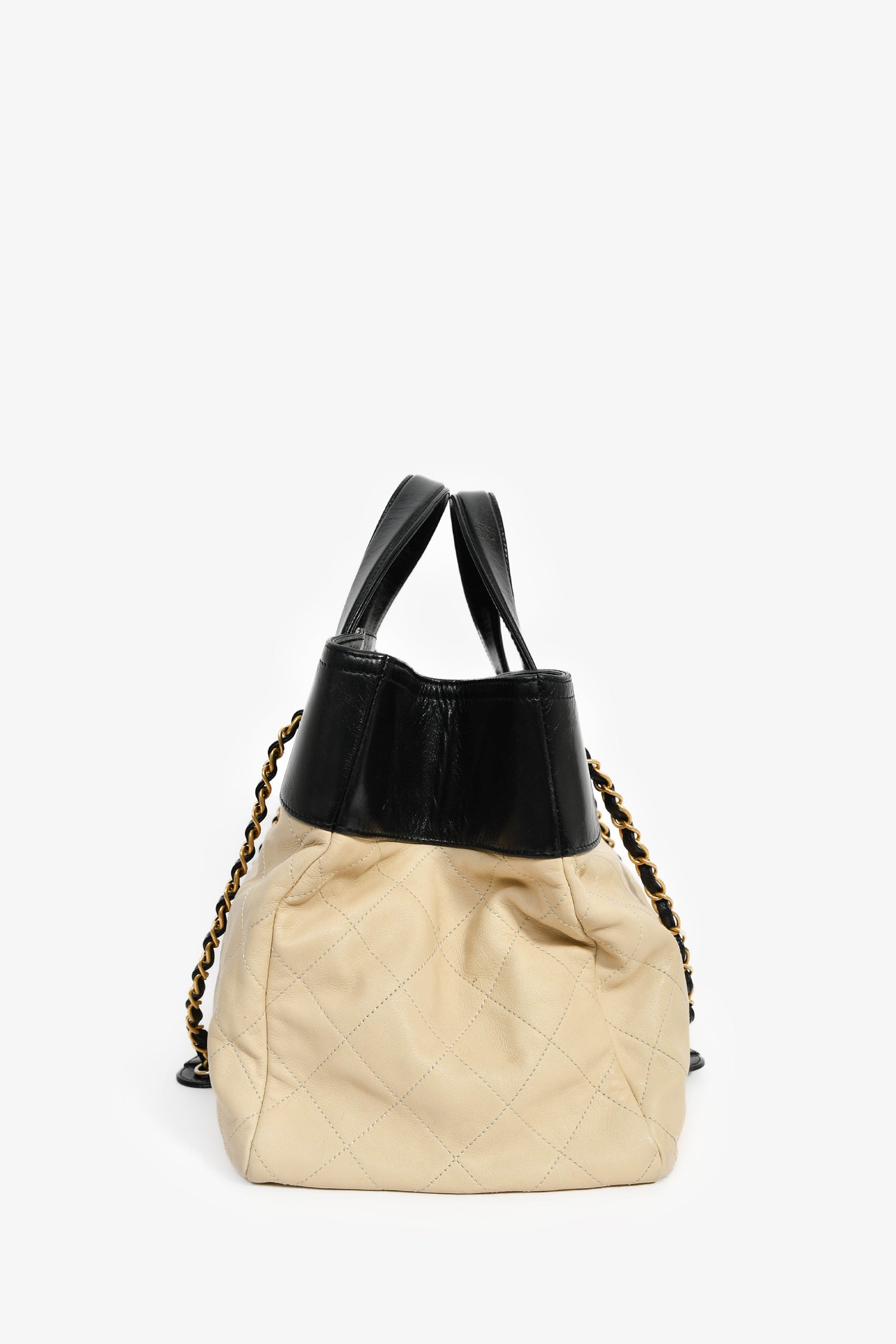 Pre-Loved Chanel™ 2012/13 Cream/Black Quilted Calfskin In The Mix Tote Bag