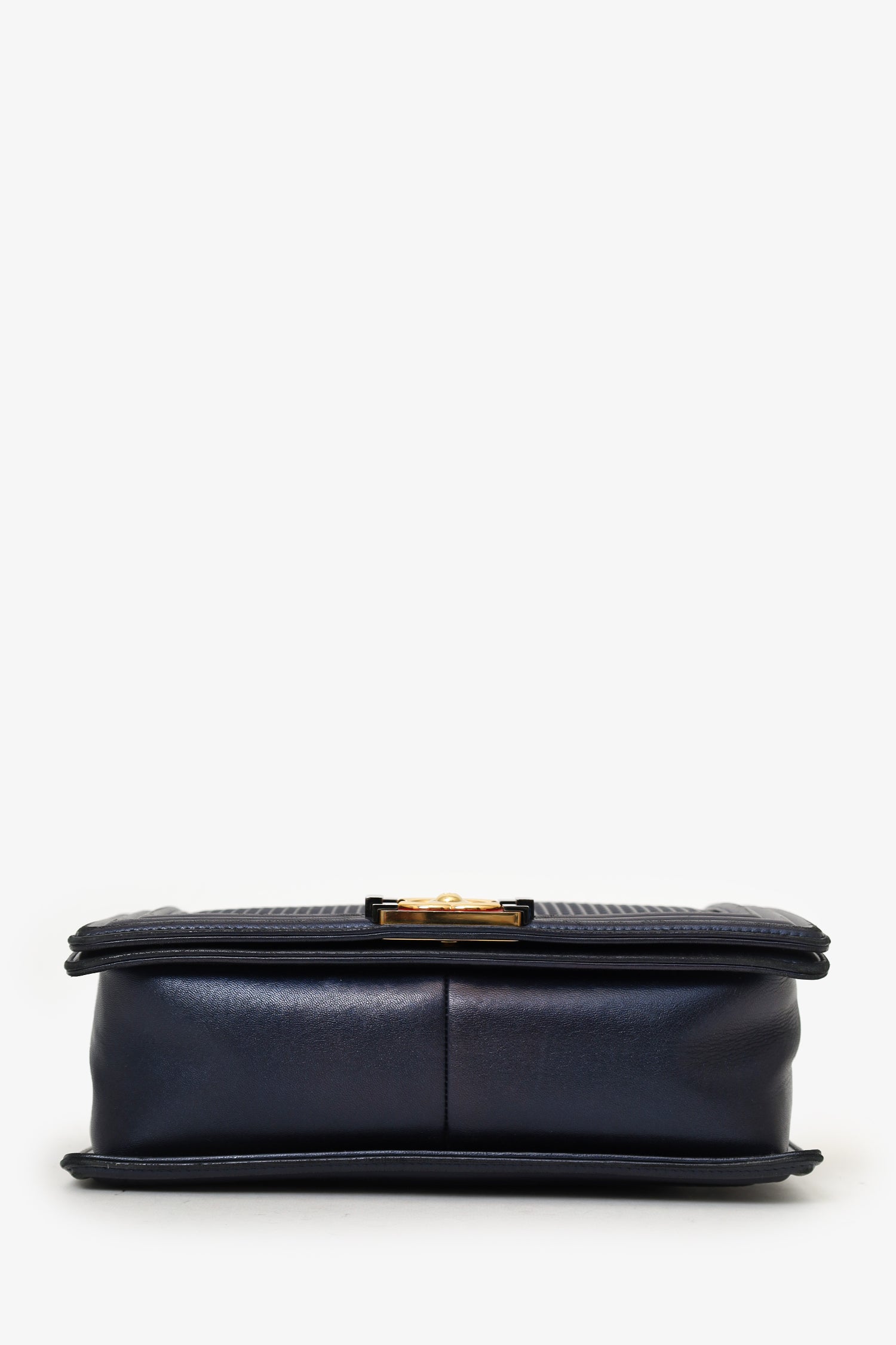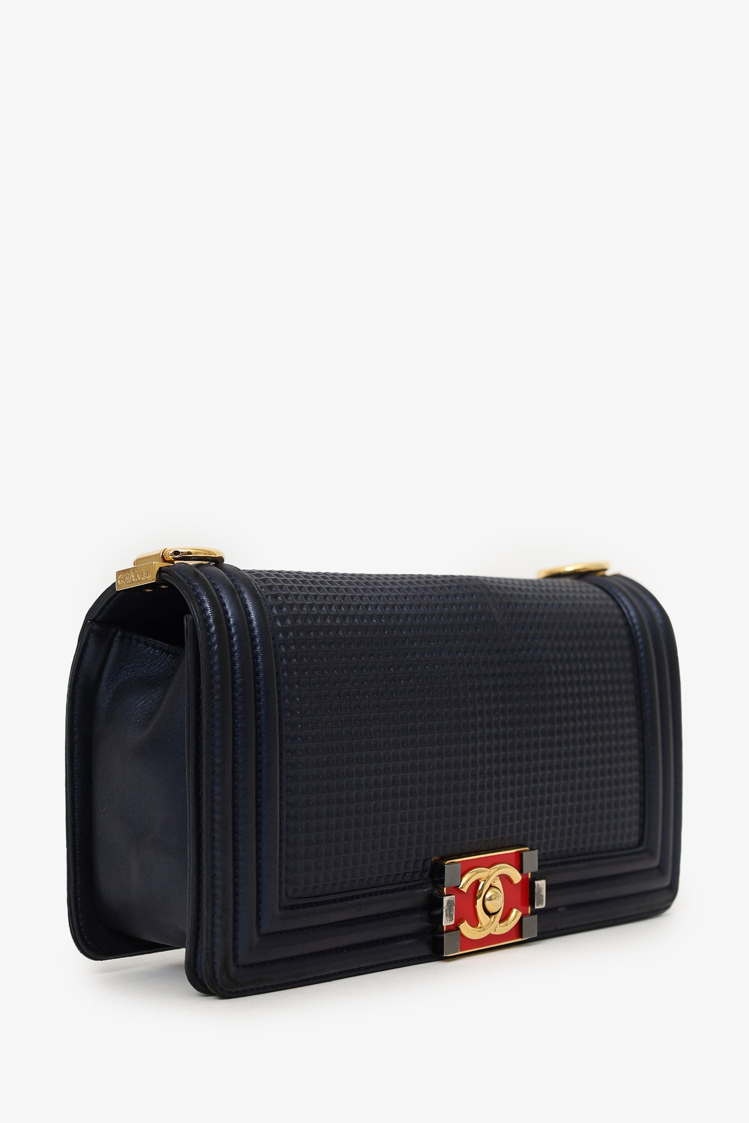 Pre-Loved Chanel™ 2013-14 Navy Lambskin Embossed Medium Cube Boy Shoulder Bag