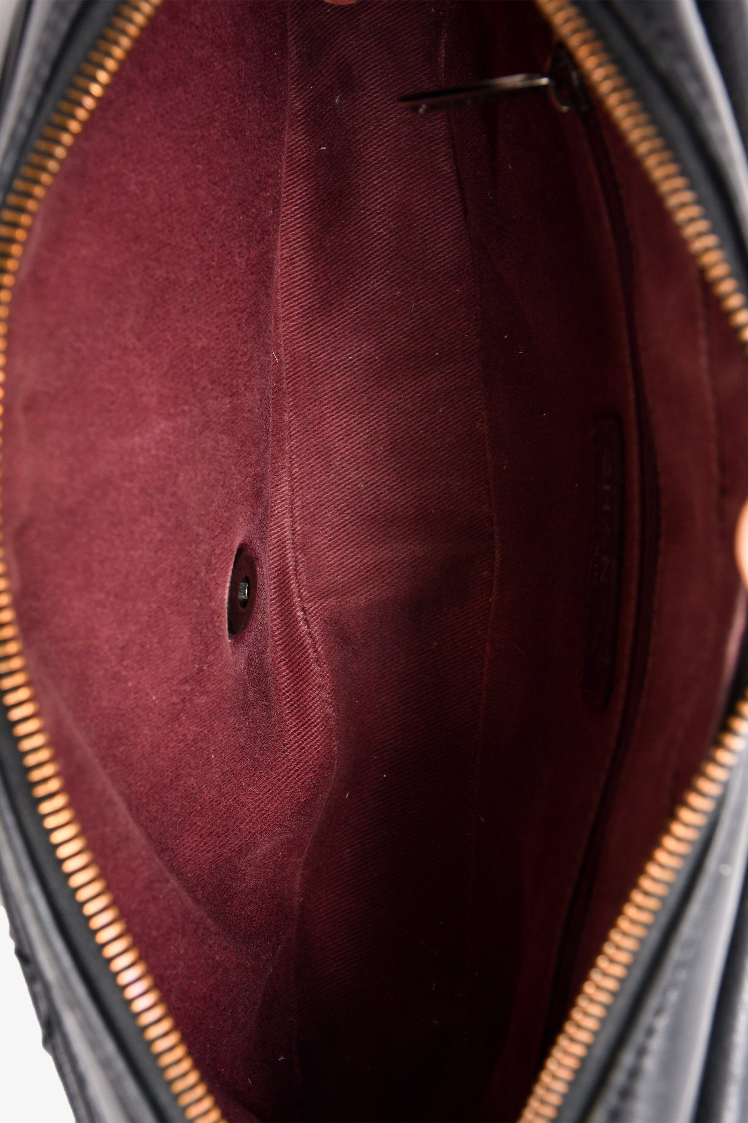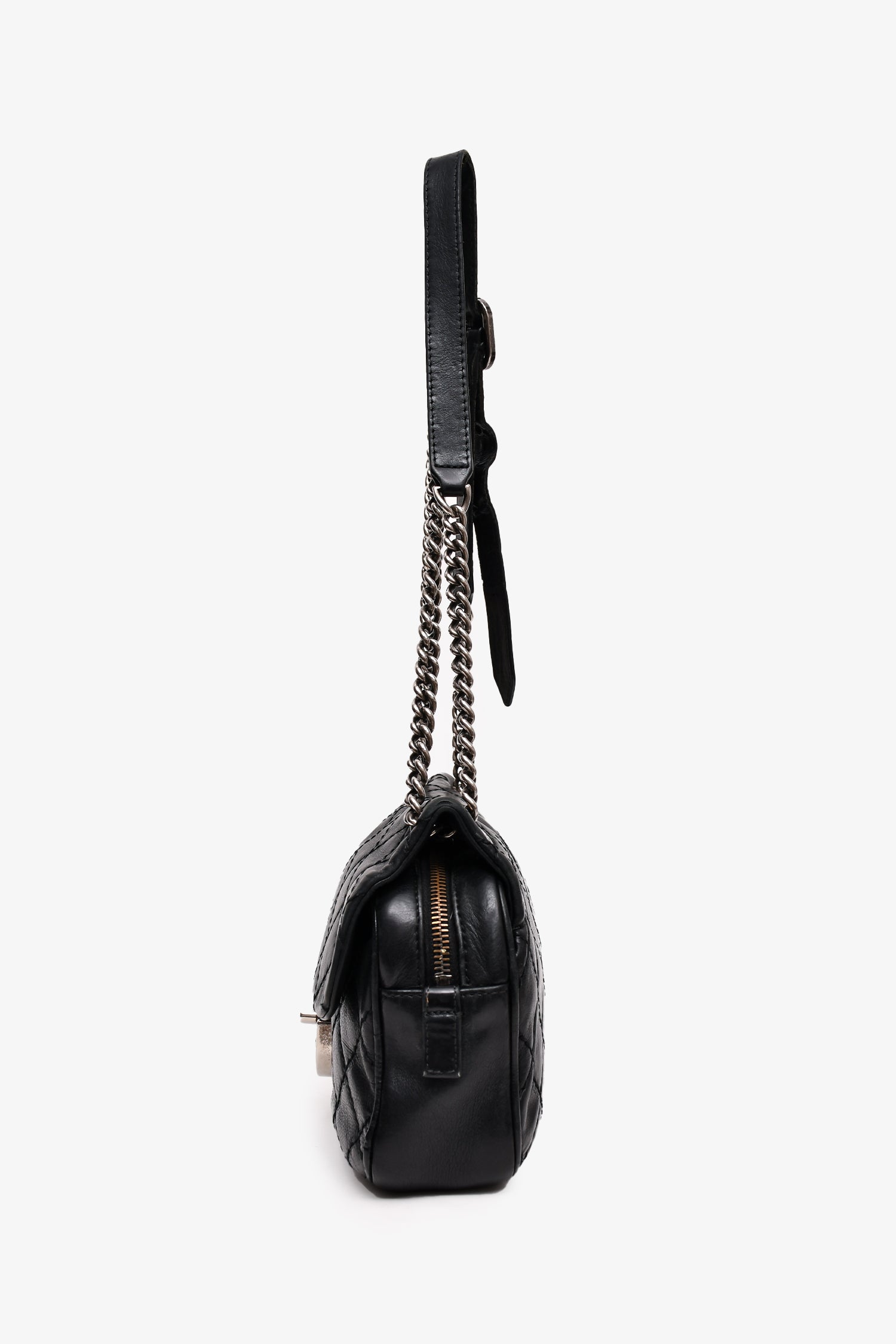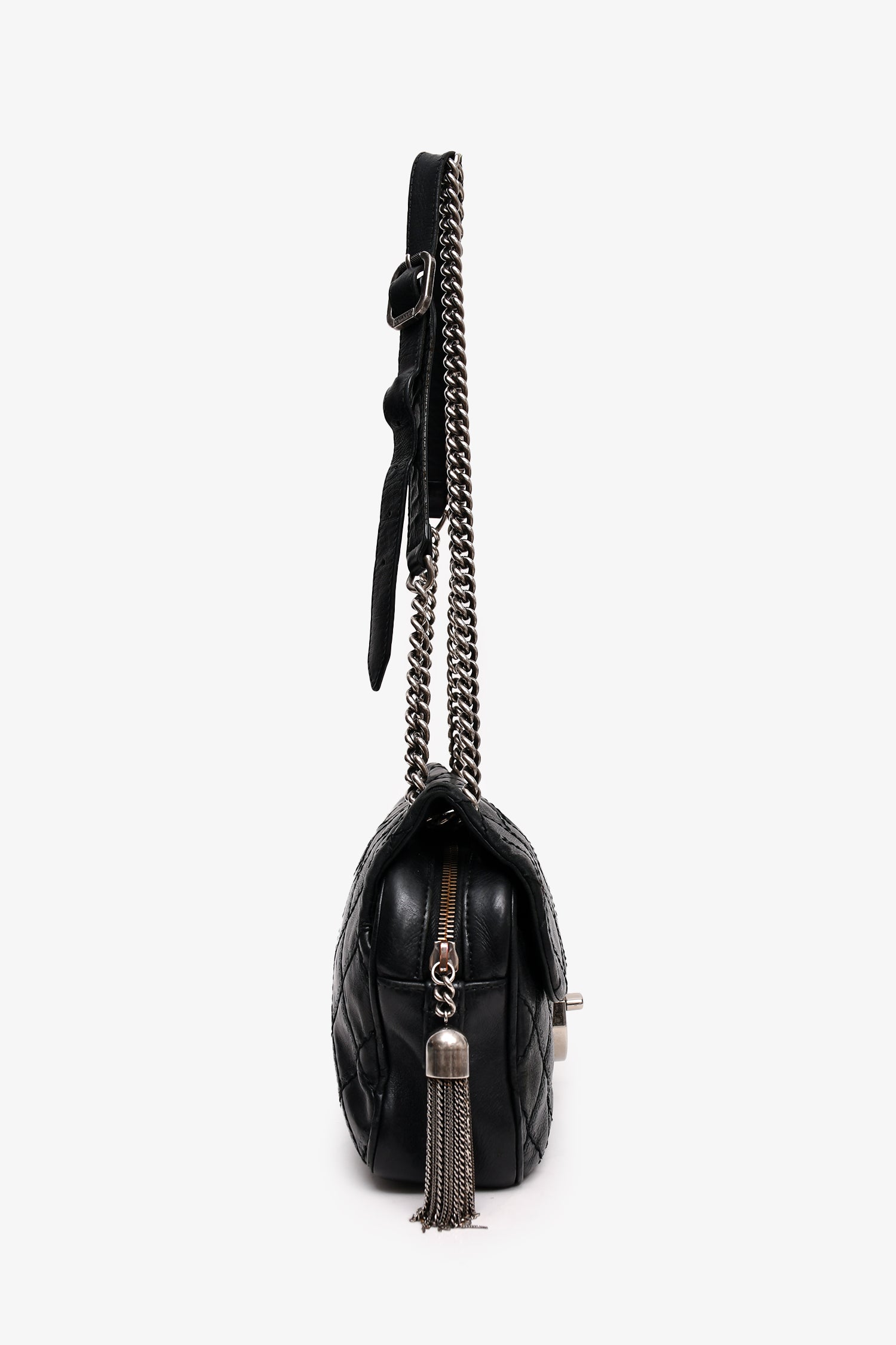 Refresh availabilityPre-Loved Chanel™ 2013 Black Lambskin Paris-Edinburgh Coco Sporran Medium Flap Bag. Fold-over flap with a turn-lock closure. Antiqued hardware. Chain-link crossbody strap with leather detailing. Top zipper. Lined interior with a zipped compartment. Tonal stitching.