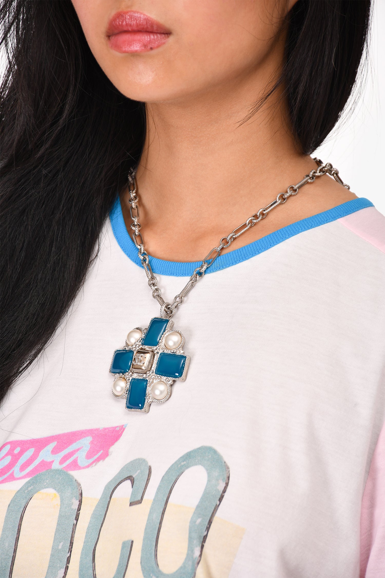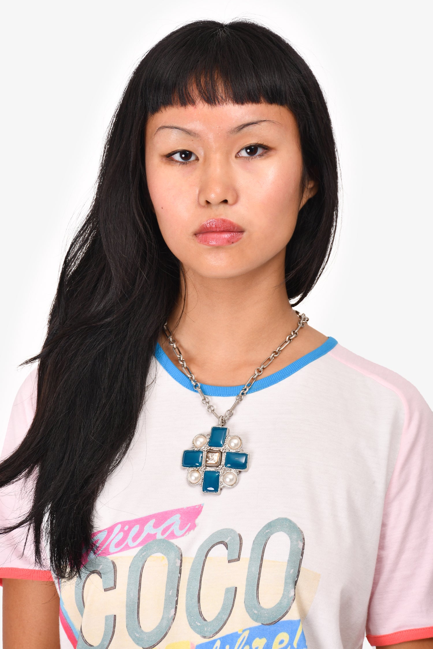 Refresh availabilityPre-Loved Chanel™ 2013 Silver-Tone Blue Faux Pearl Pendant Necklace. Lobster clasp closure.