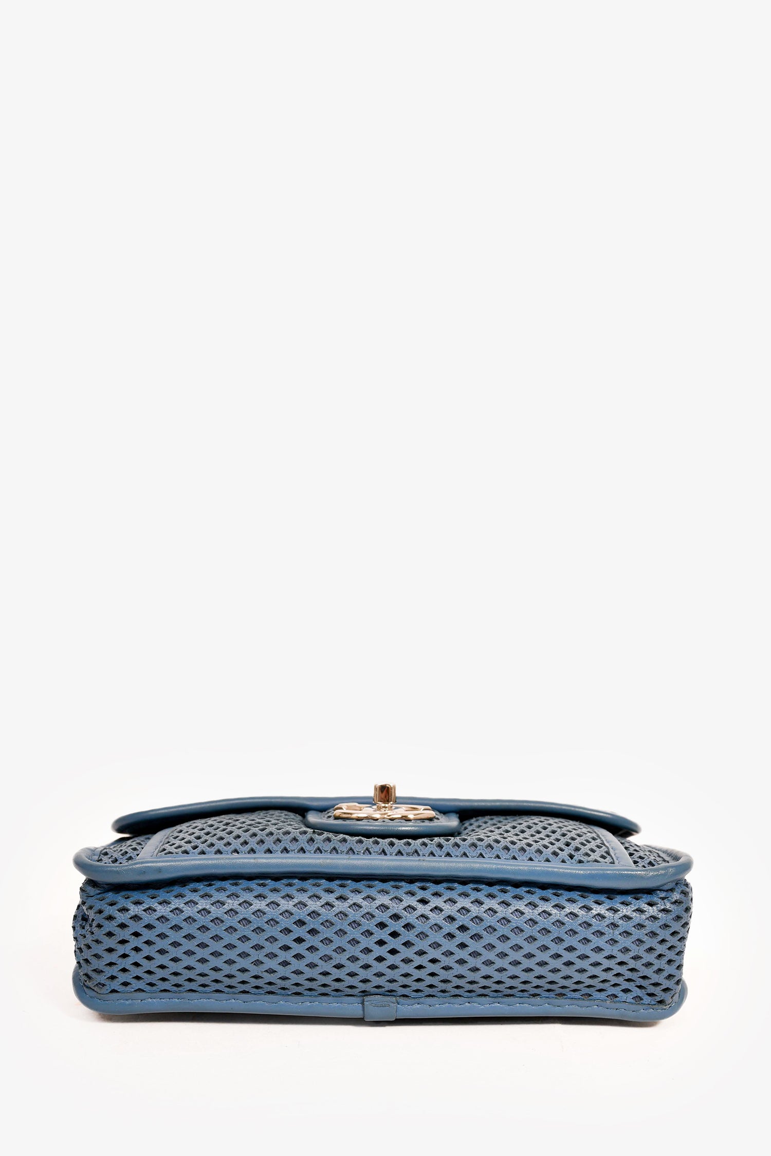 Pre-Loved Chanel™ 2013C Blue Perforated 'Up In The Air' Small Front Flap Crossbody