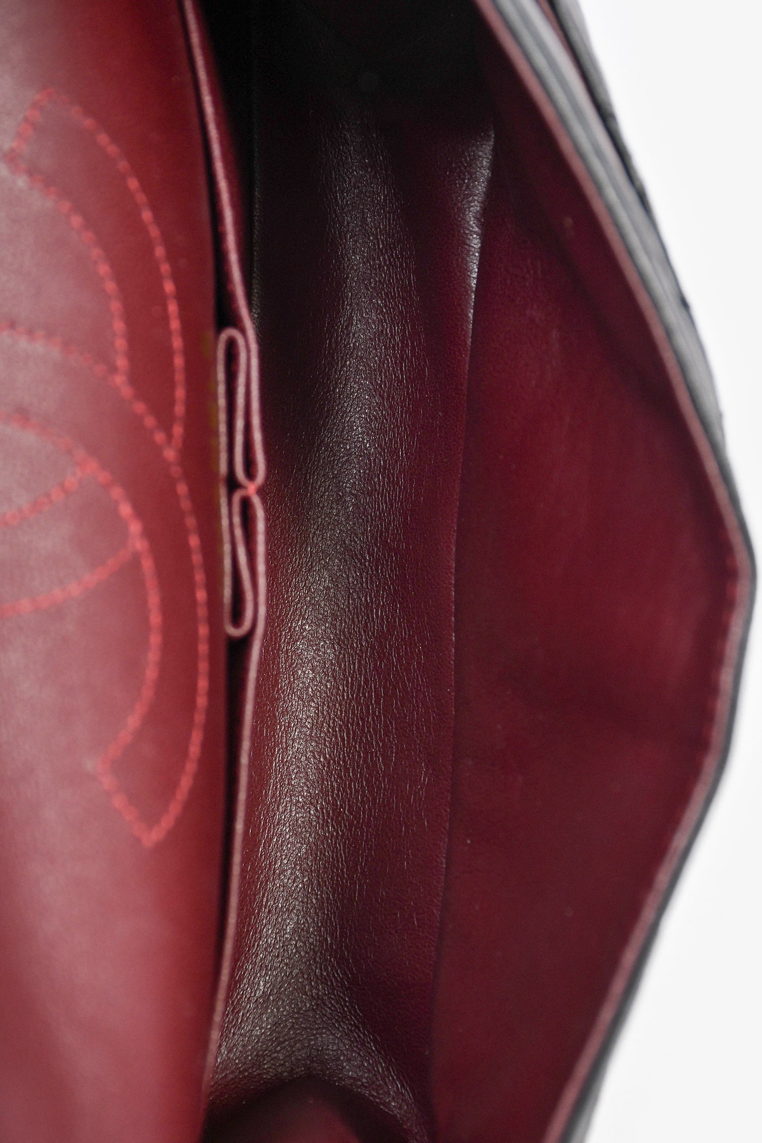 Refresh availabilityPre-Loved Chanel™ 2014 Black Quilted Lambskin Reissue 225 Shoulder Bag. Front fold-over flap with turn-lock closure. Exterior rear slip pocket. Slide-around chain. Burgundy leather interior. Main compartment with interior front fold-over flap and snap-button closure. 2 interior wall slip pockets. Zip pocket at the interior of the front flap. Gold-tone hardware.
