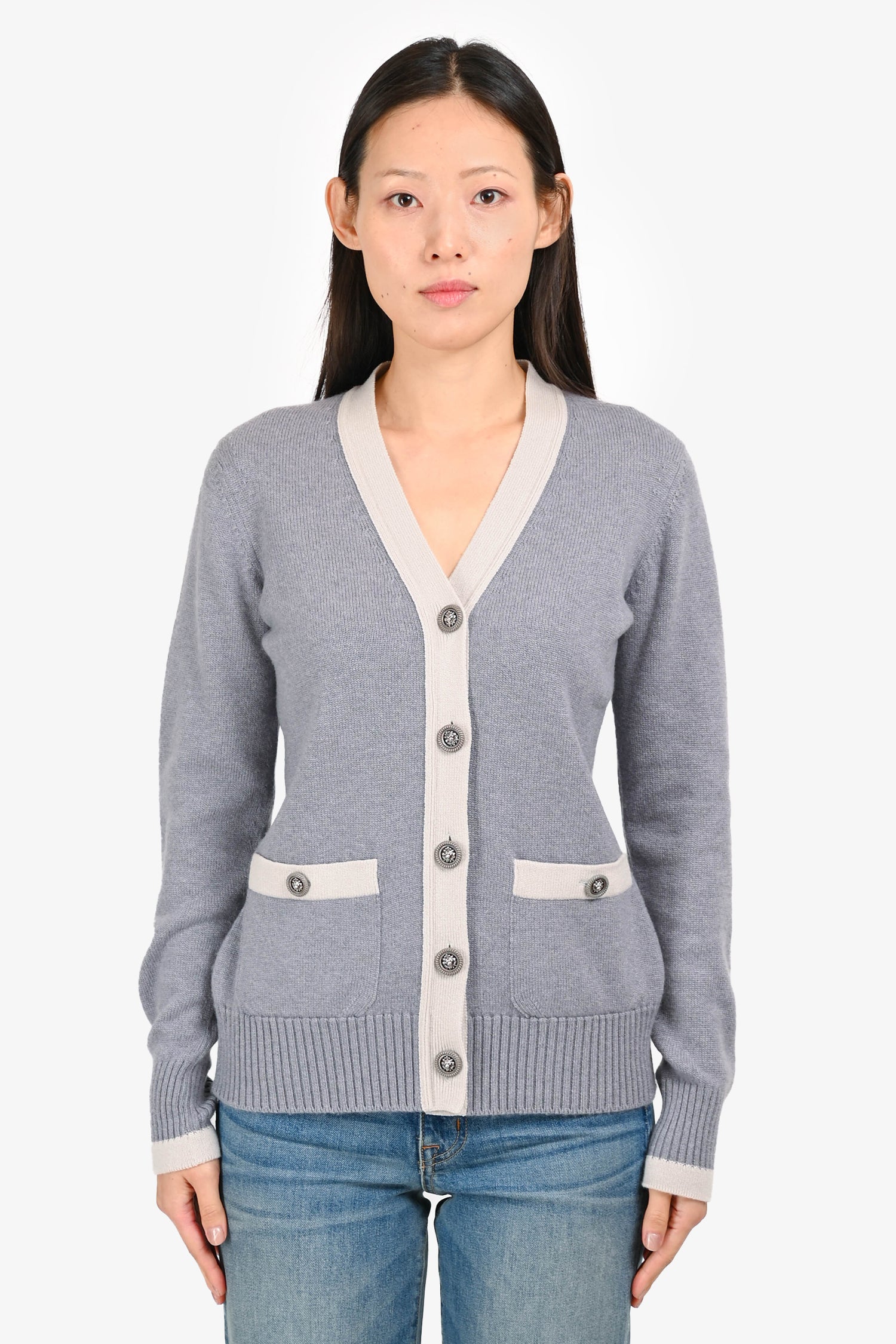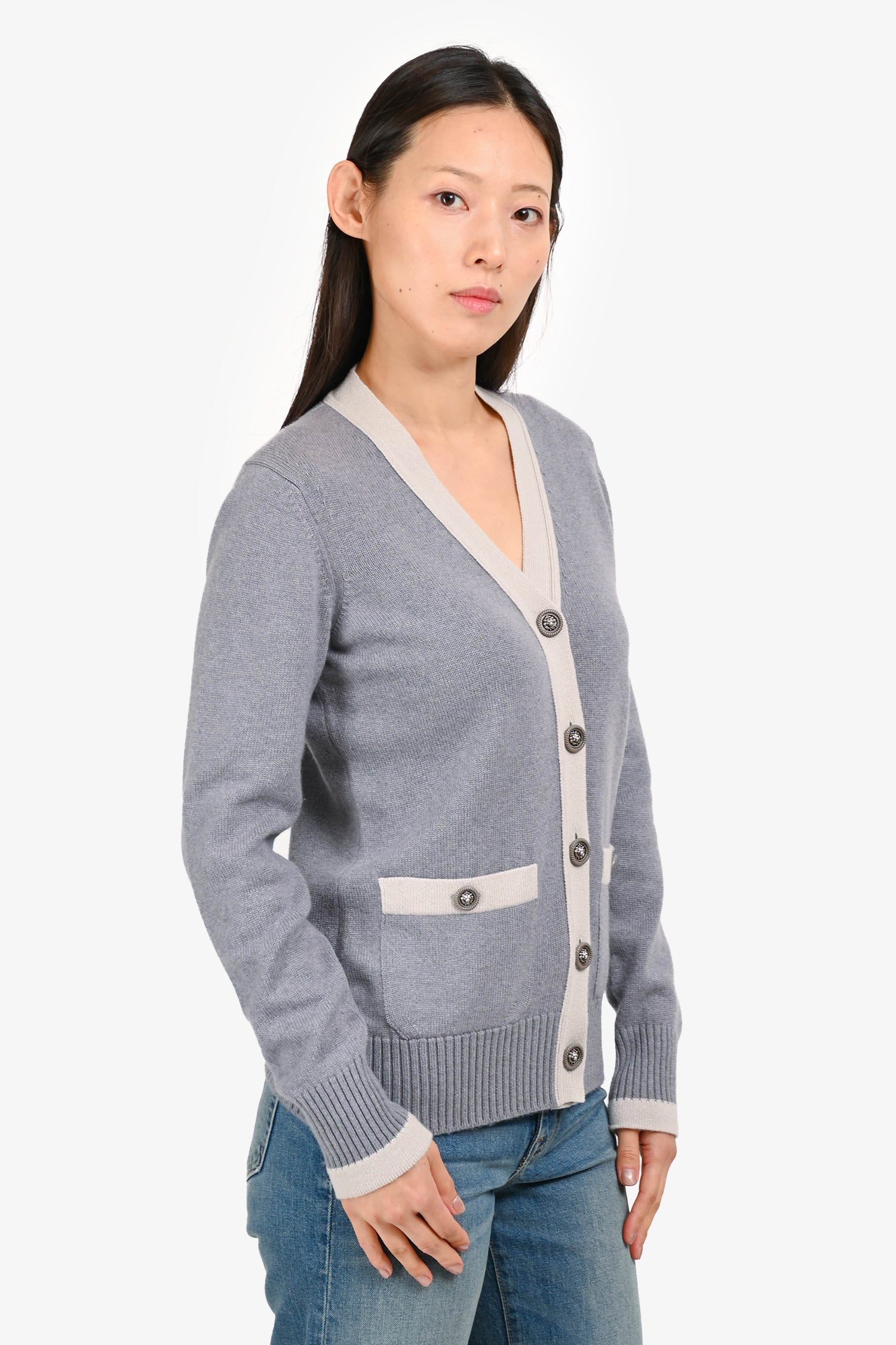 Pre-Loved Chanel™ 2014 Grey Cashmere Button Cardigan Size 36