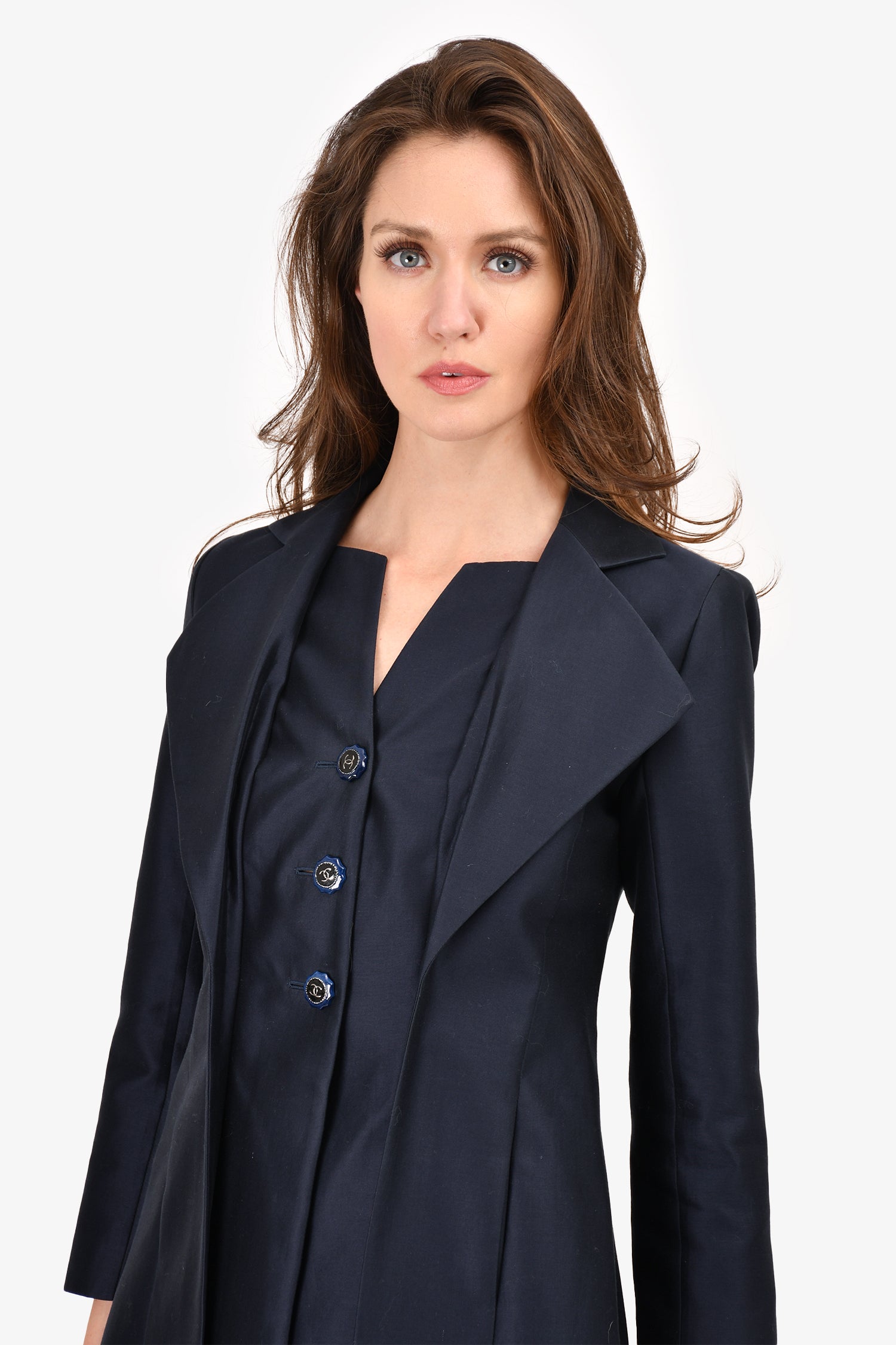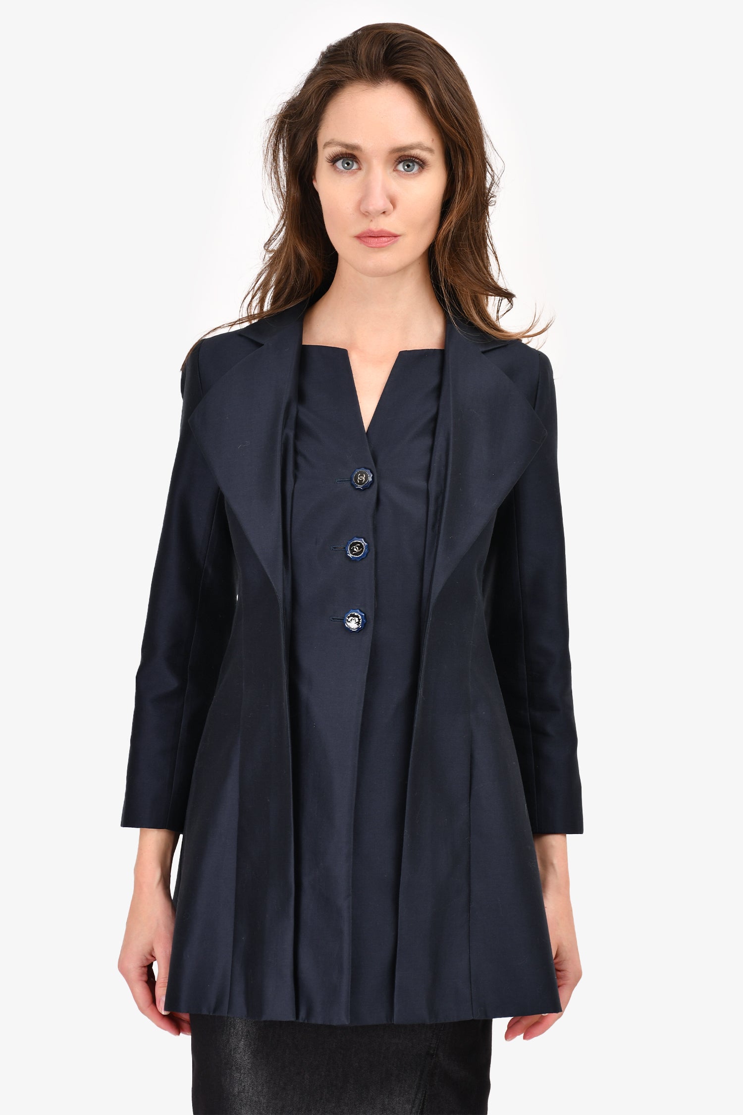 Refresh availabilityPre-Loved Chanel™ 2014 Navy Pleated Evening Jacket. Front button-up closure. Front pockets. Button closure on the cuffs. Padded shoulders. Lined.