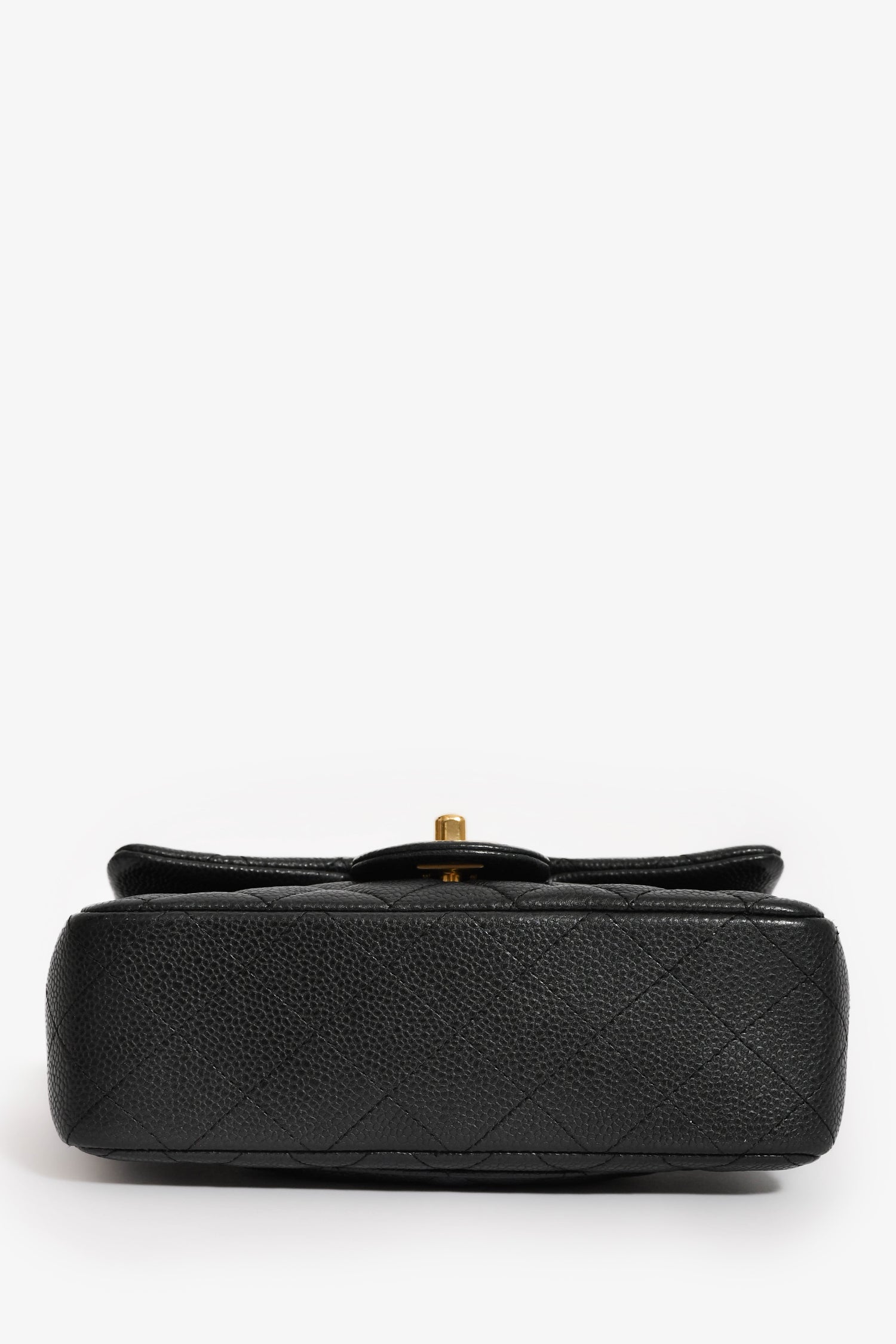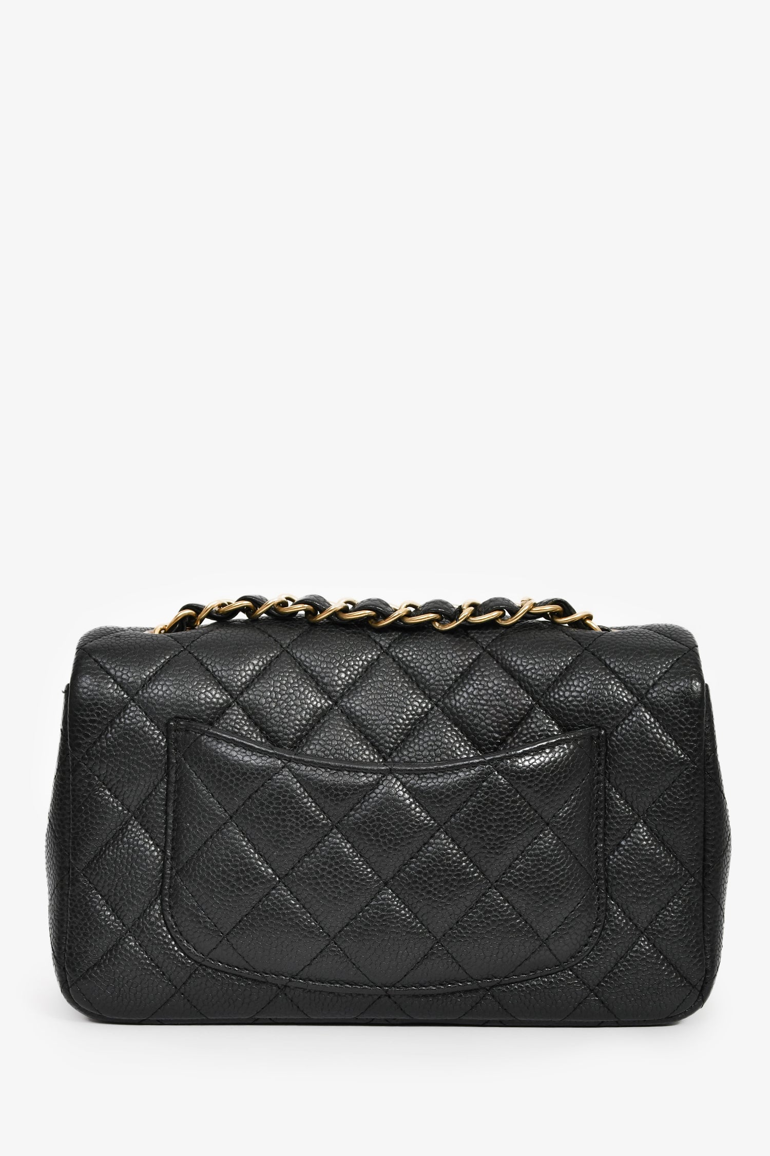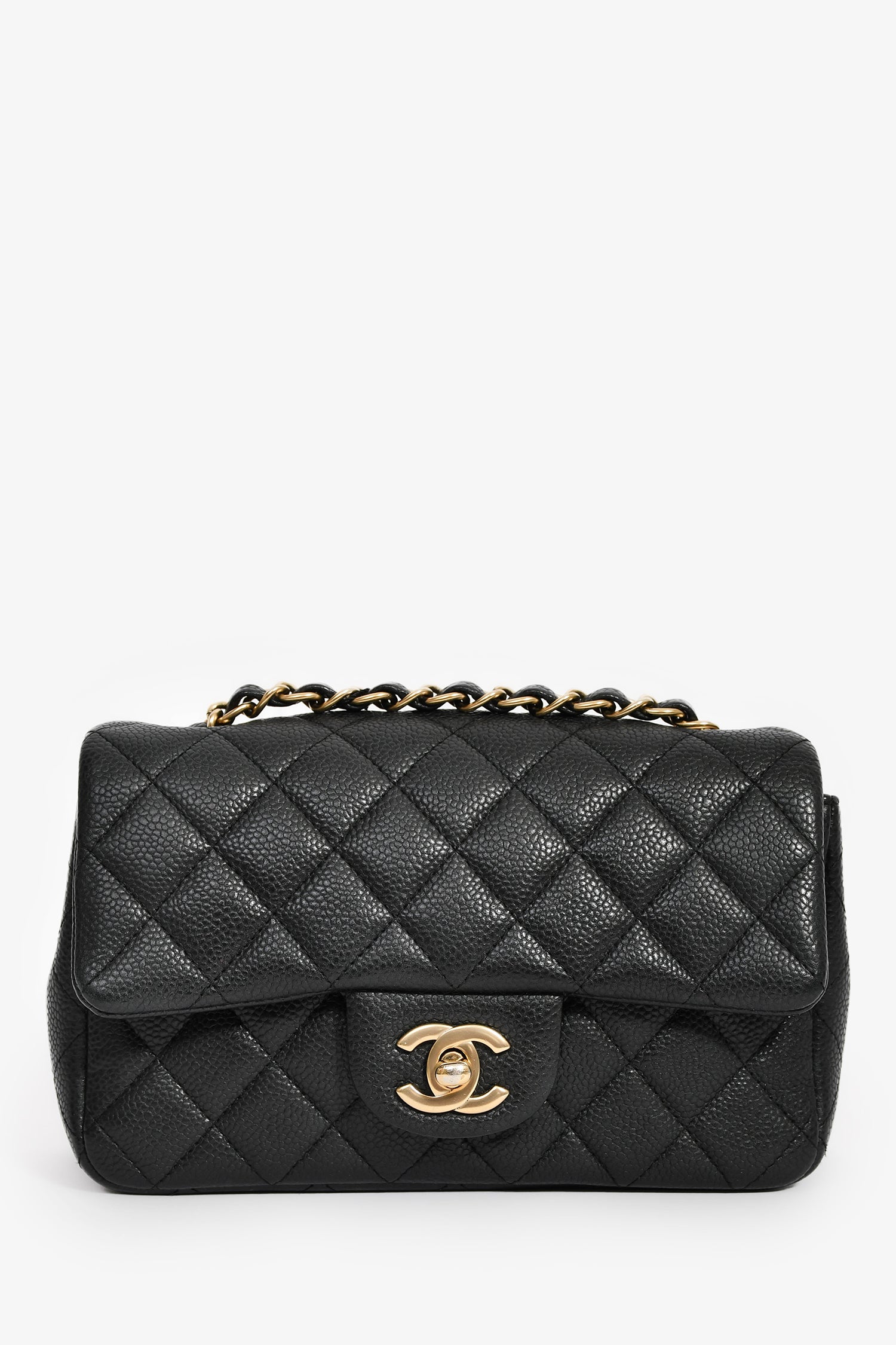 Refresh availabilityPre-Loved Chanel™ 2014/15 Black Caviar Rectangular Mini Top Handle Flap Bag. Front fold-over flap with a turn-lock closure. Chain-link shoulder strap. 2 interior pockets; 1 zip and 1 slip. Gold-tone hardware. Tonal stitching.