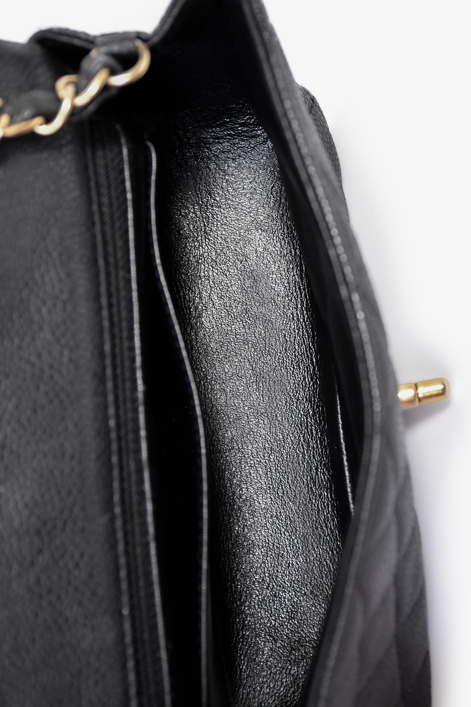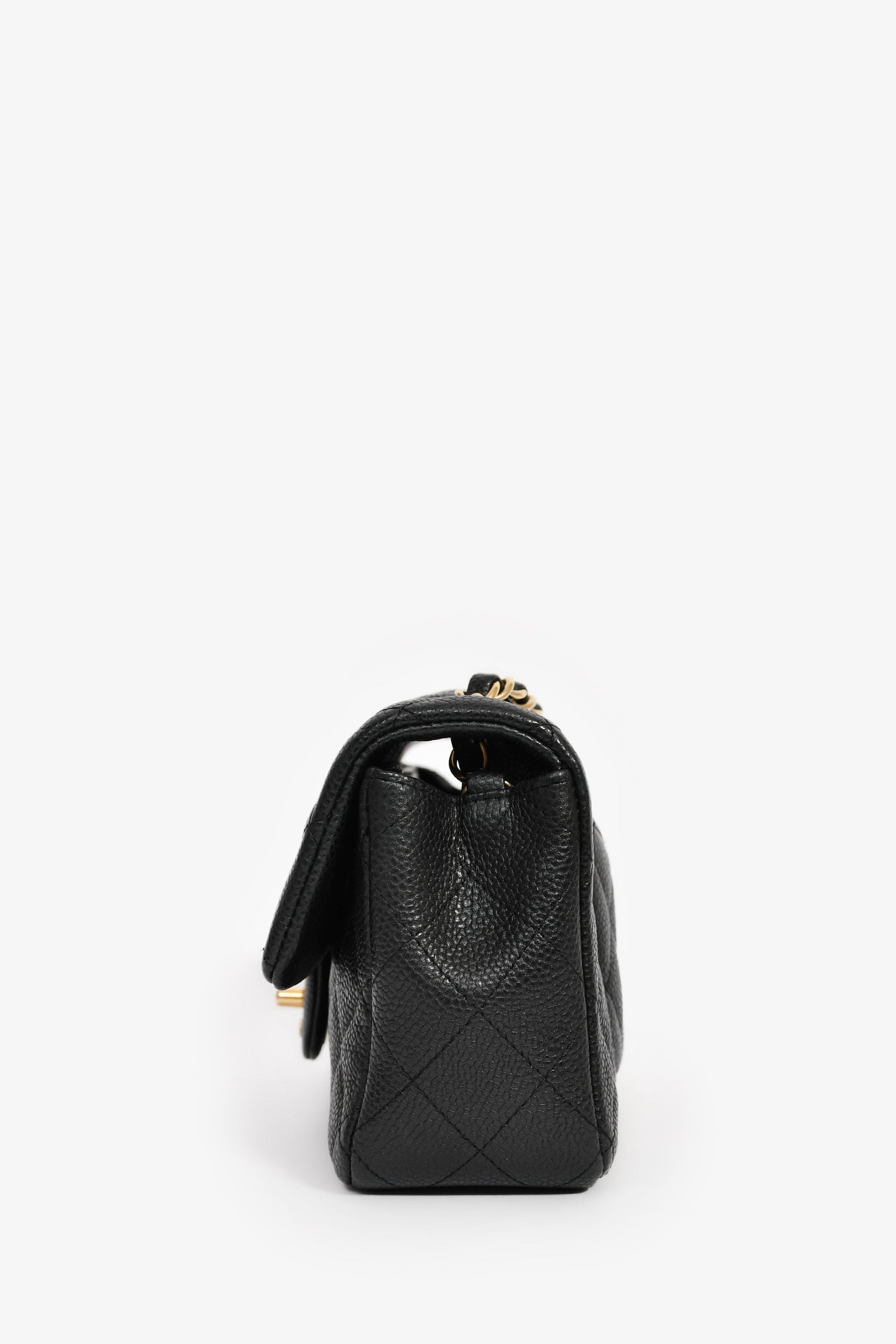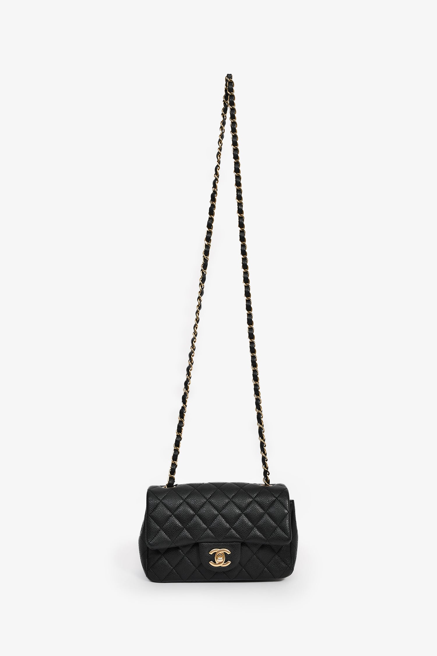 Refresh availabilityPre-Loved Chanel™ 2014/15 Black Caviar Rectangular Mini Top Handle Flap Bag. Front fold-over flap with a turn-lock closure. Chain-link shoulder strap. 2 interior pockets; 1 zip and 1 slip. Gold-tone hardware. Tonal stitching.