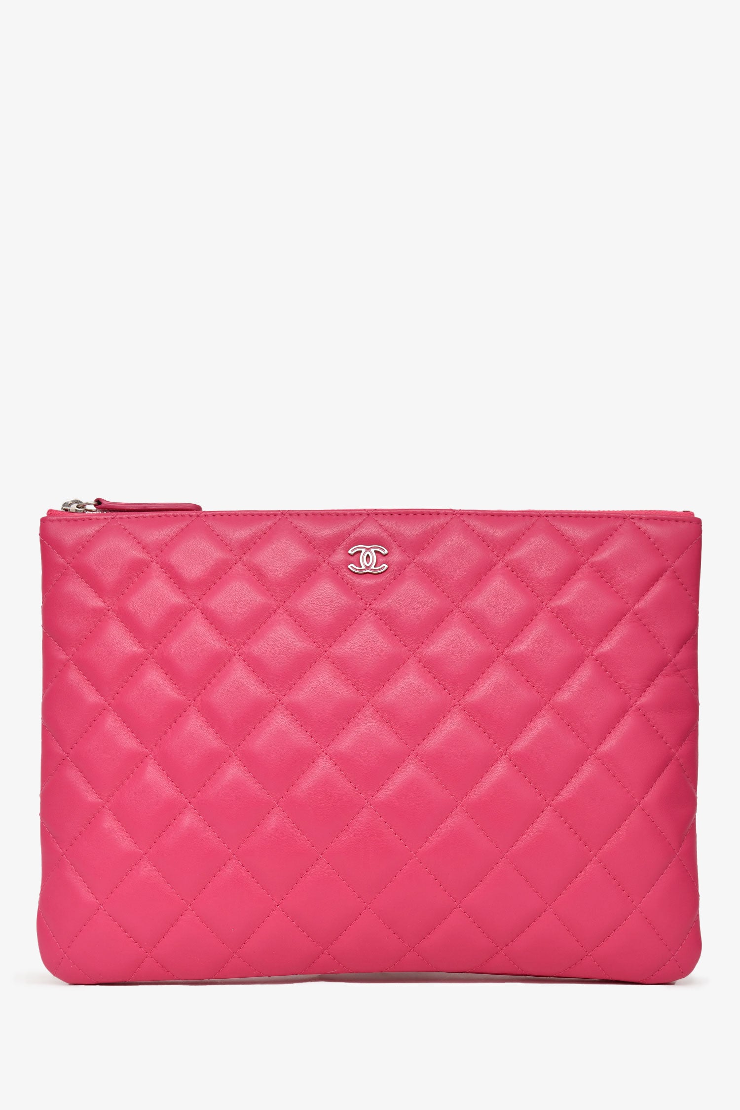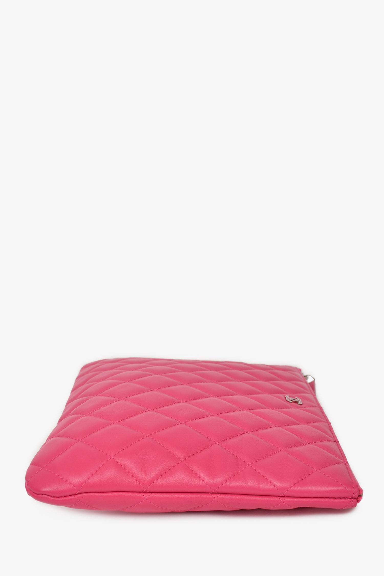 Refresh availabilityPre-Loved Chanel™ 2015-16 Pink Quilted Leather Medium Zip O Case. Top zip closure. Pink textile lining. Silver-toned hardware. Tonal stitching.