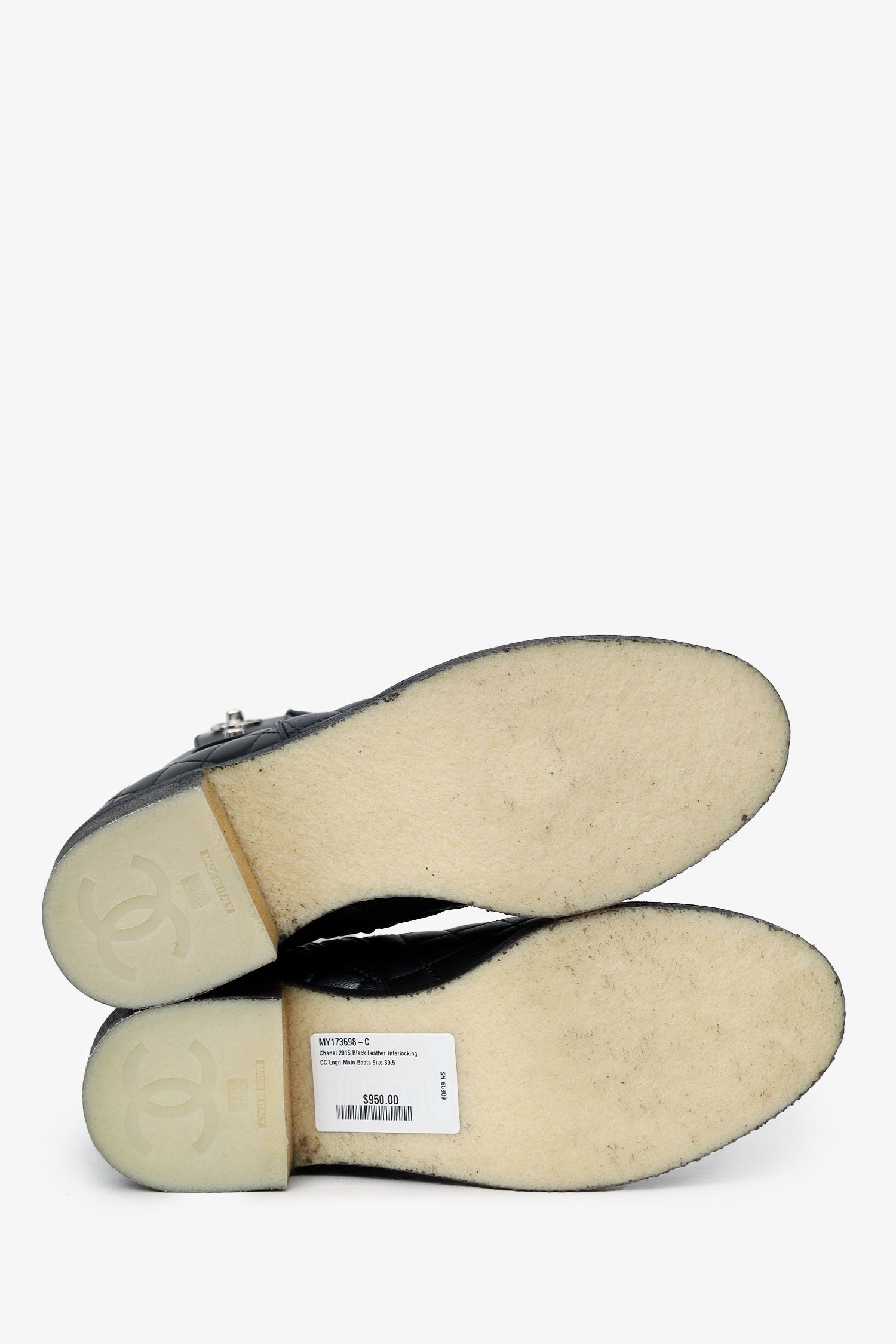 Pre-Loved Chanel™ 2015 Black Leather Interlocking CC Logo Moto Boots Size 39.5