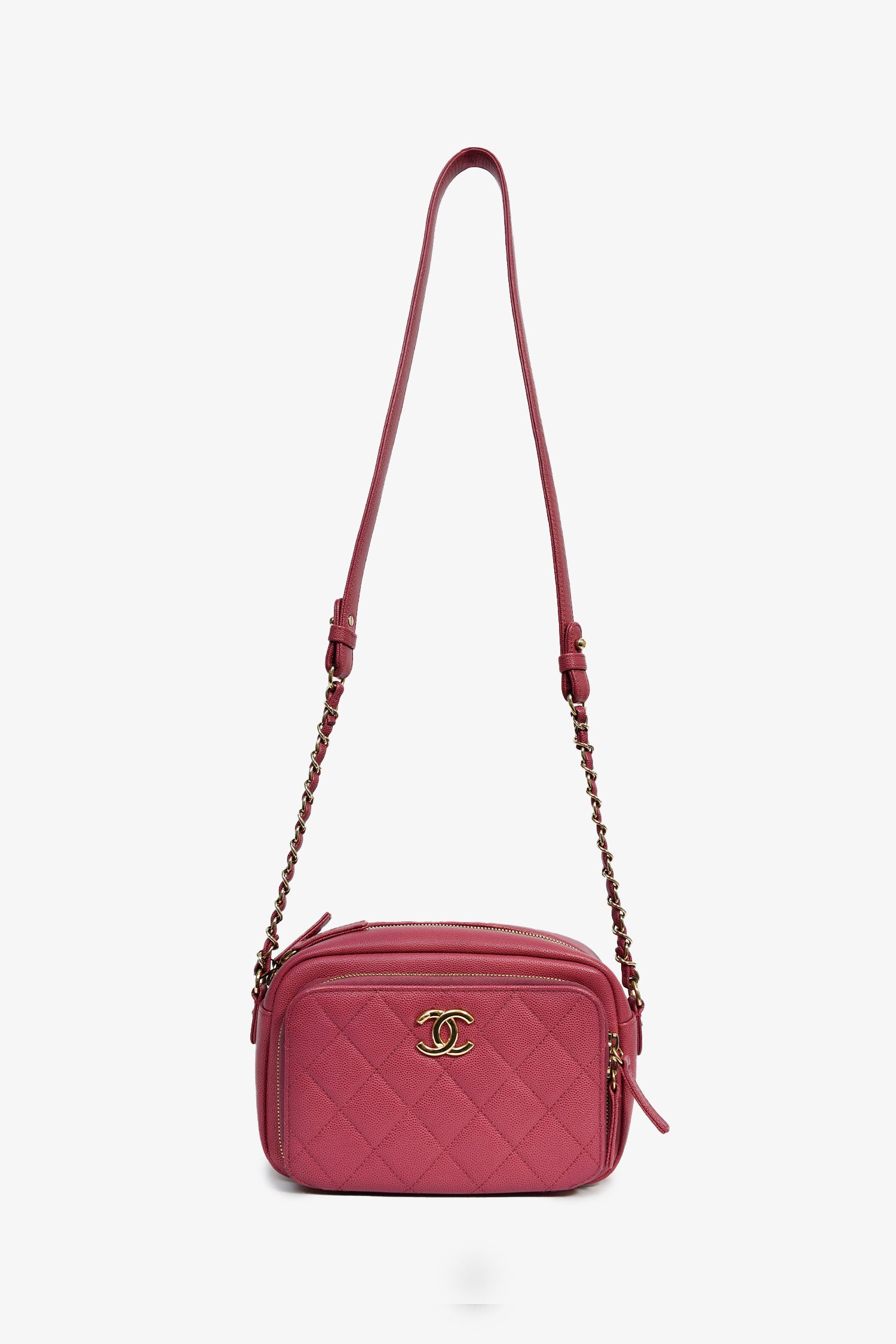 Refresh availabilityPre-Loved Chanel™ 2016 Pink Caviar Business Afinity Camera Crossbody. Gold-tone hardware. Zipped exterior. Chain-link crossbody strap. Zipped top. Lined interior with a zipped compartment and 1 slip pocket. Tonal stitching.