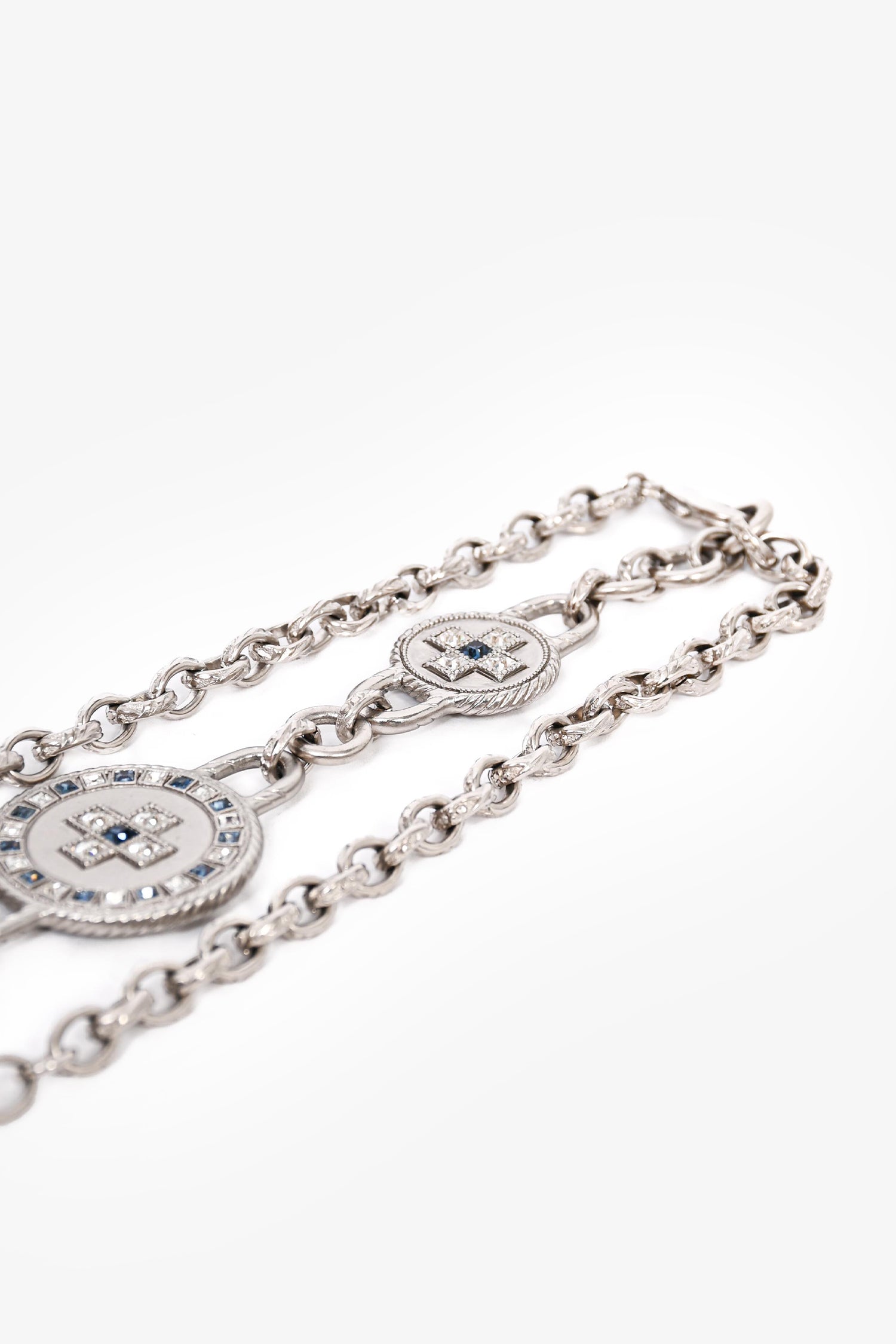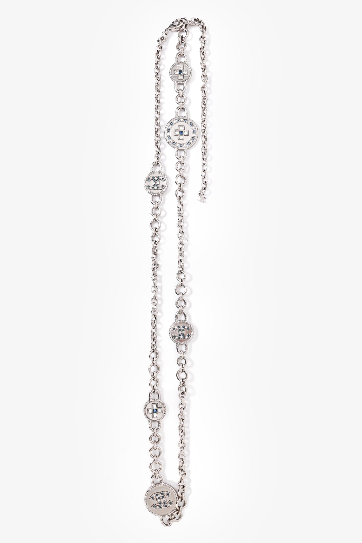 Pre-Loved Chanel™ 2016 Silver-Tone Blue Crystal CC Medallion Chain Belt