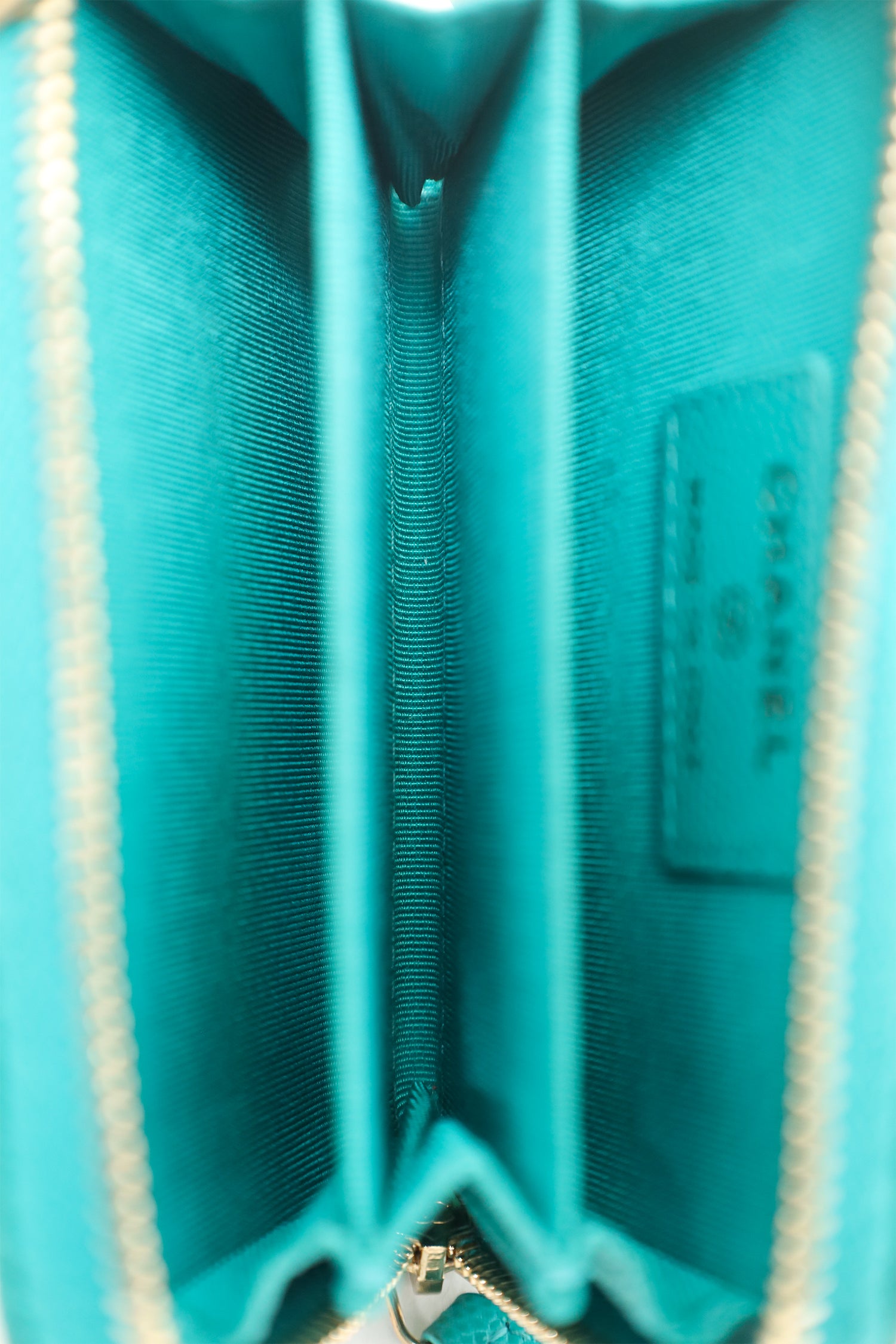 Refresh availabilityPre-Loved Chanel™ 2016-17 Blue Caviar Leather Zip Coin Pouch. Top zip closure. Lined interior with 3 slip pockets. Gold-tone hardware. Tonal stitching.