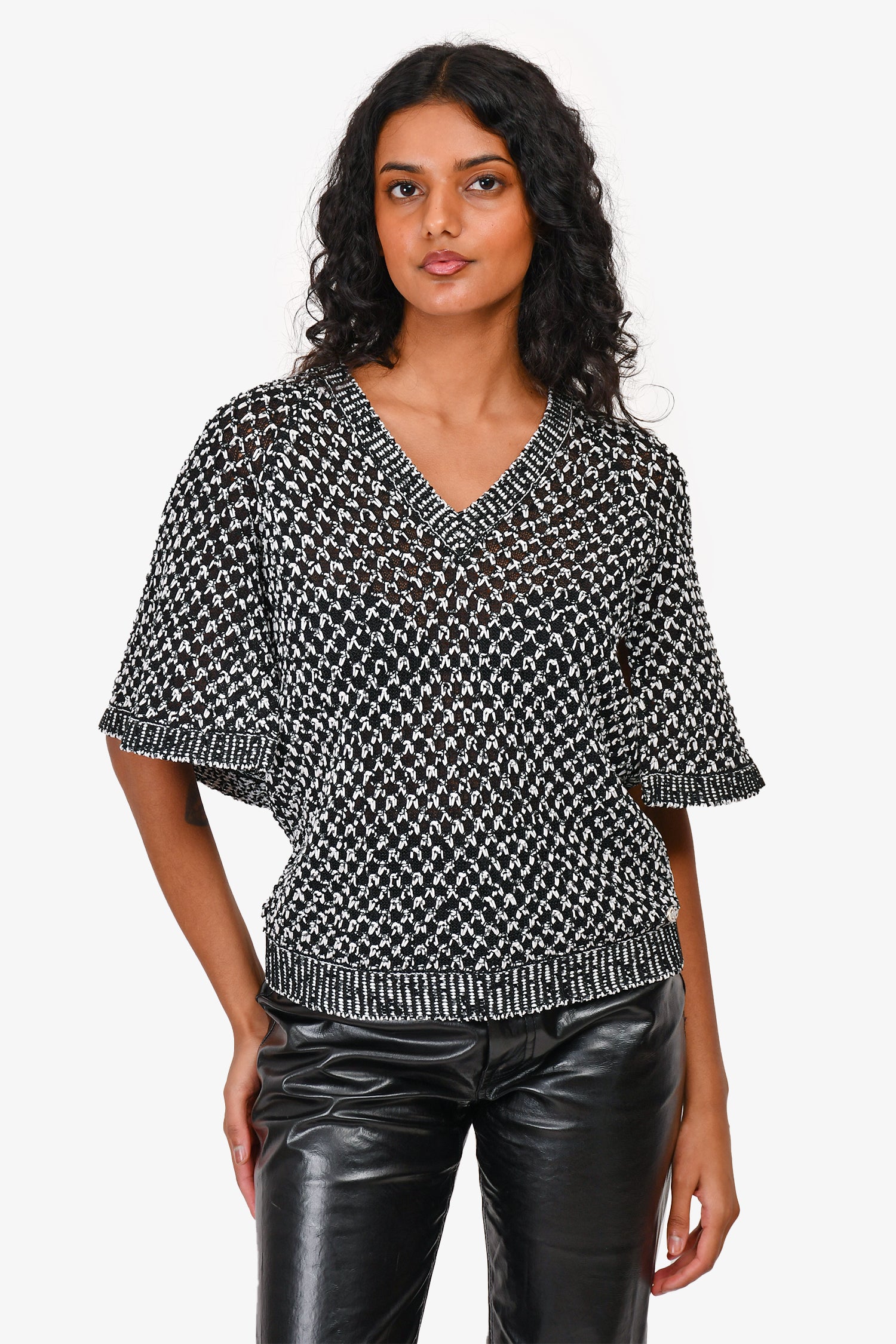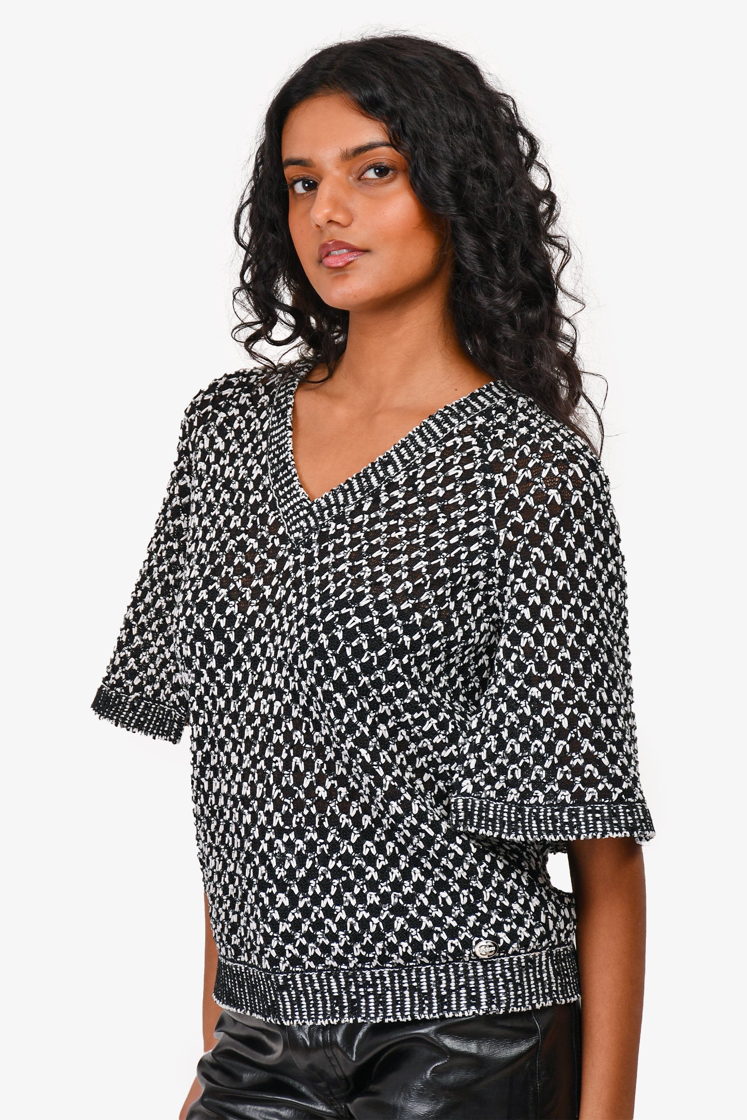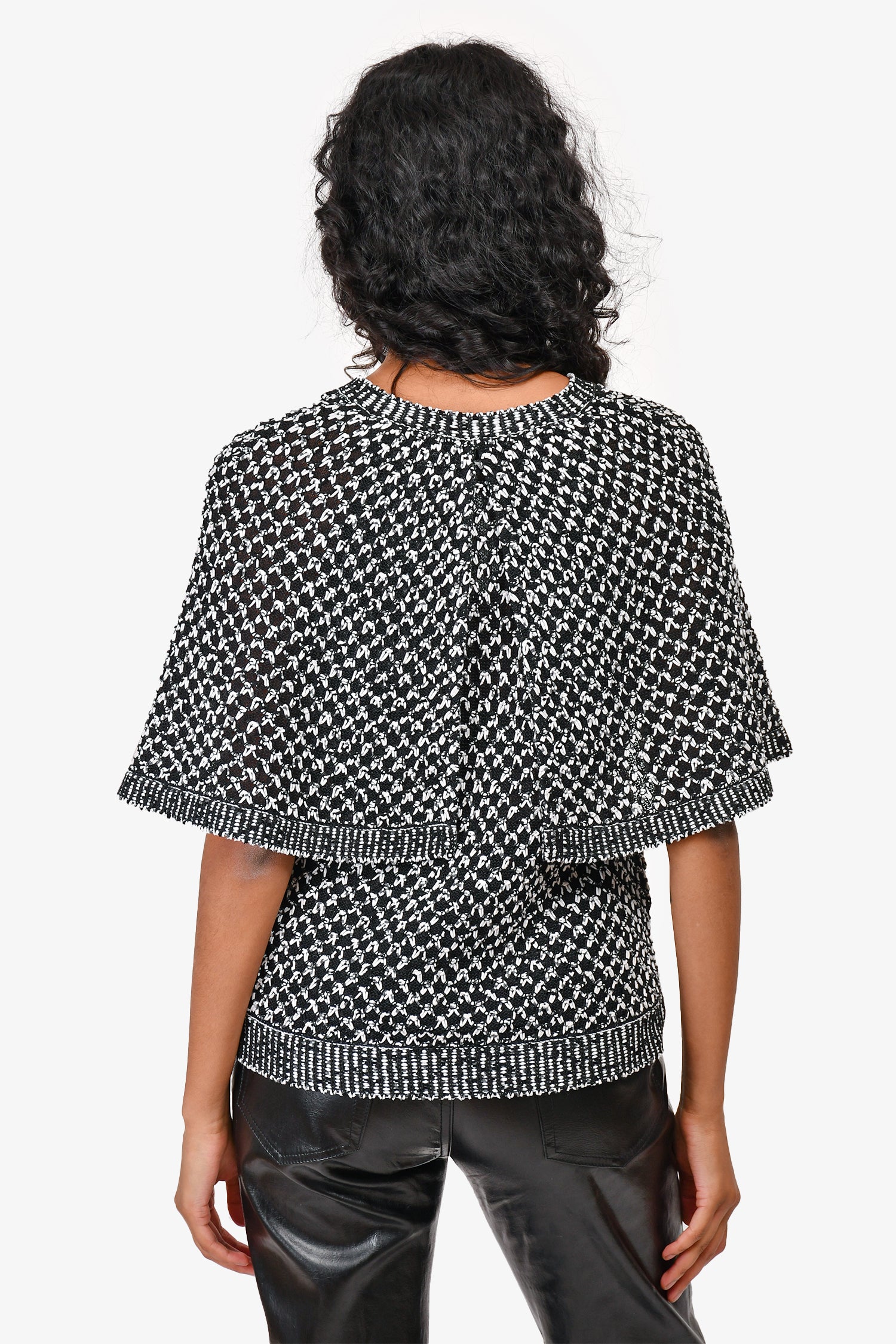 Pre-Loved Chanel™ 2017 Black/White Knit Cape Sleeve Sweater Size 38