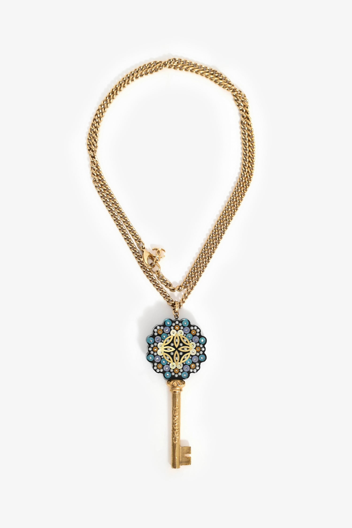 Pre-Loved Chanel™ 2017 Gold Tone 'Collectables Key' Resin Pendant Necklace