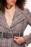 Pre-Loved Chanel™ 2018 Autumn Grey/Blue Tweed Belted Jacket Size 36