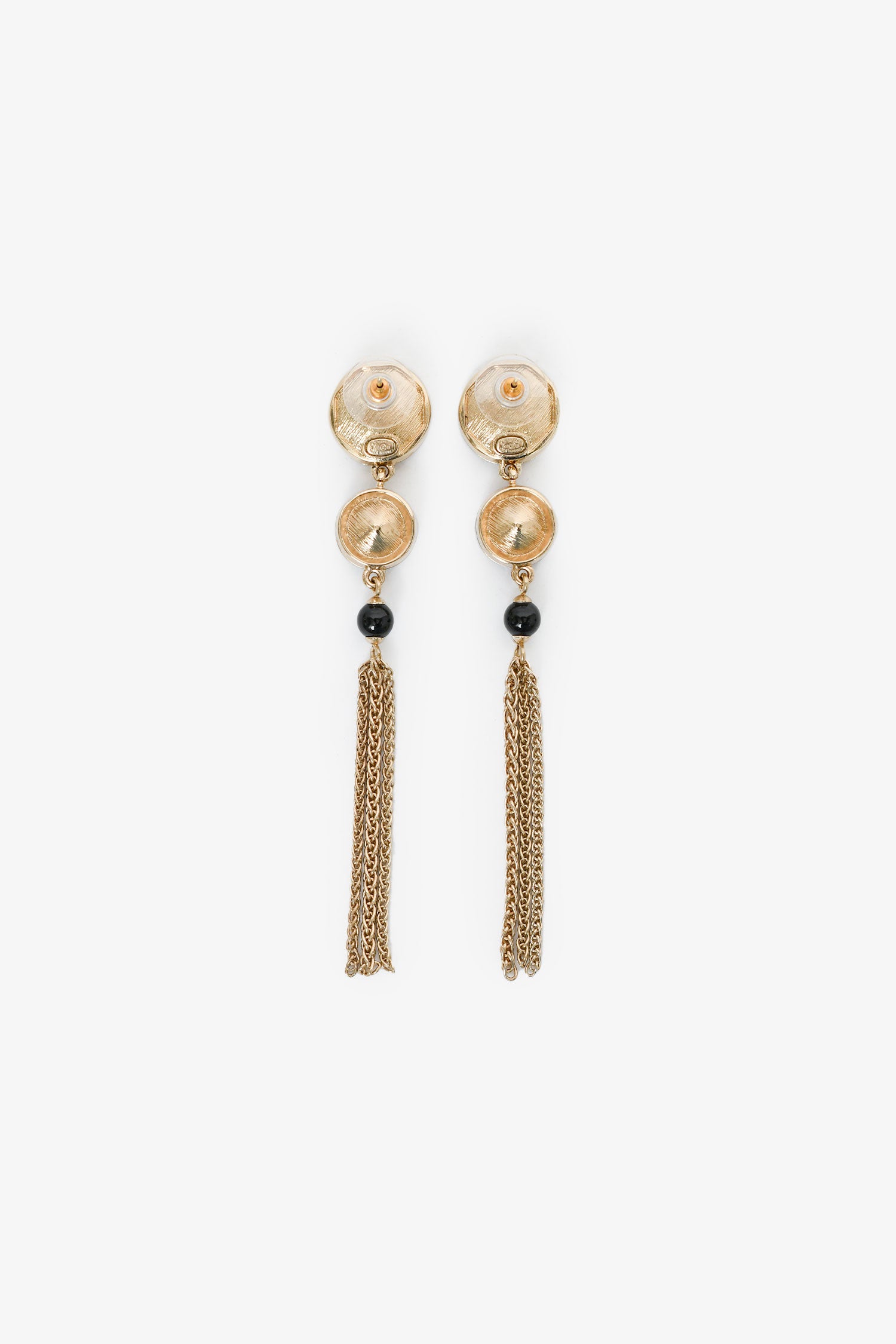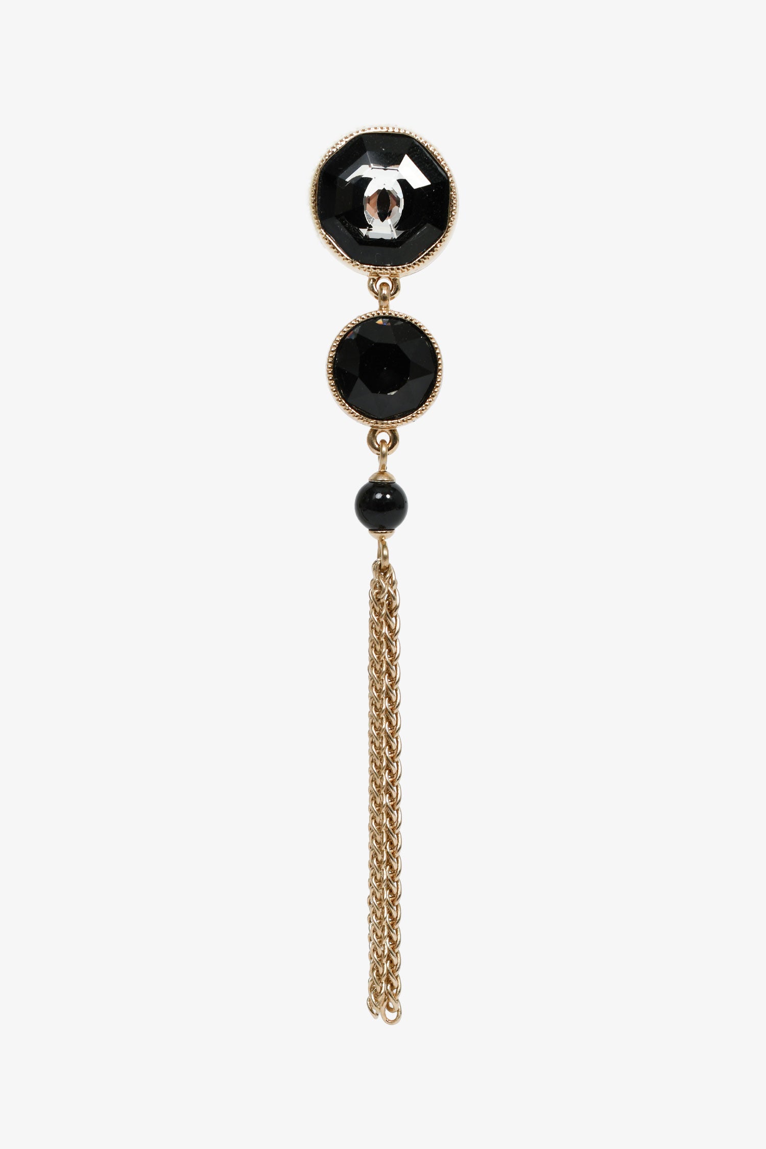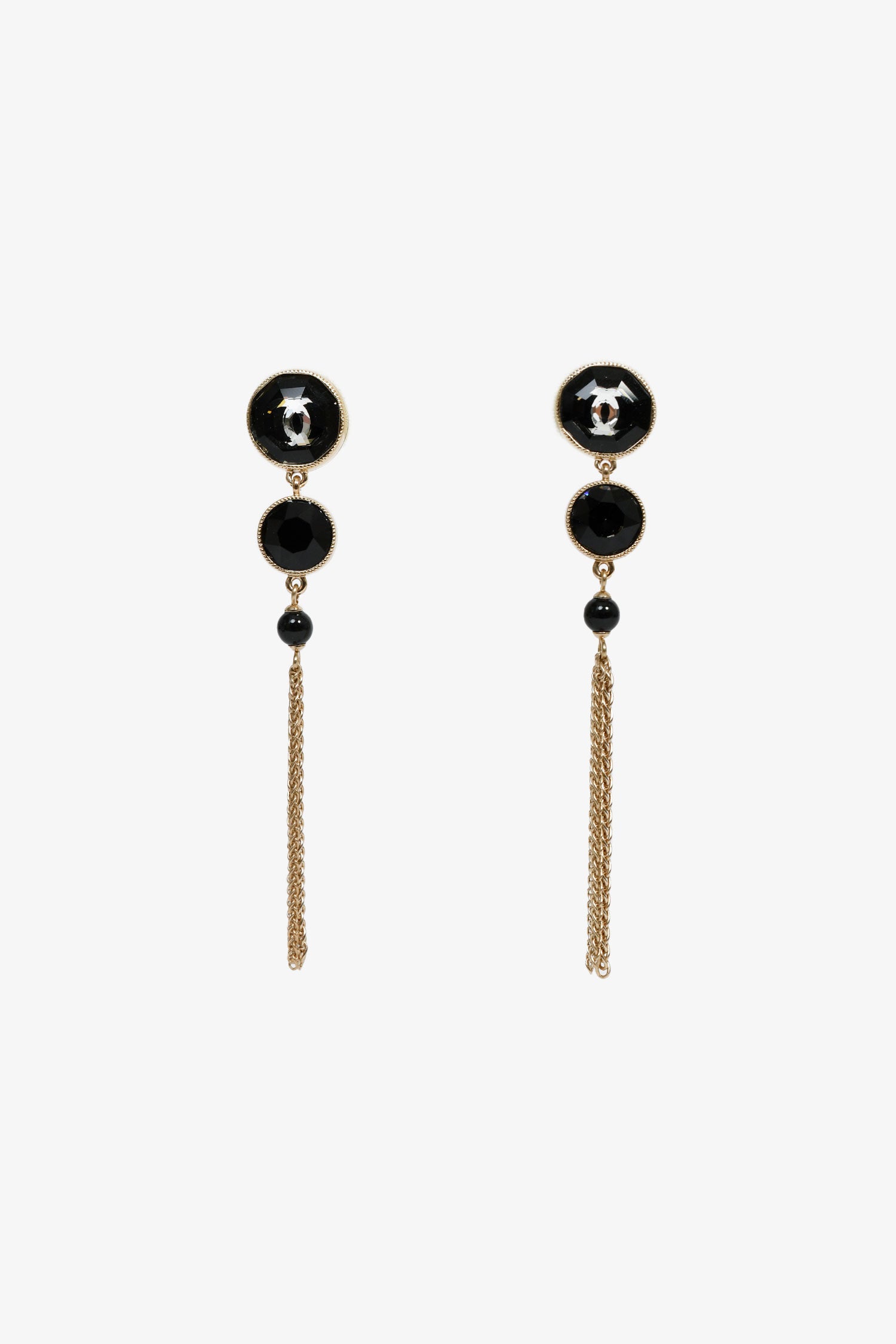 Refresh availabilityPre-Loved Chanel™ 2018 Gold Toned Black Double Crystal CC Dangle Earrings. Post-stud closures.