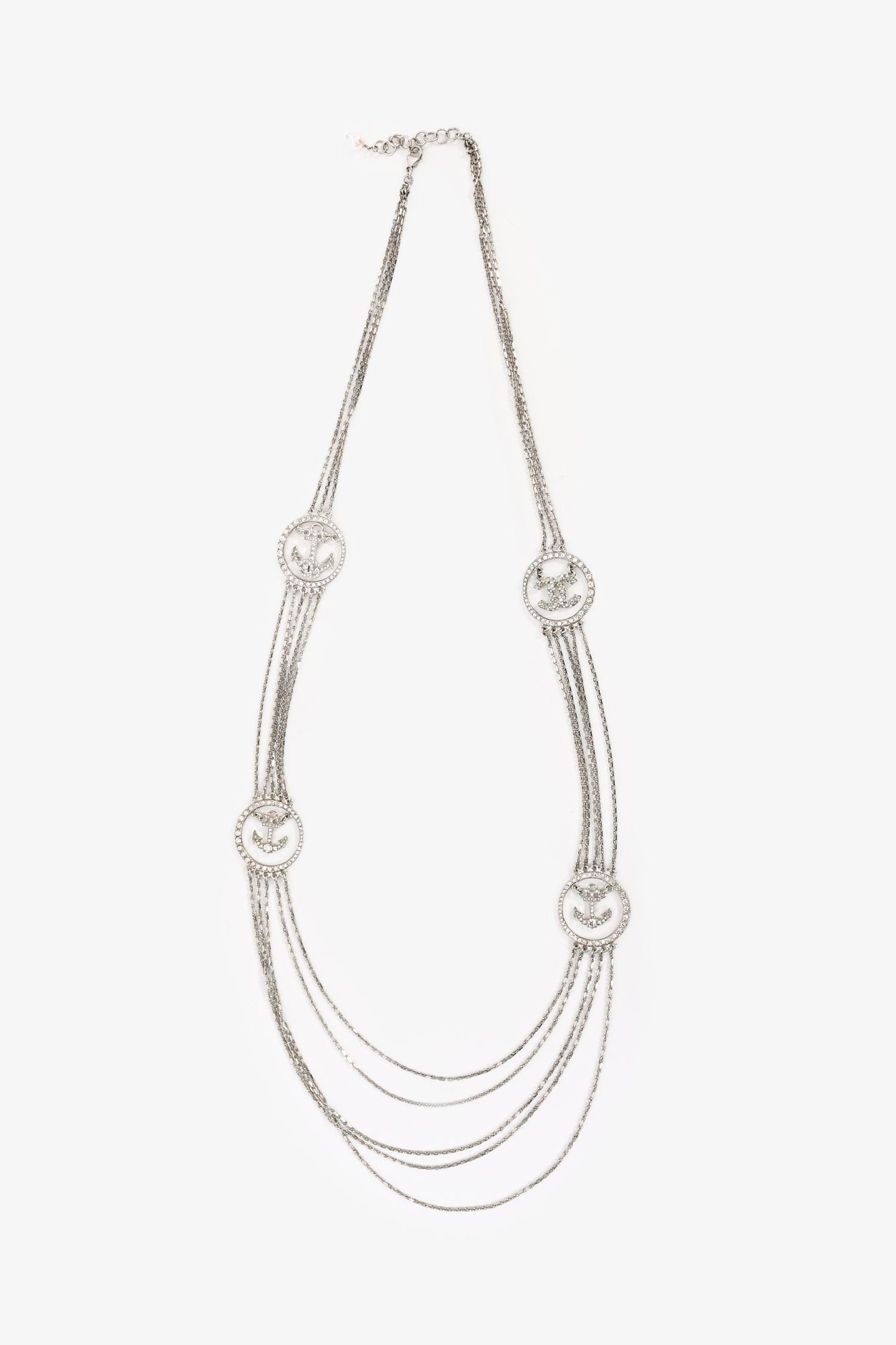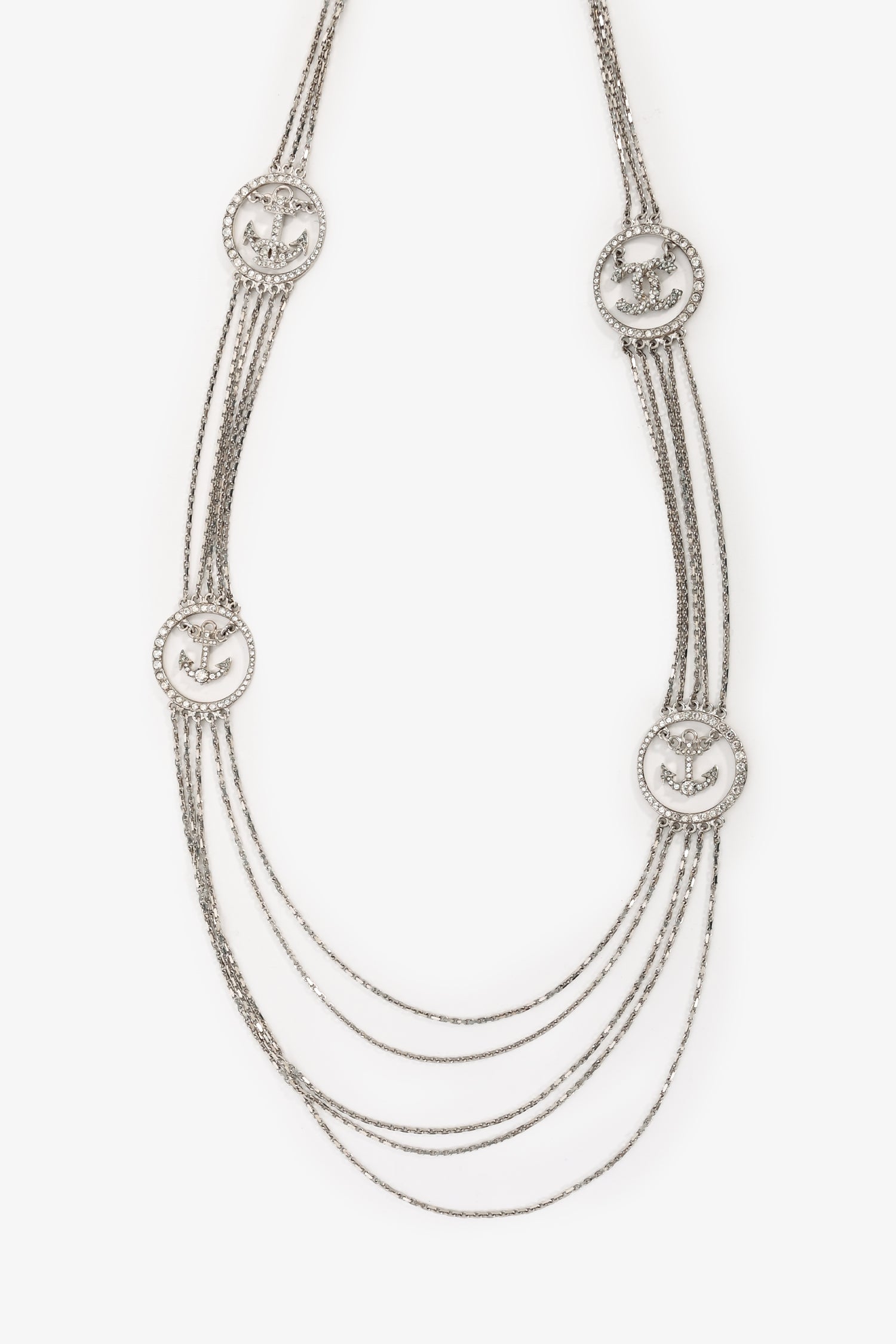 Refresh availabilityPre-loved Chanel™ 'Metiers D'art' Crystal Embellished CC Anchor Multi-strand Necklace. Silver-toned hardware.